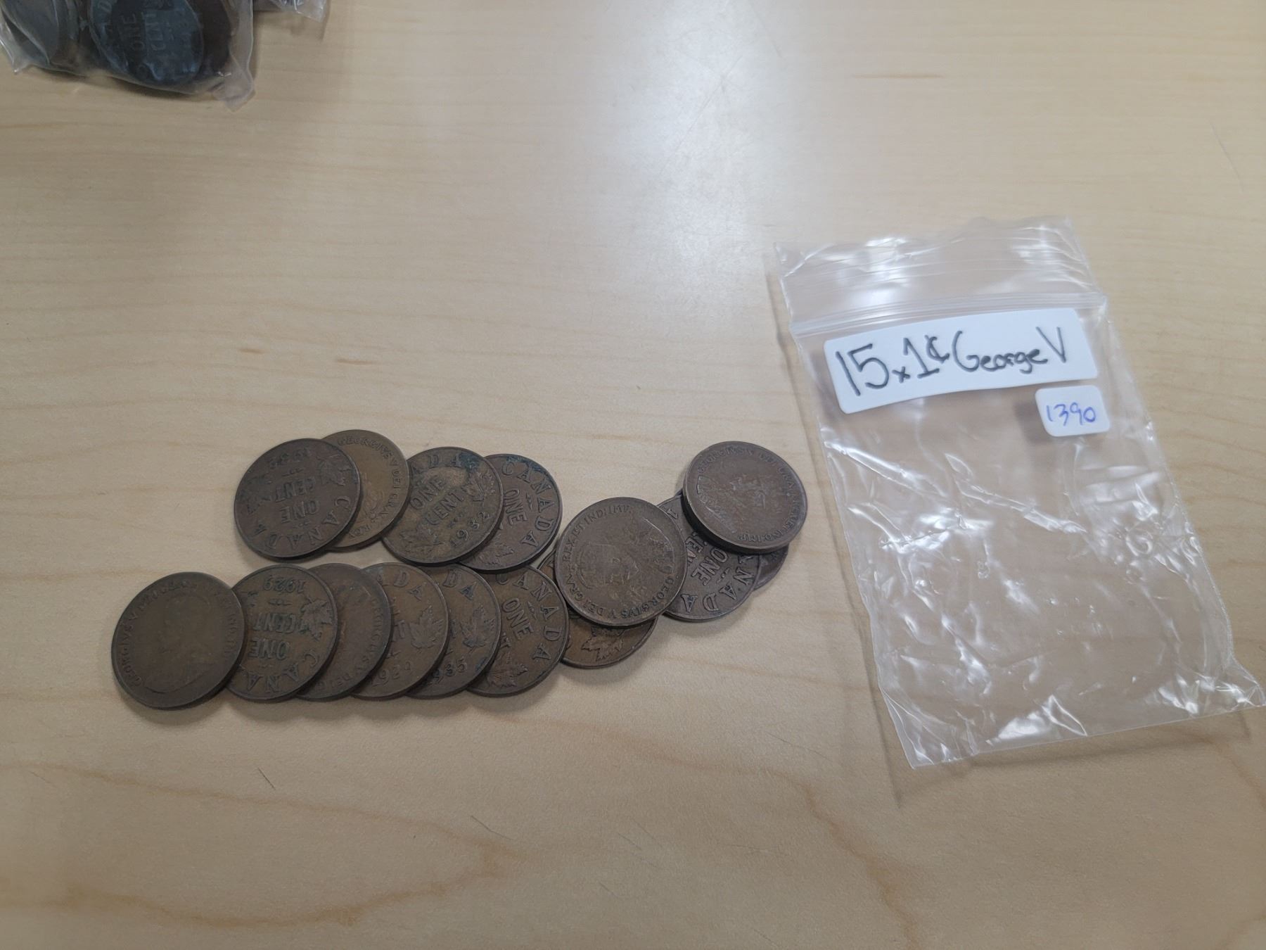 bag of 15 King George V Canadian one cent pieces