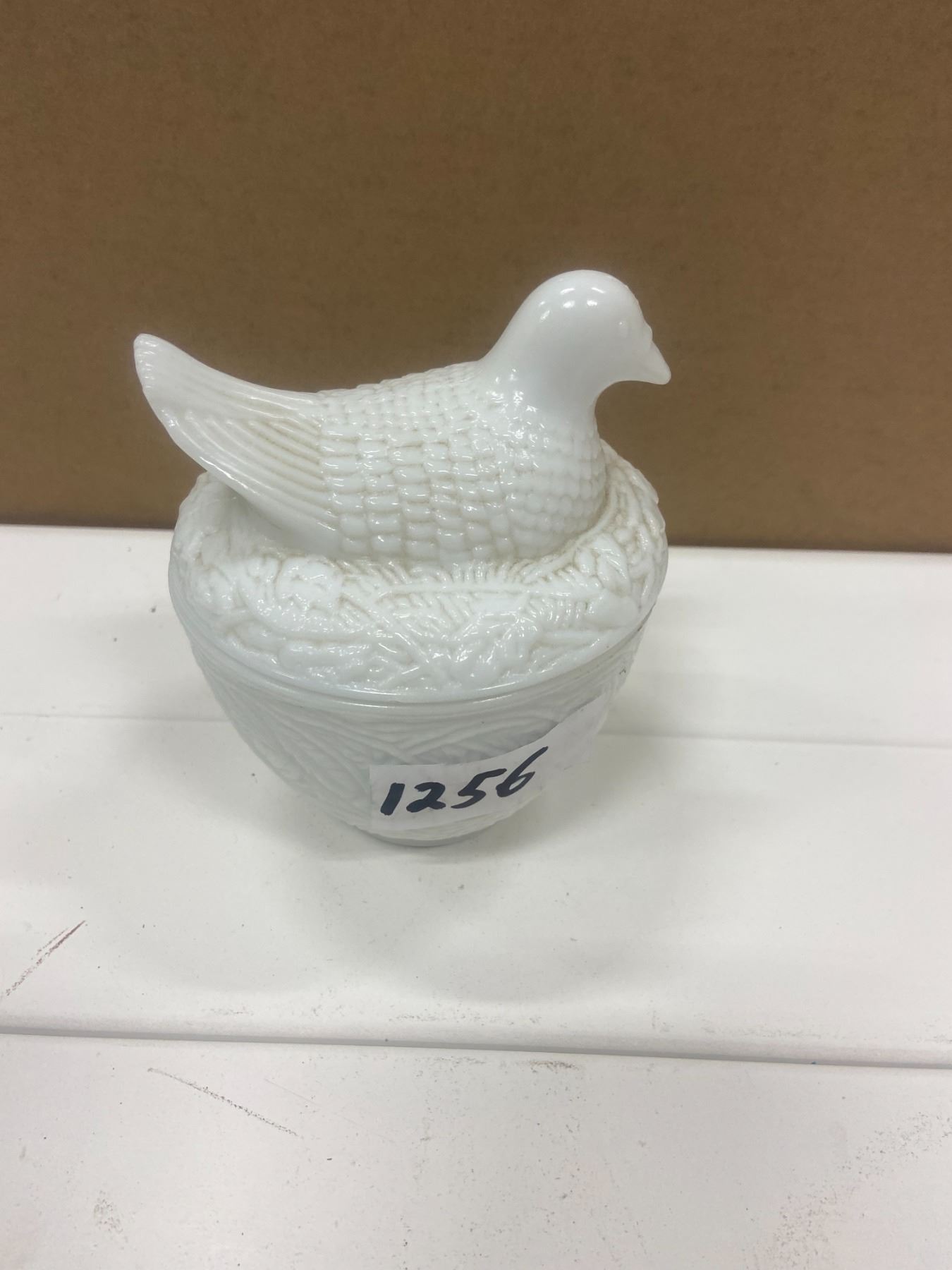 bird on a nest - milk glass 4" across
