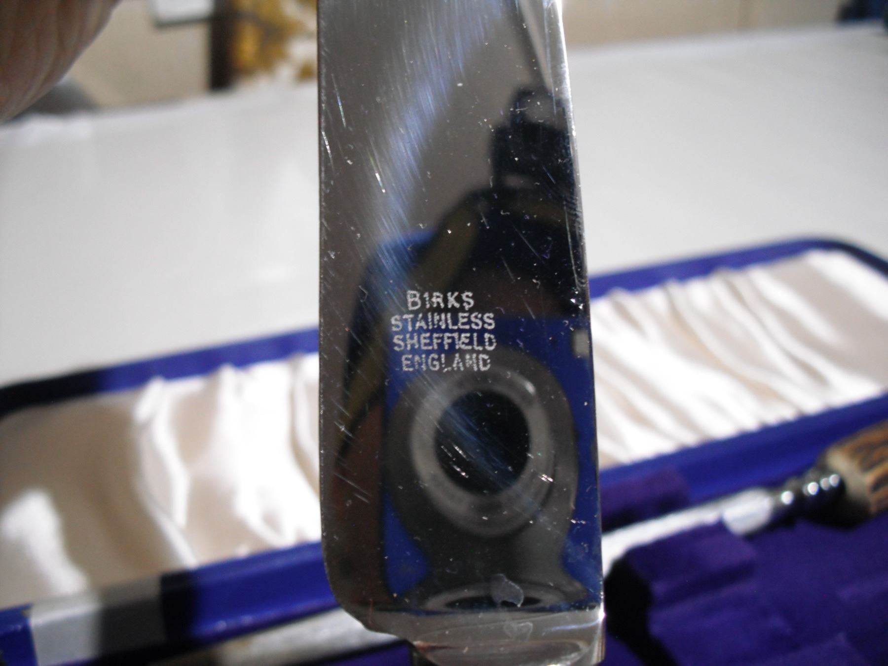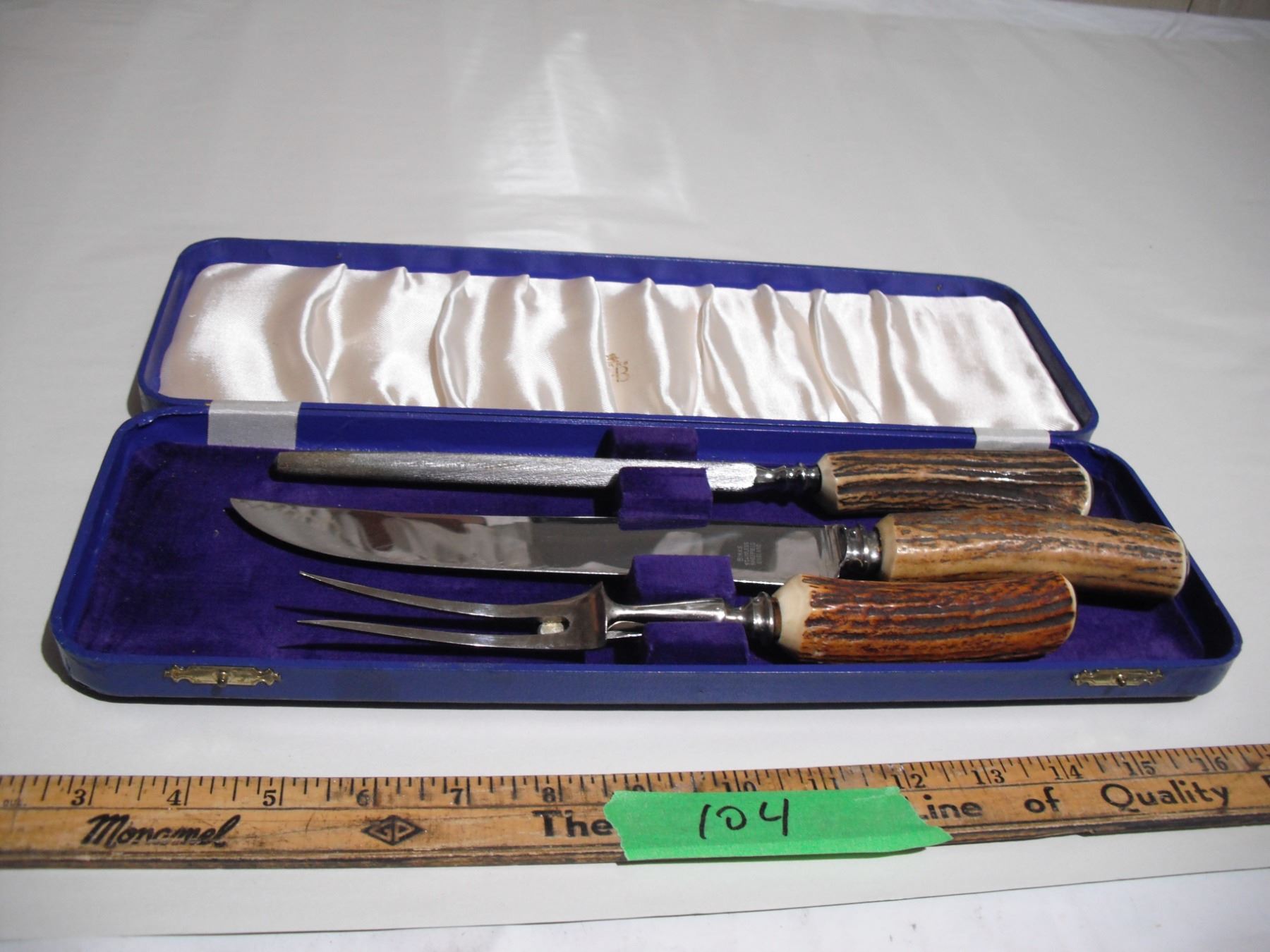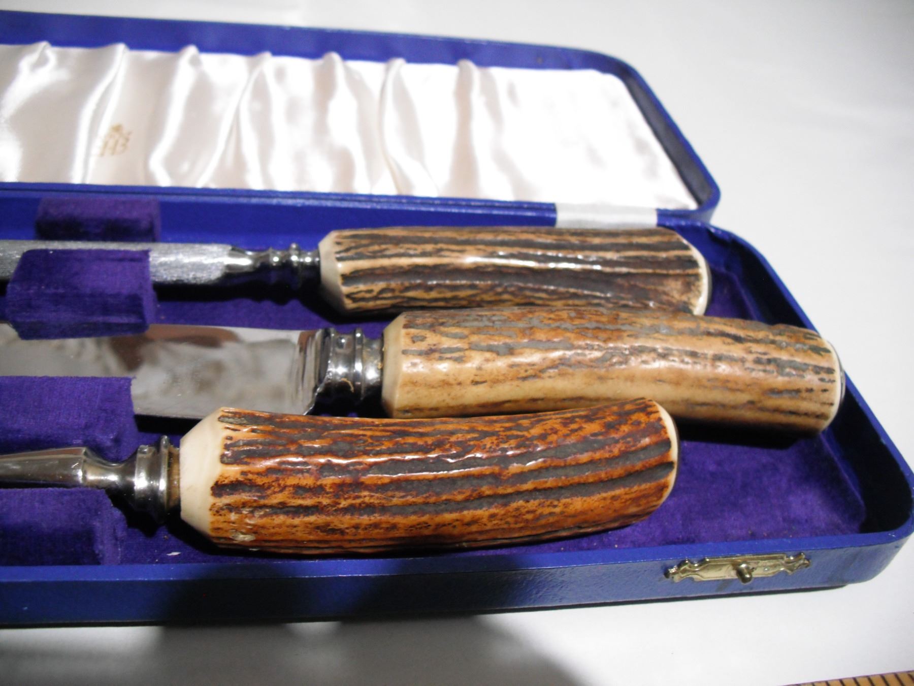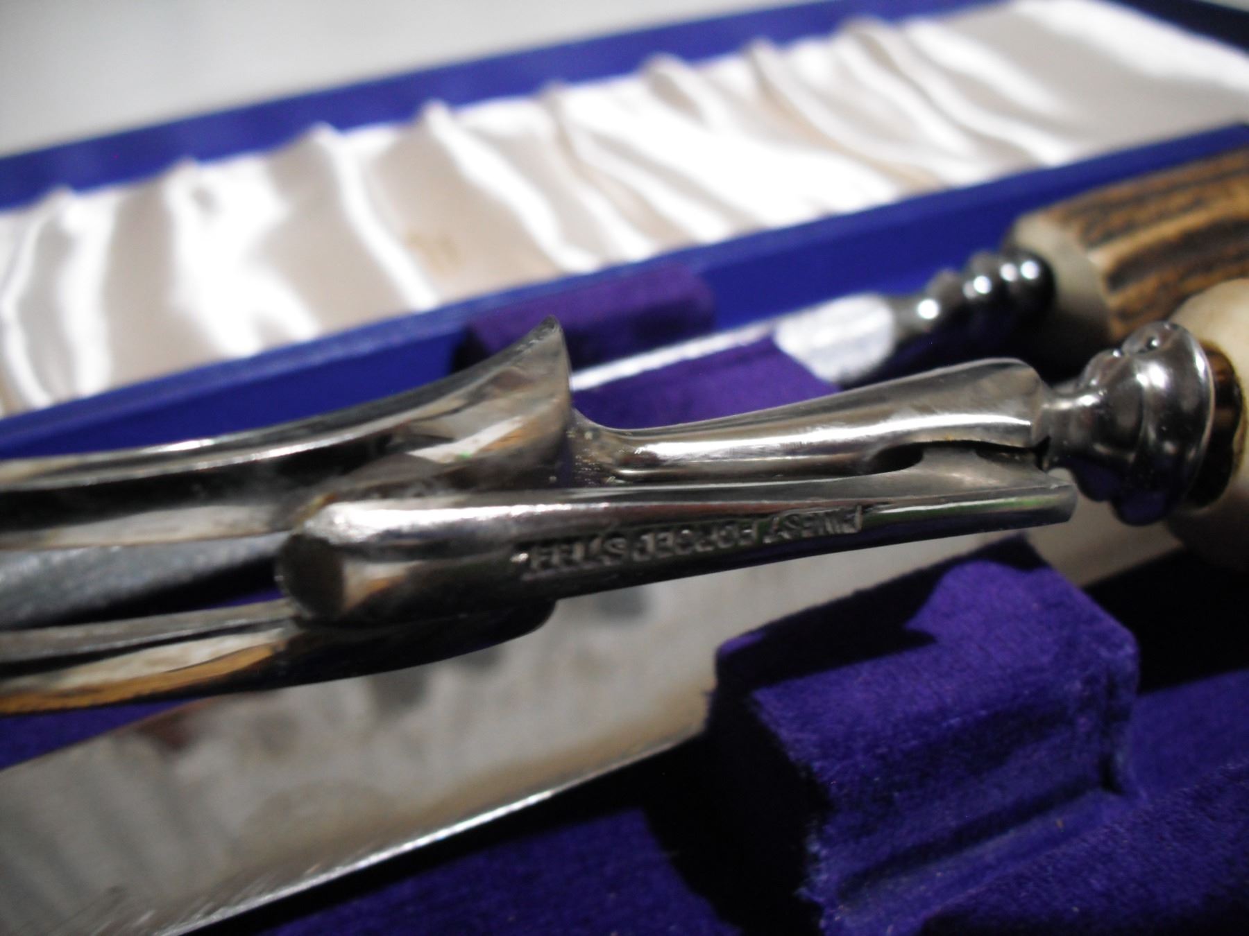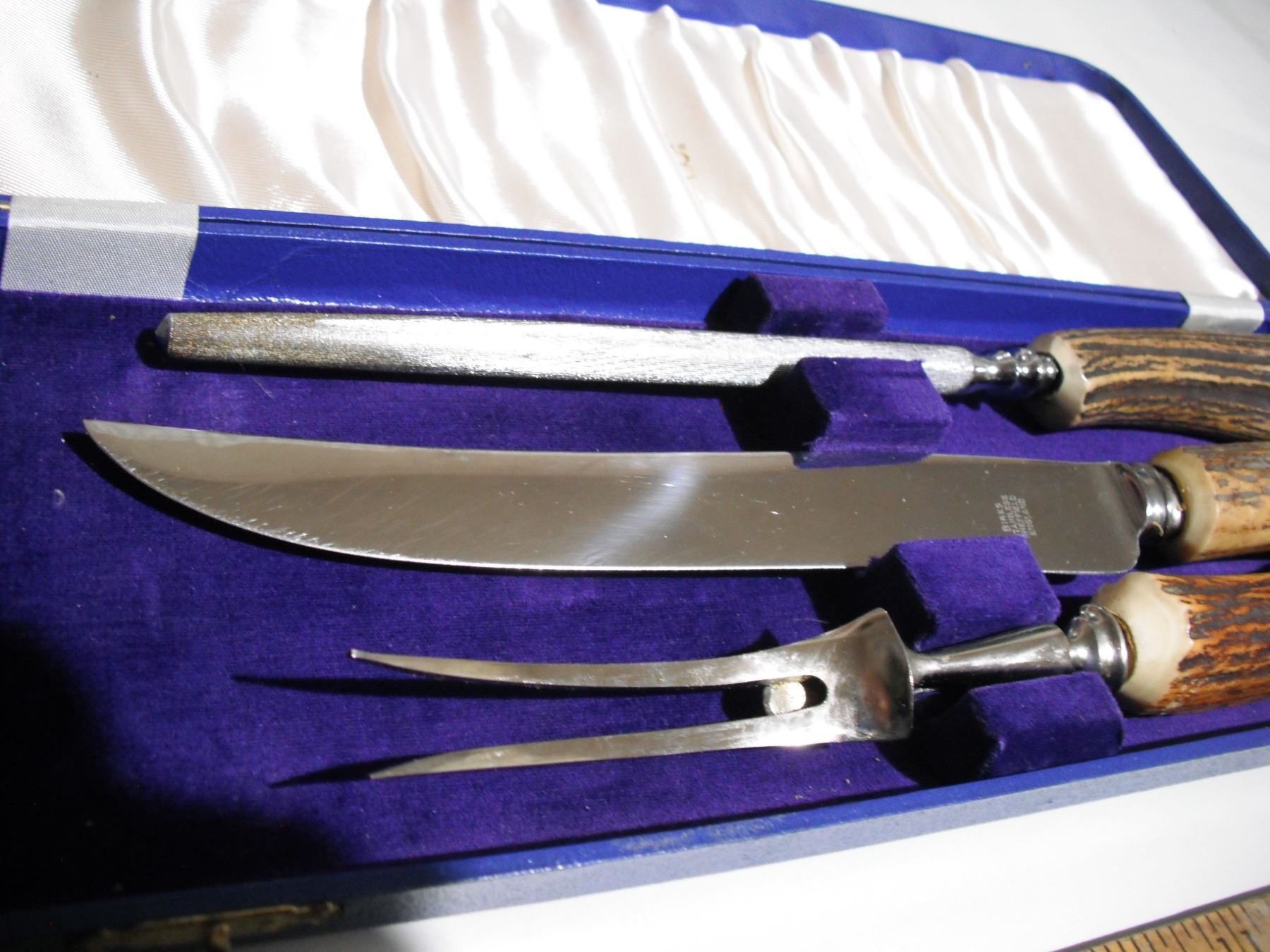 birks 3 pc bone handle carving set on original case