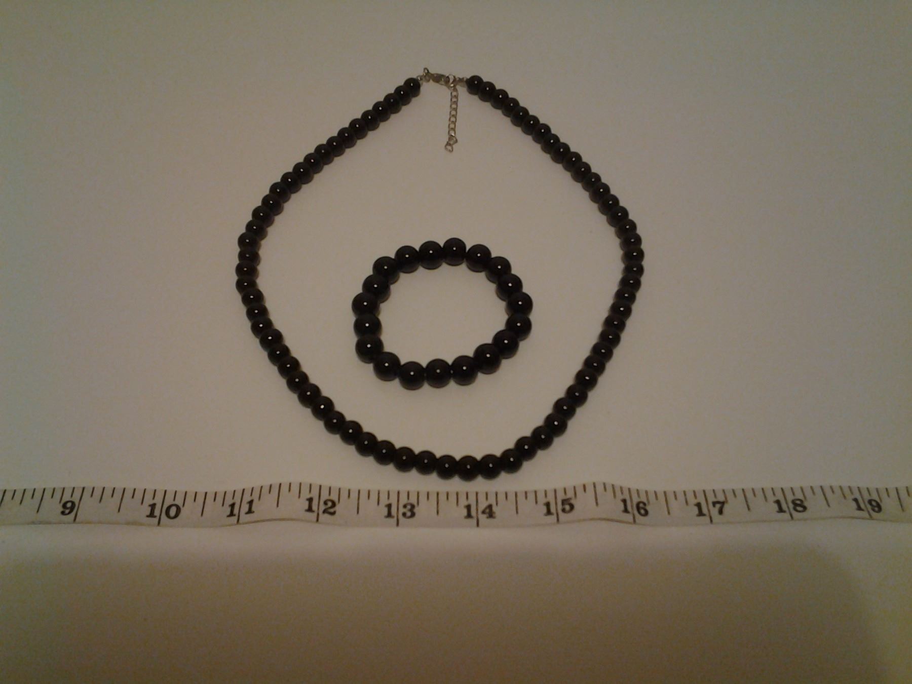 black beaded necklace 20" & stretch bracelet