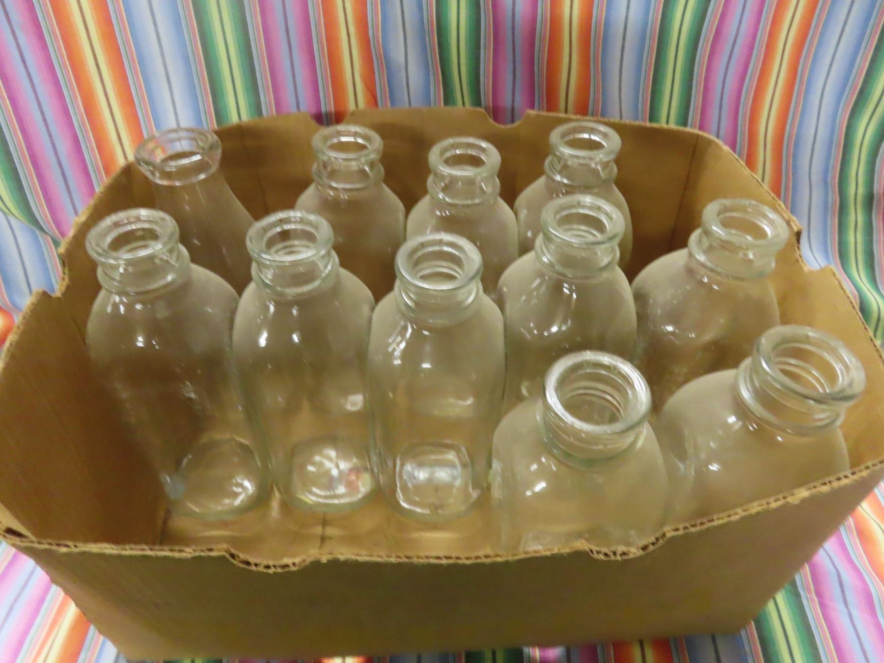 box of antique milk bottles