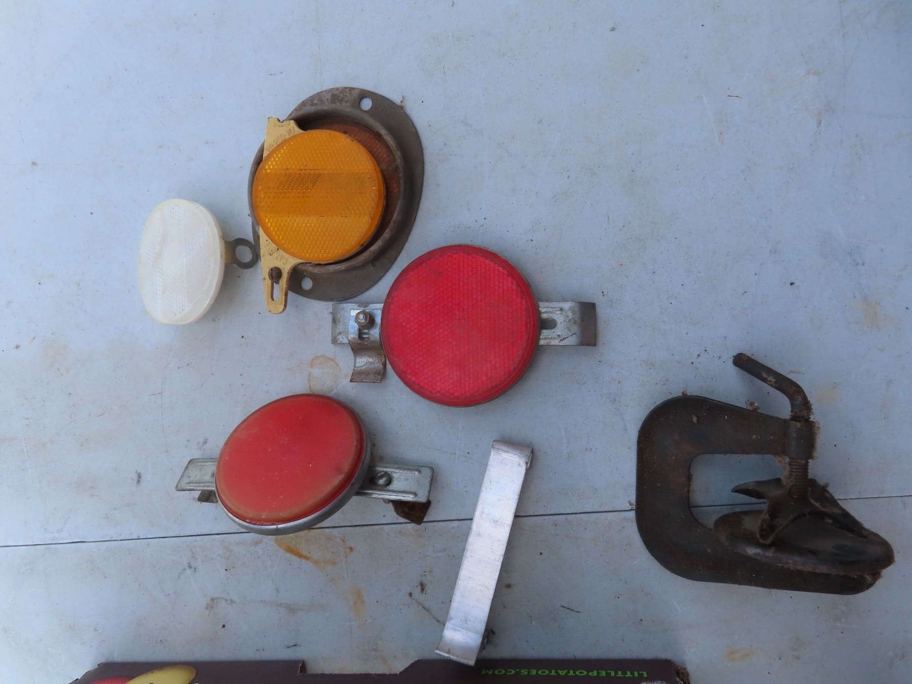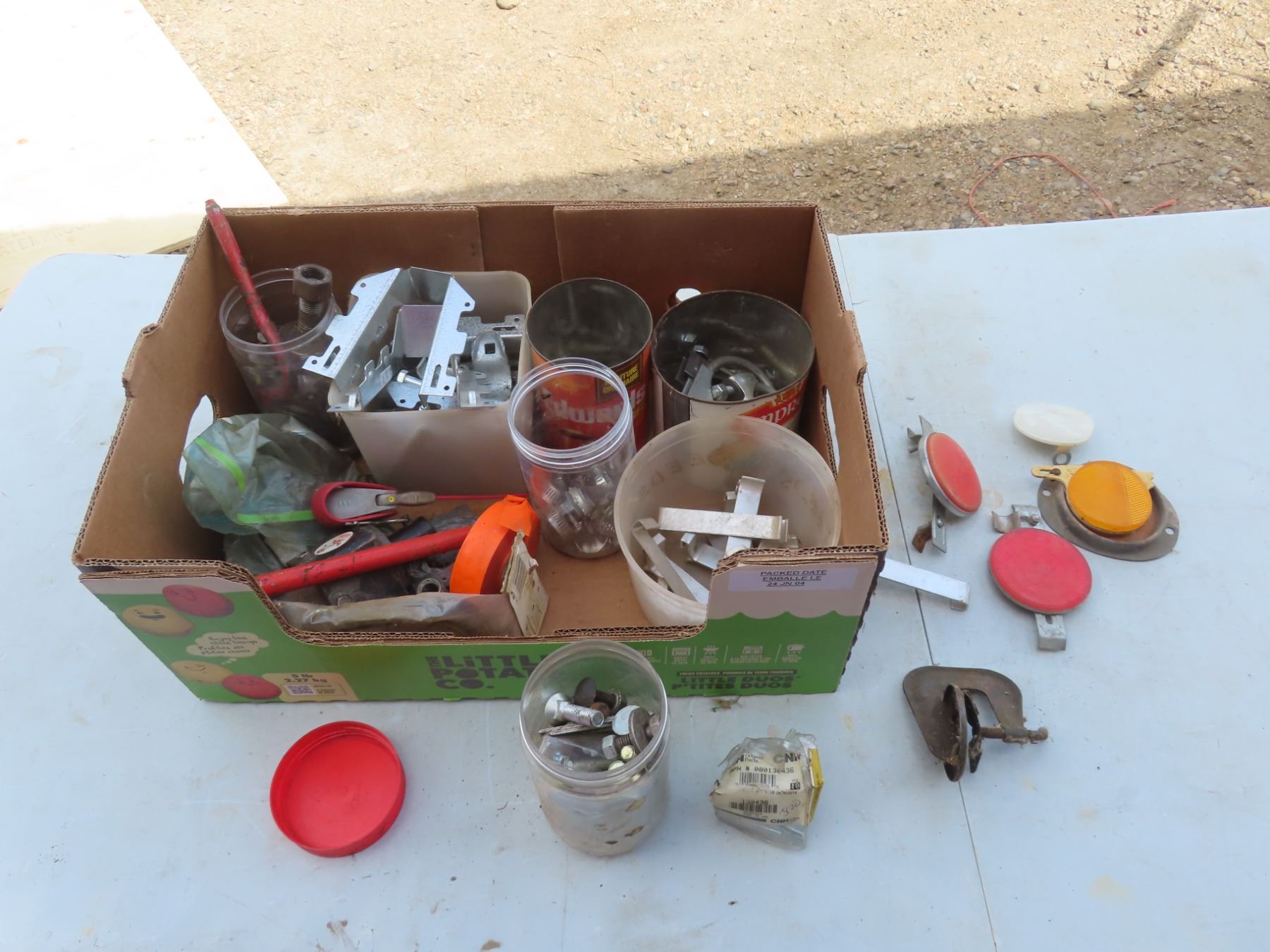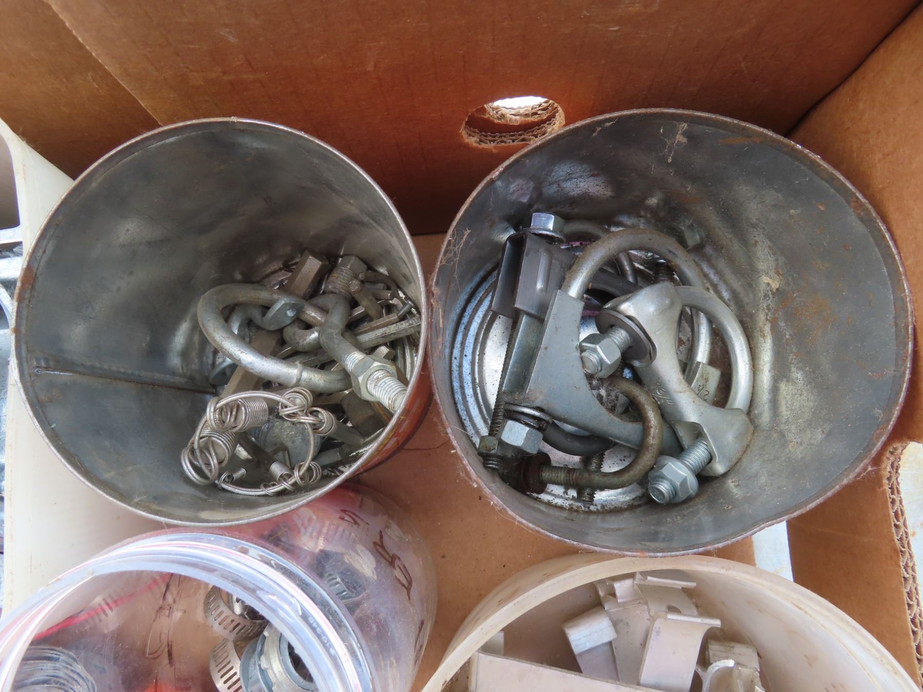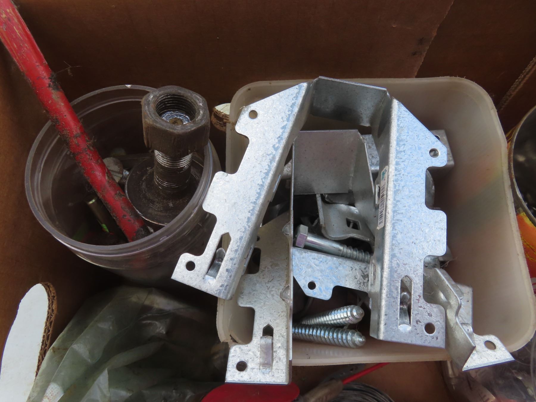 box of hardware, lights, exhaust clamps, joist hangers