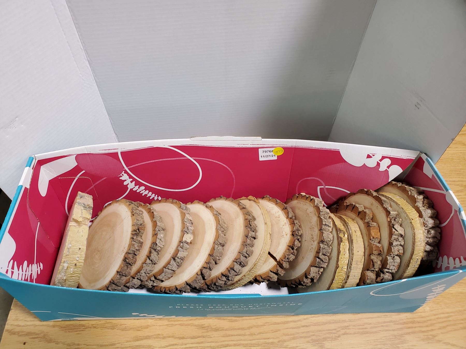 box of live edge wood discs x 15 (aprrox. 8" dia)