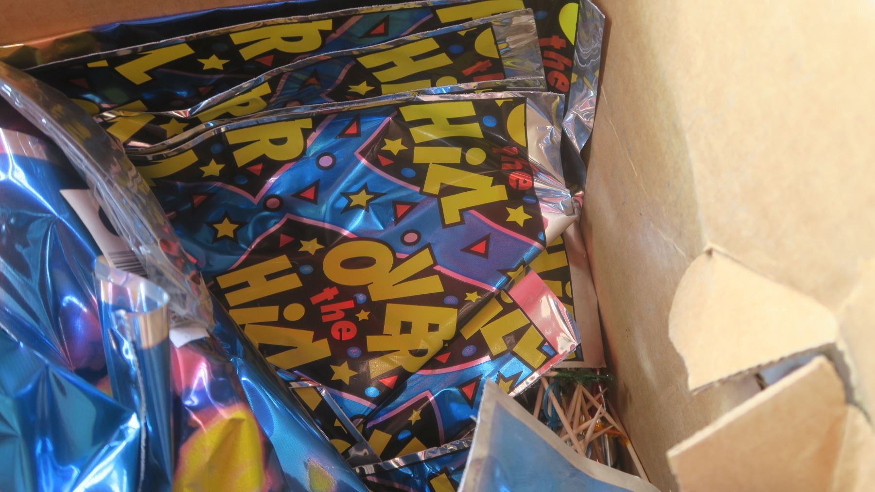 box of misc full box of foil ballons and foil cutters