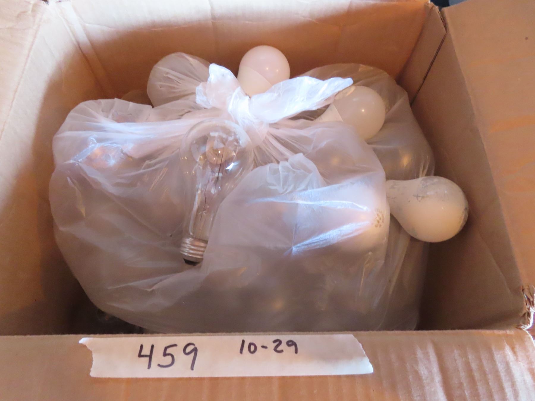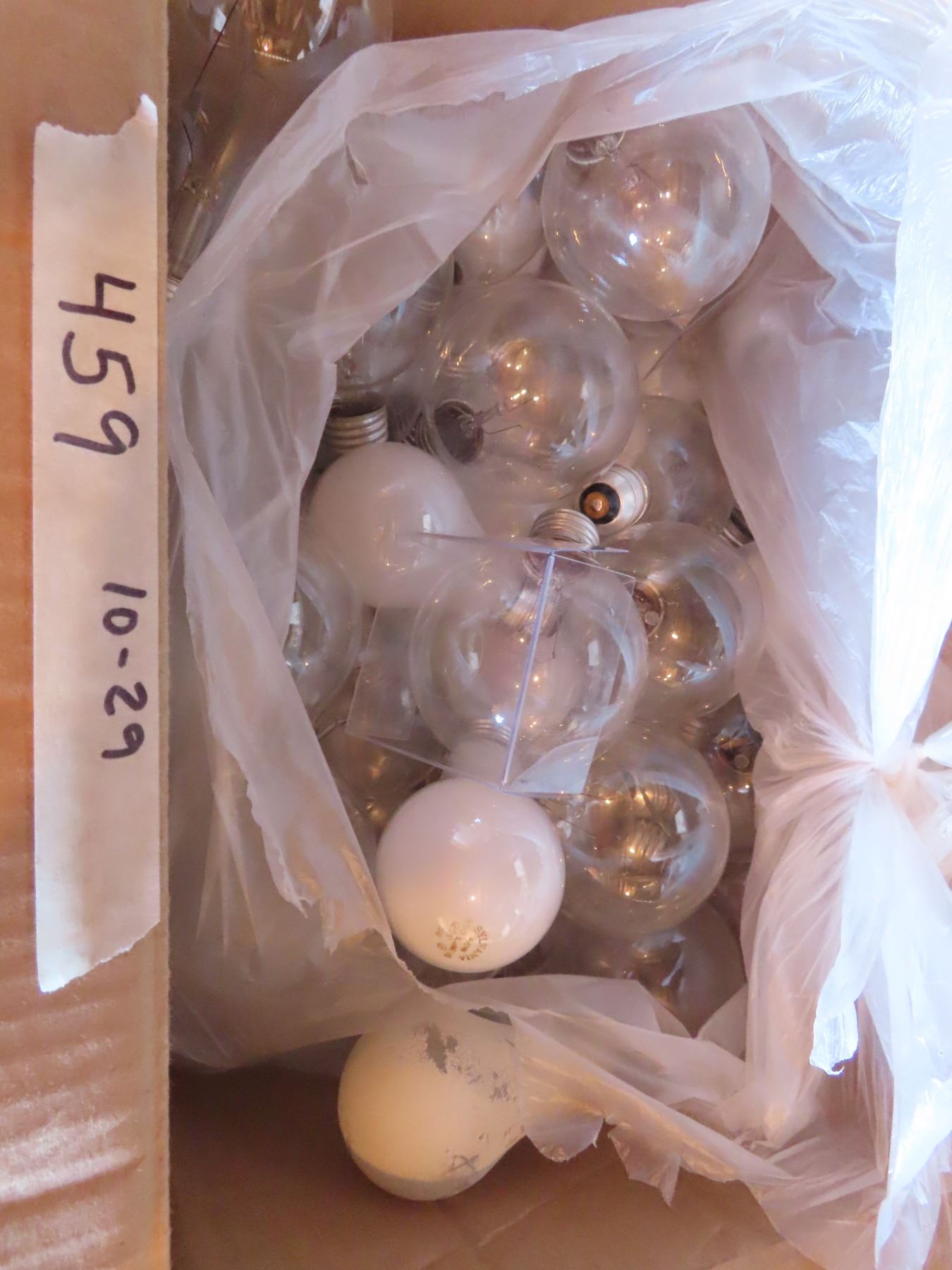 box of numerous style light bulbs