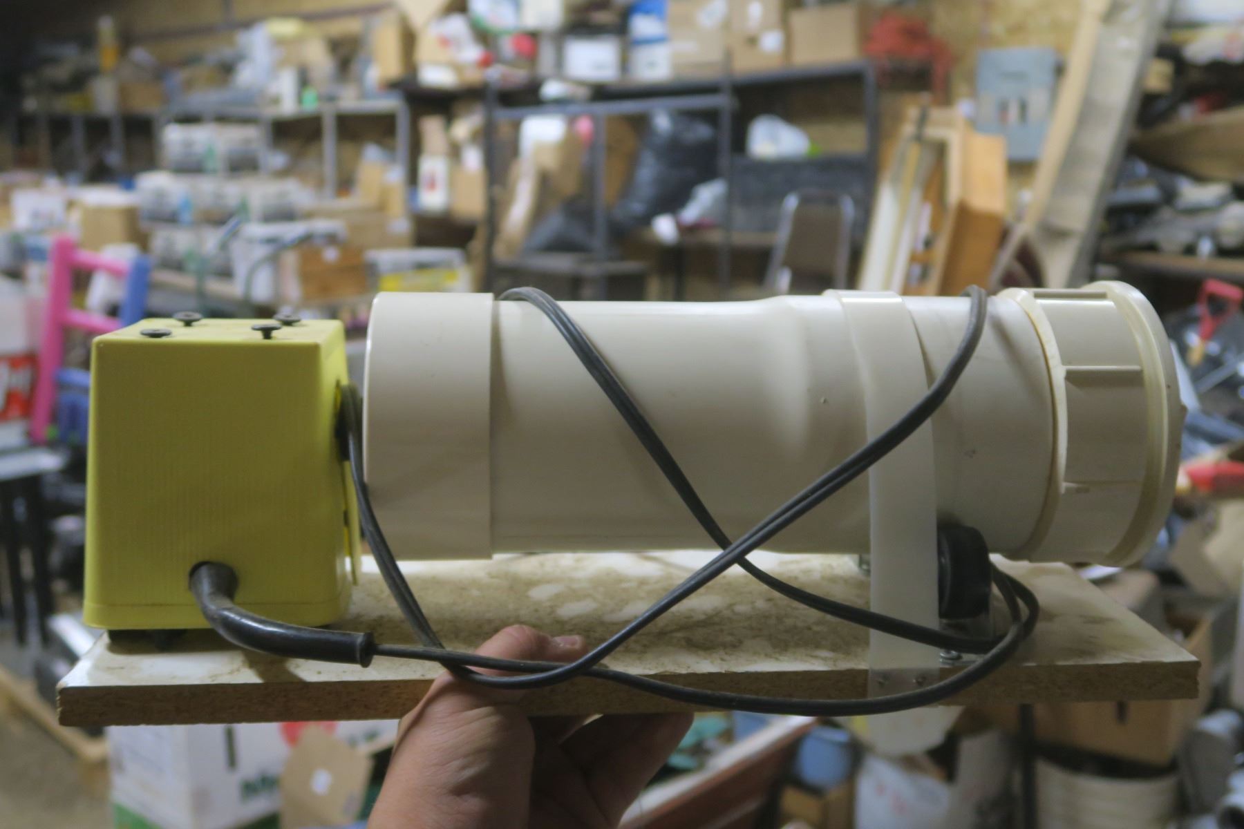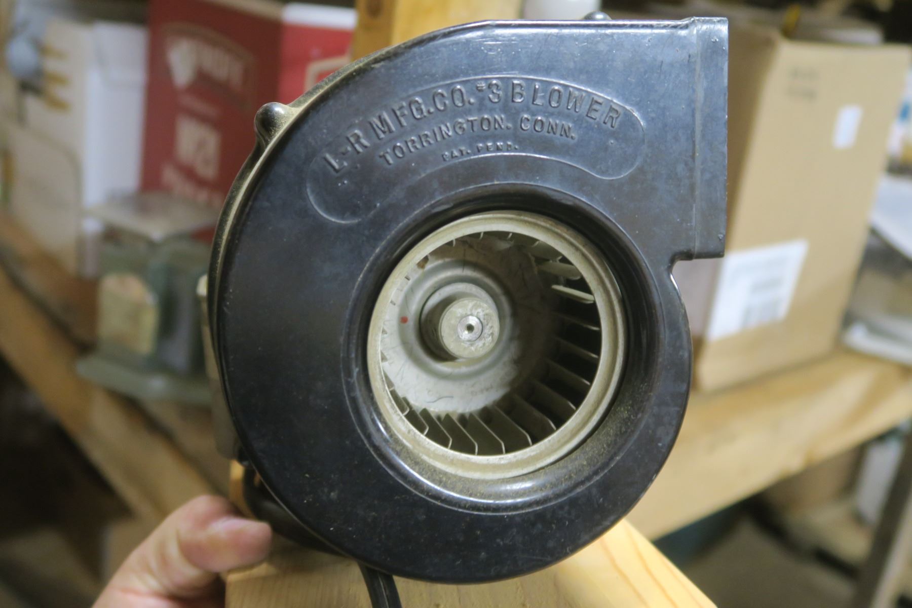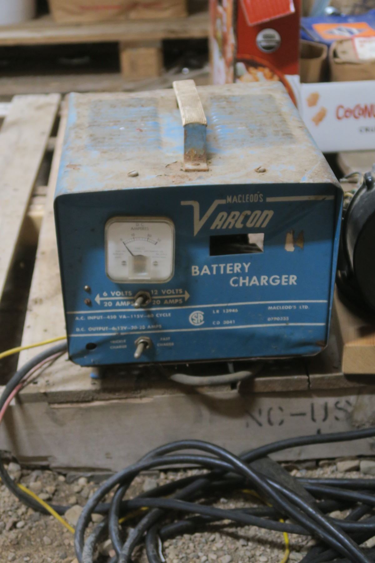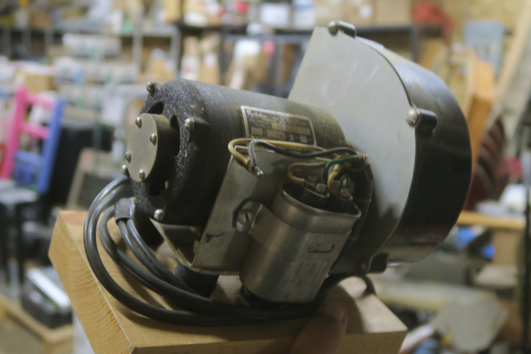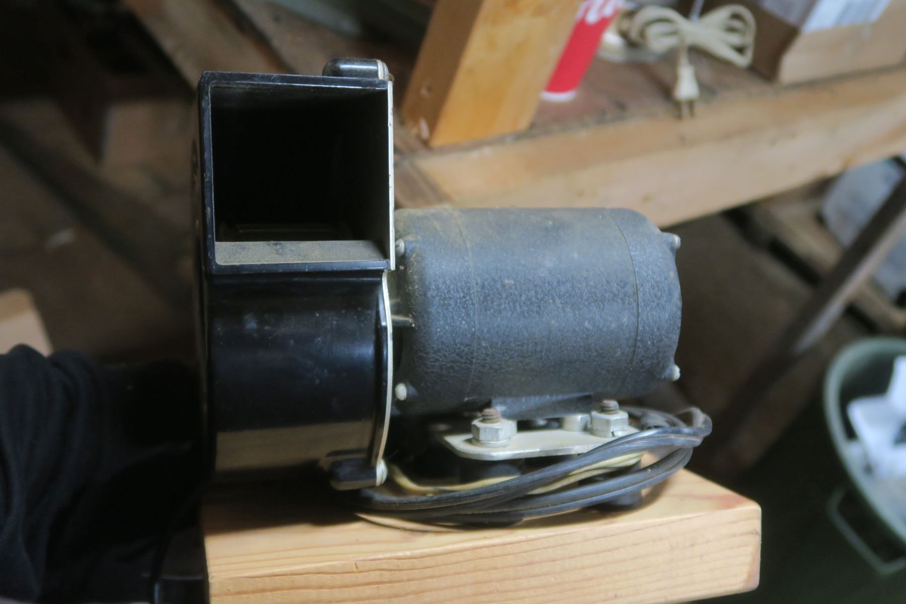 box of other items, motor, homemade trmbler, blower with motor, older battery charger ( untested)