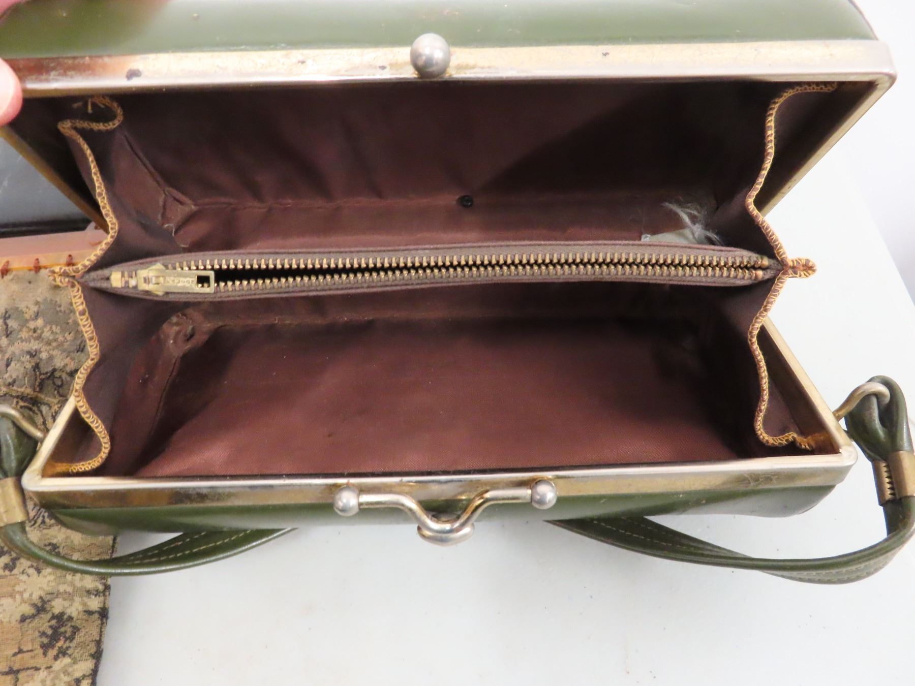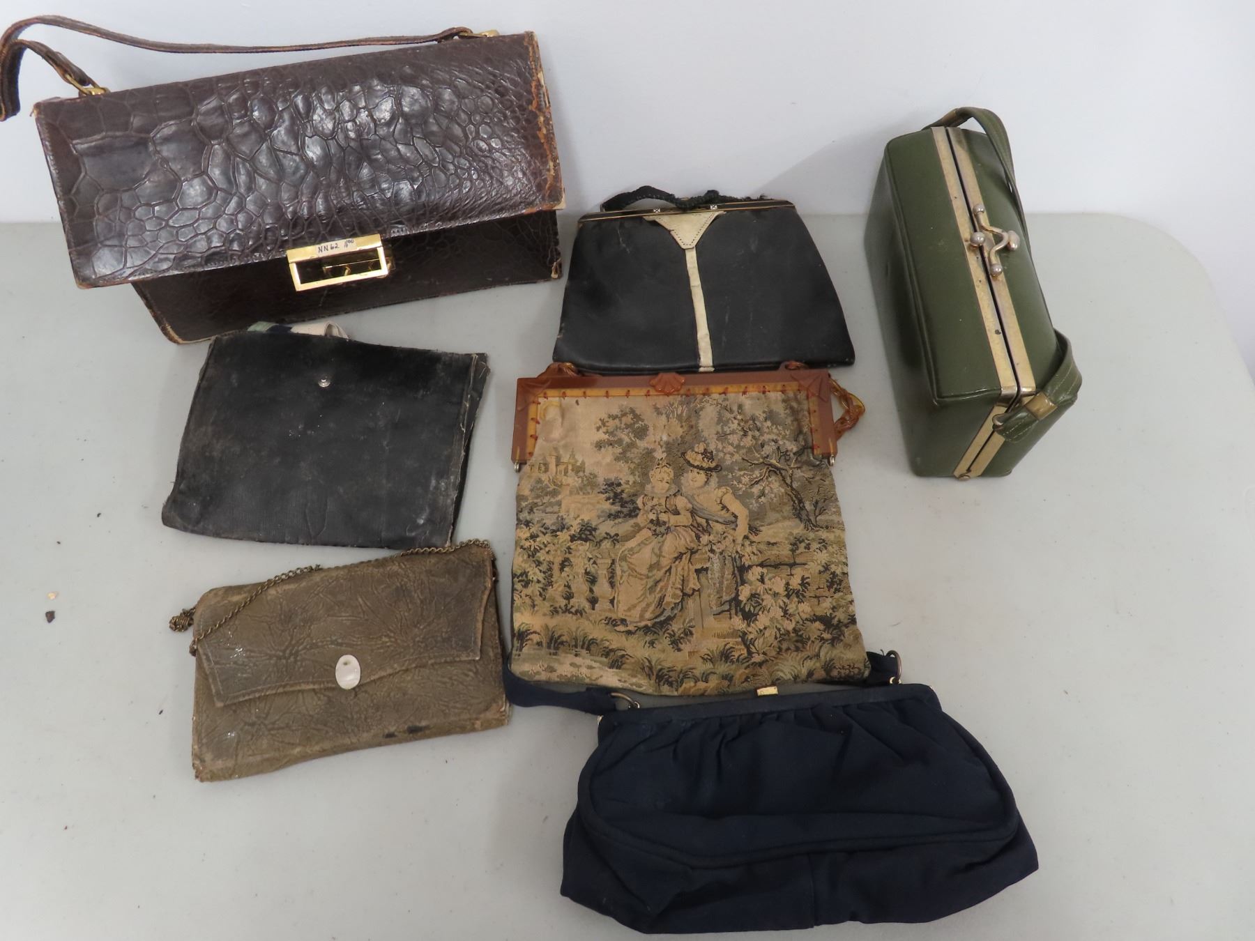 box of vintage purses and handbags
