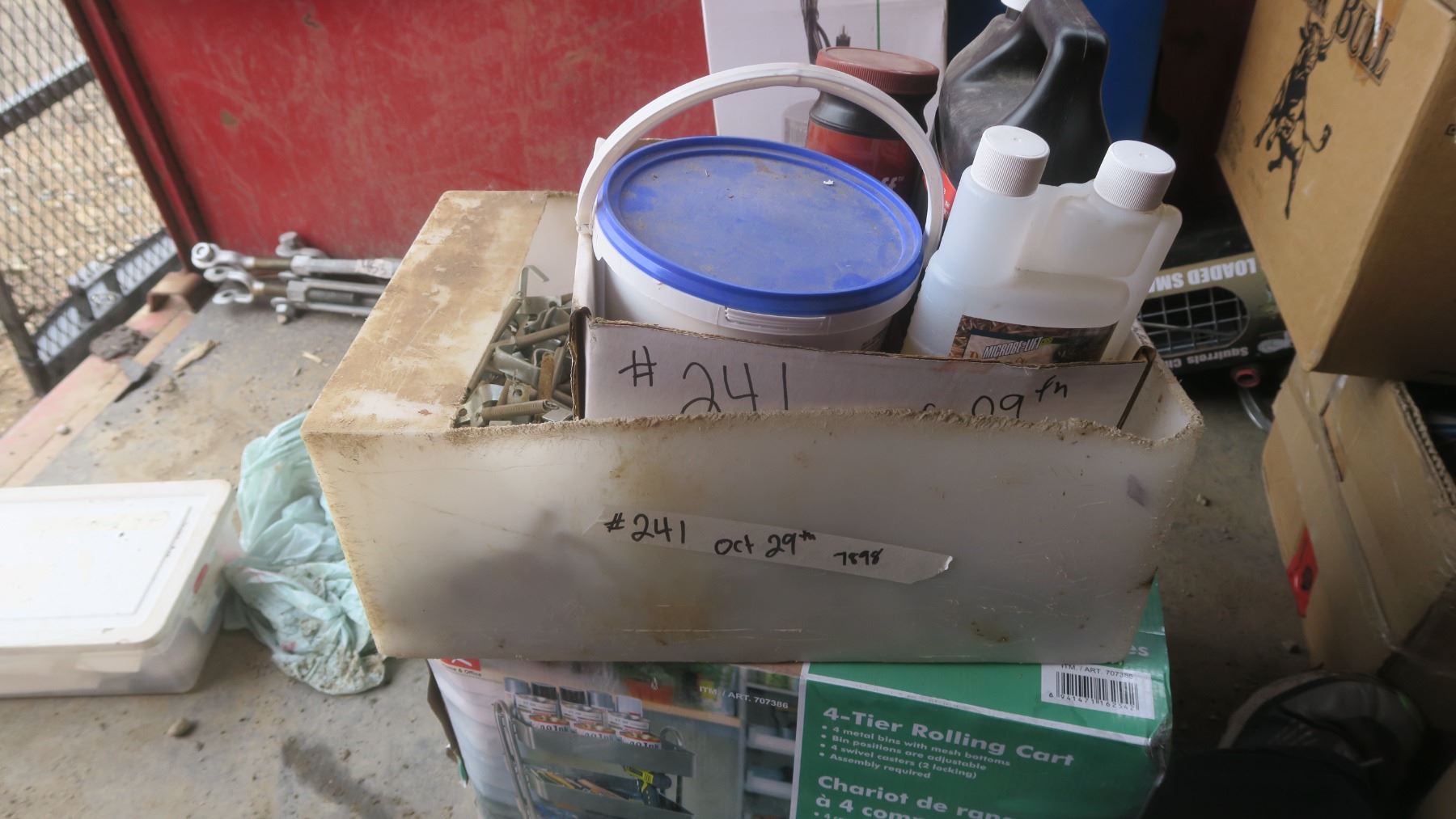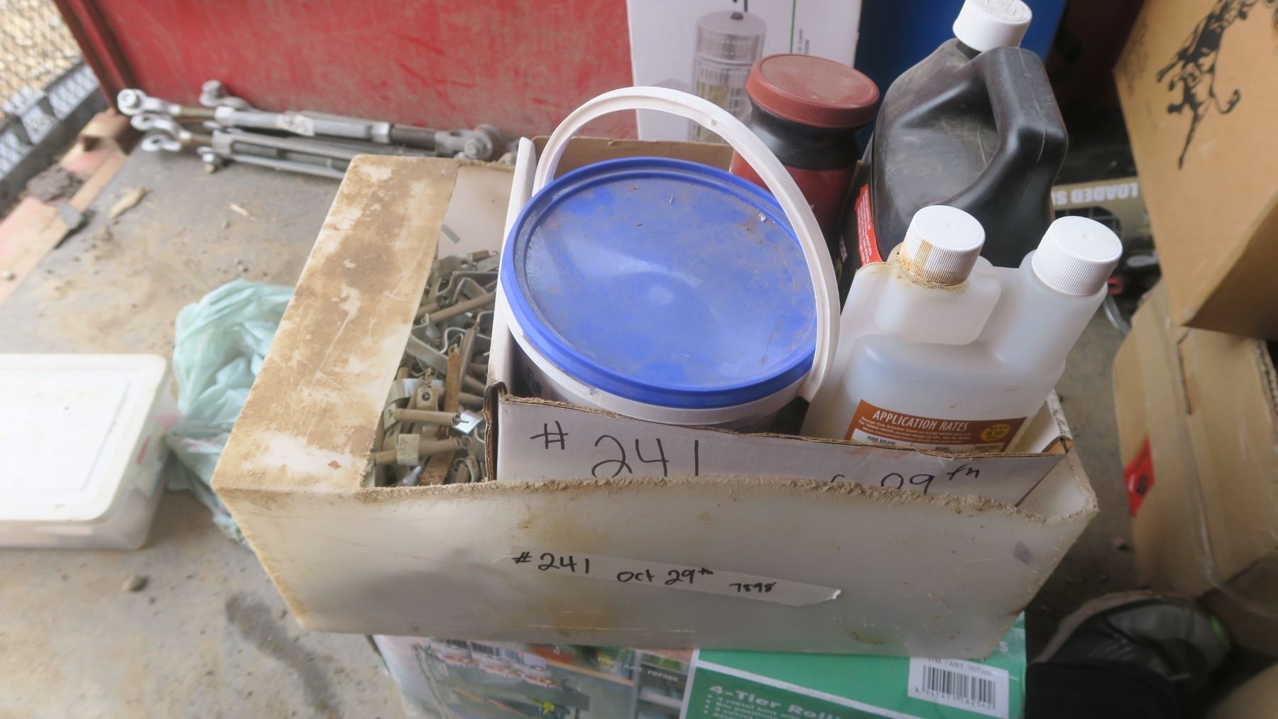 box ofmisc items, chemicals, metal springs, etc.