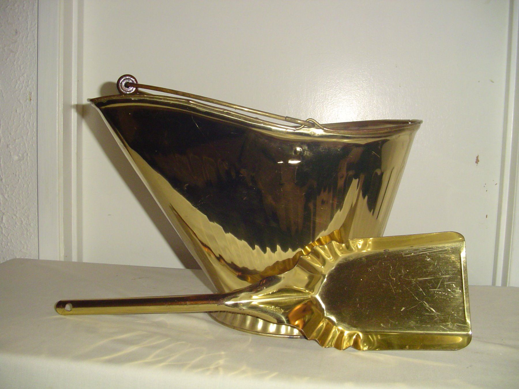 brass coal pail and shovel