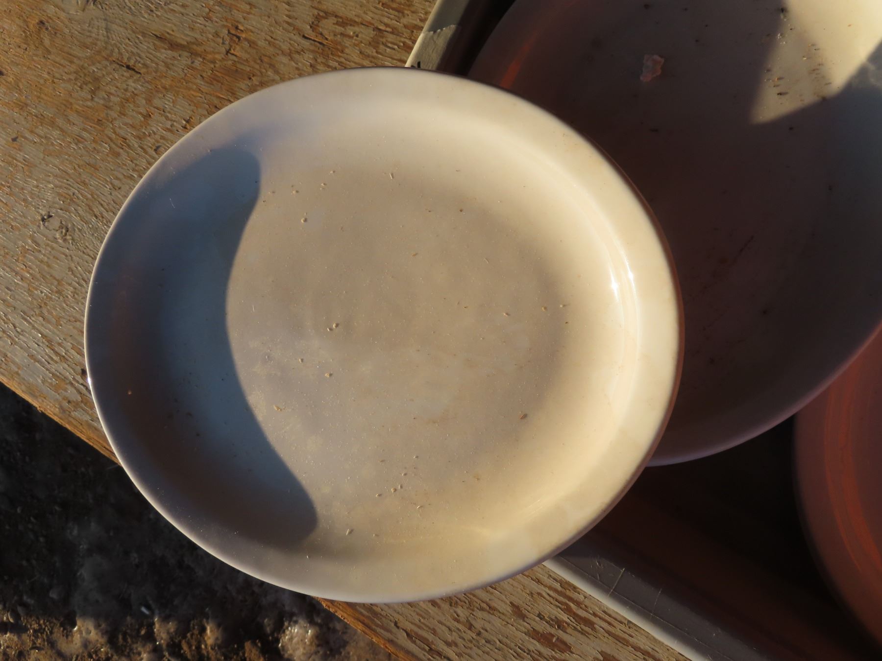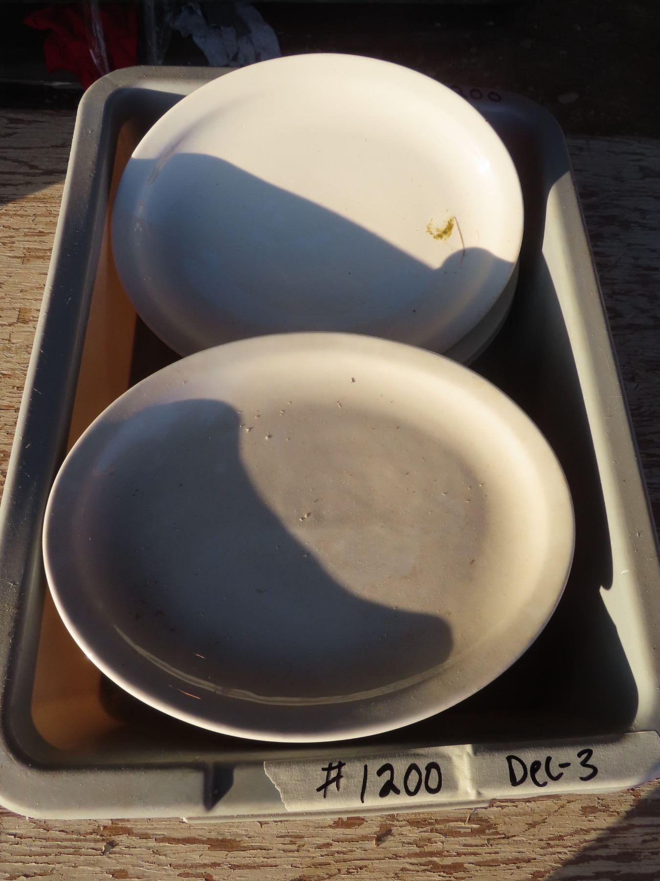 bus pan w/large white dining plates