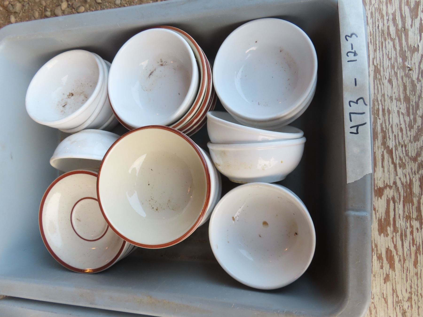 bus tub full of bowls and saucers