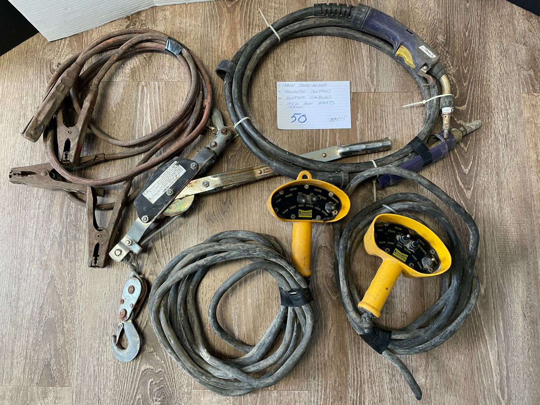 cable come-along, concrete controls, booster cables and mig gun parts cable