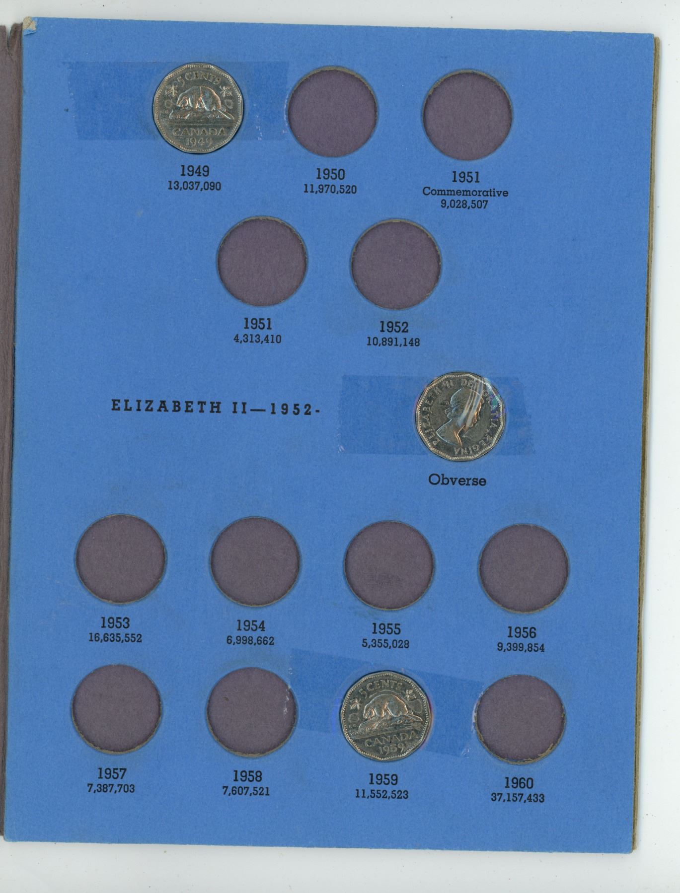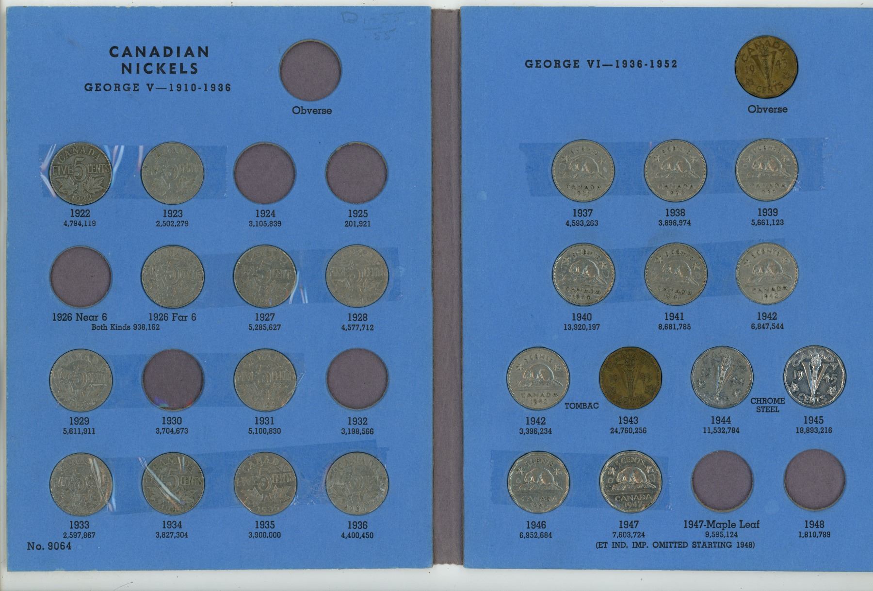 canadian nickel 1910-1960- missing (1924-1926 near 6, 1930, 1932, 1947-48, 1950-58 and 1960