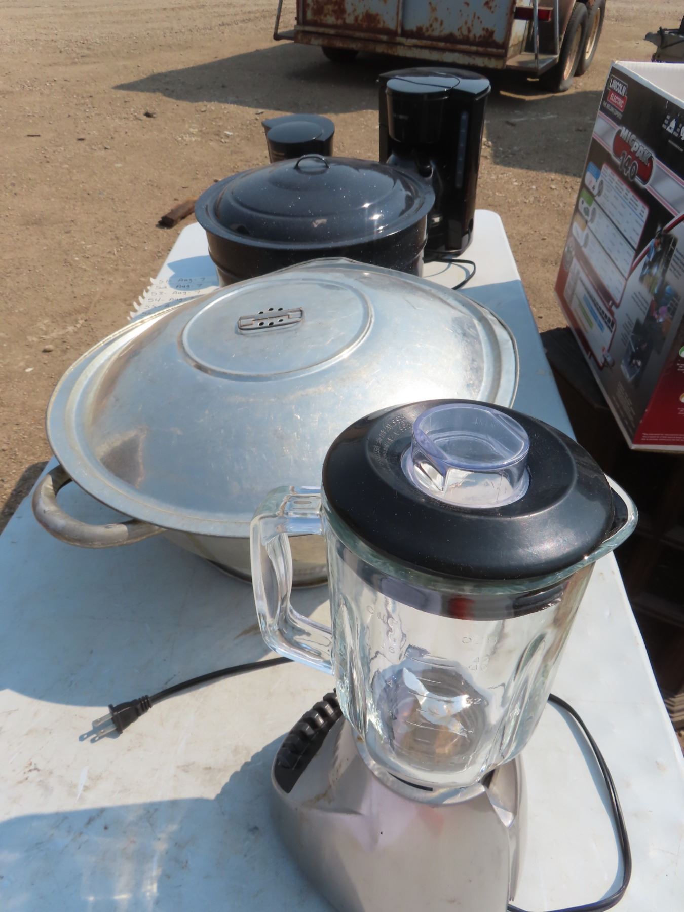 canning pot , large stainless pot , mixer , two coffee pots