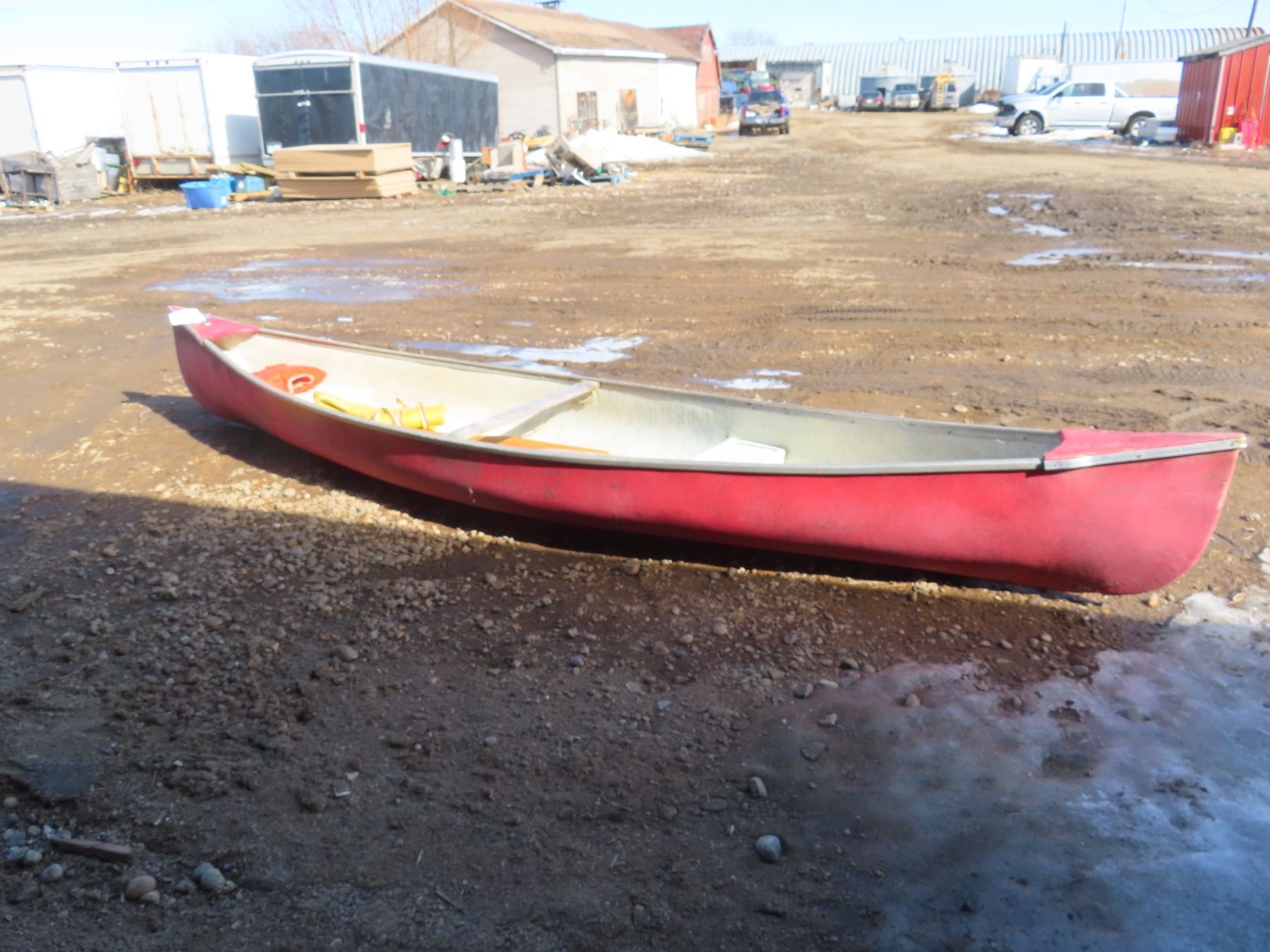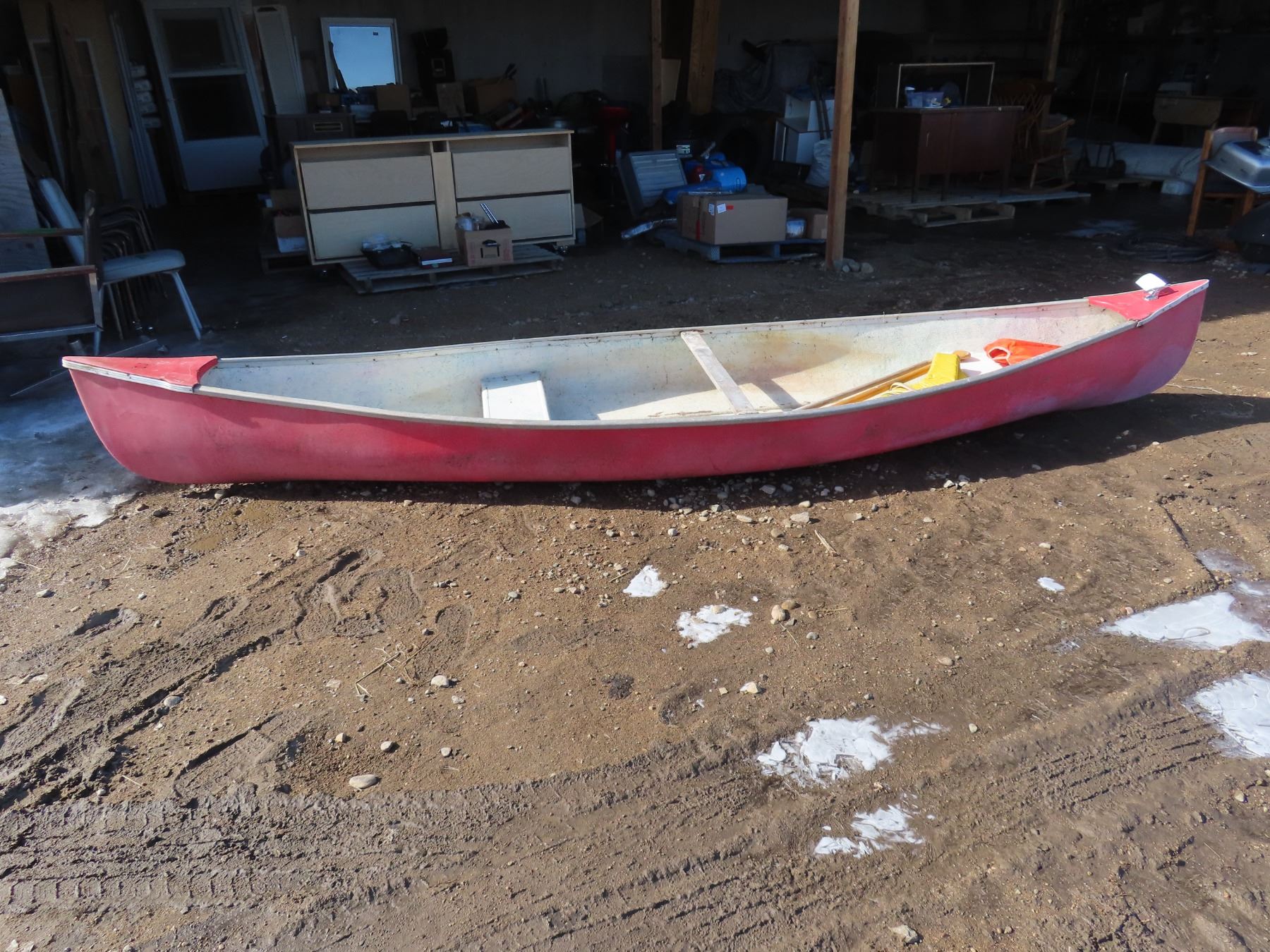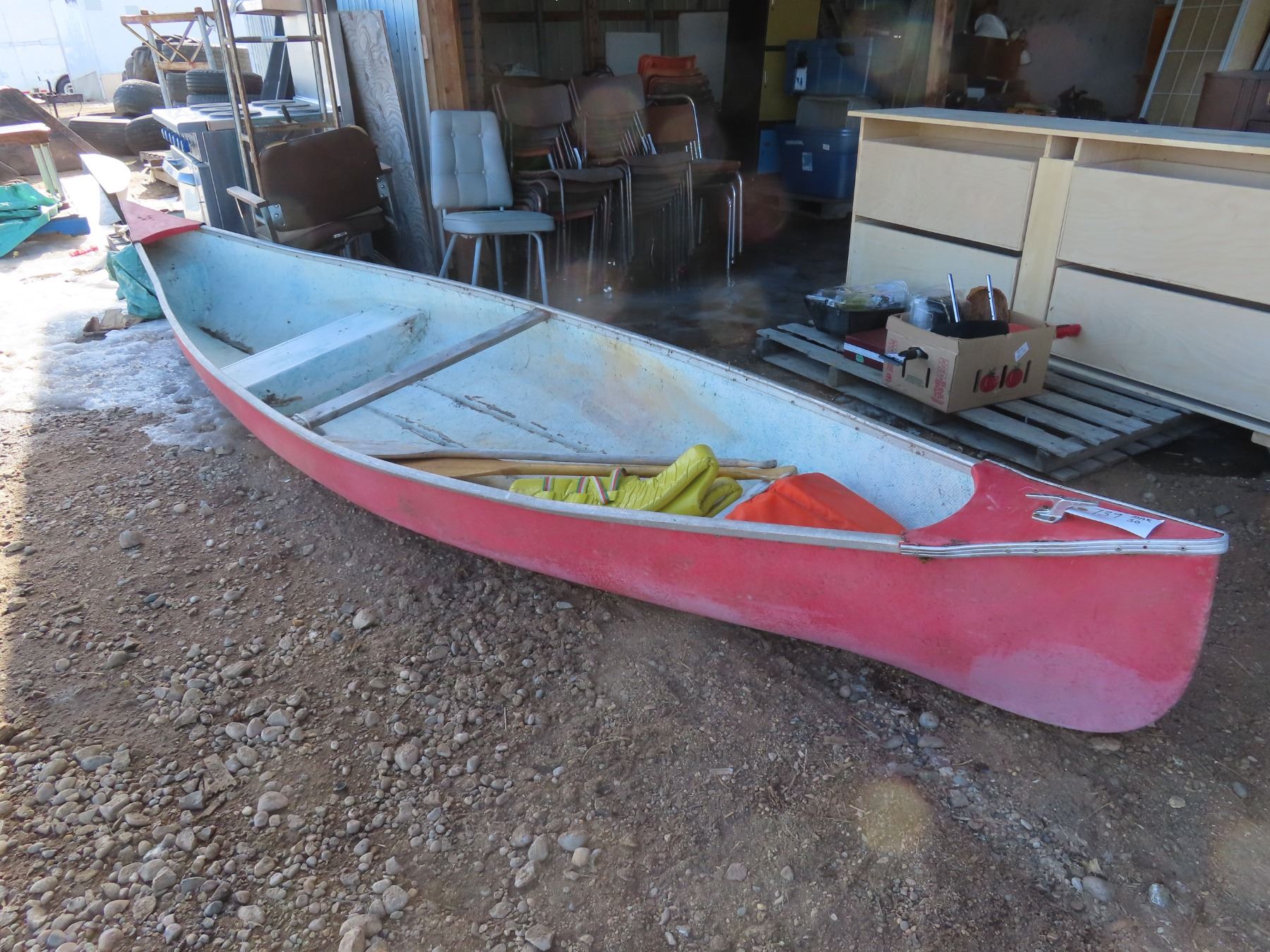 canoe with paddles and life jackets , no leaks sun faded but good condition