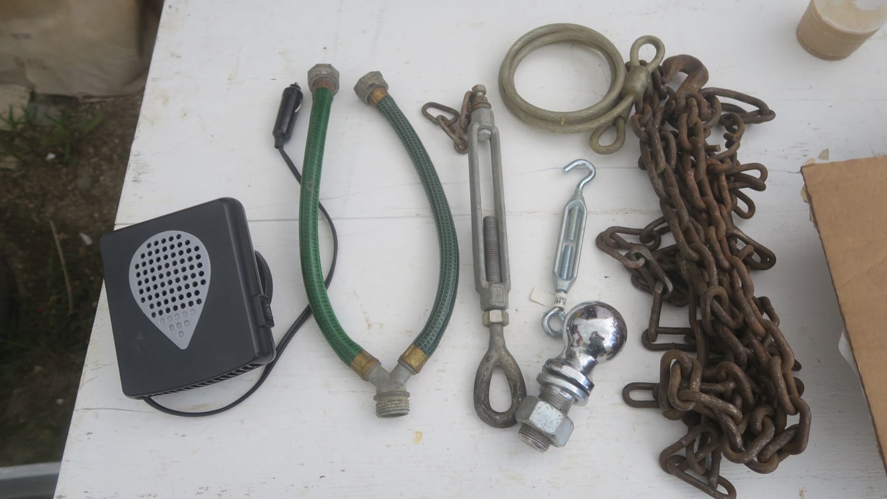 car heater, chain, hitch ball, etc.