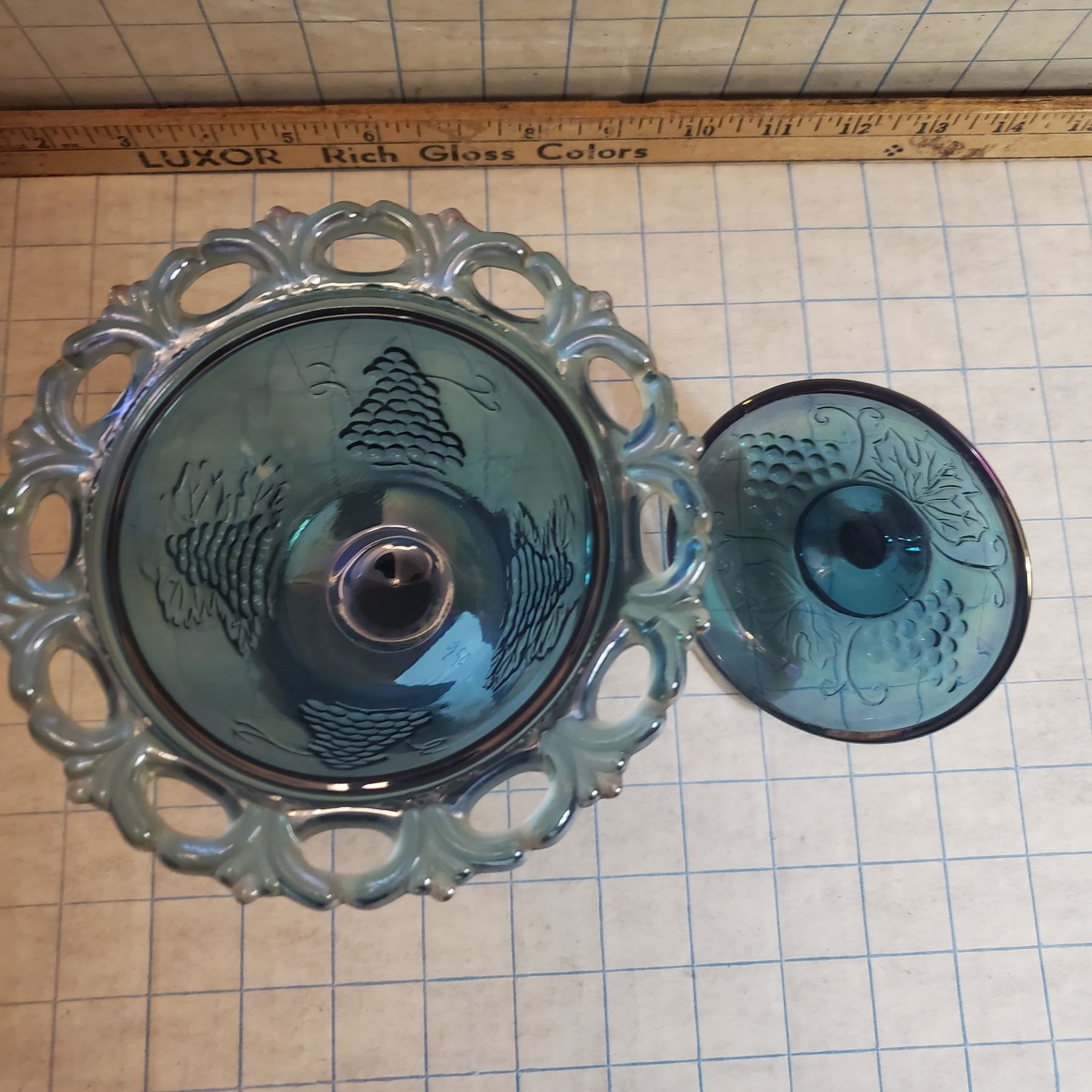 carnival glass candy dish with lid. Indiana glass Lustre dish with lid