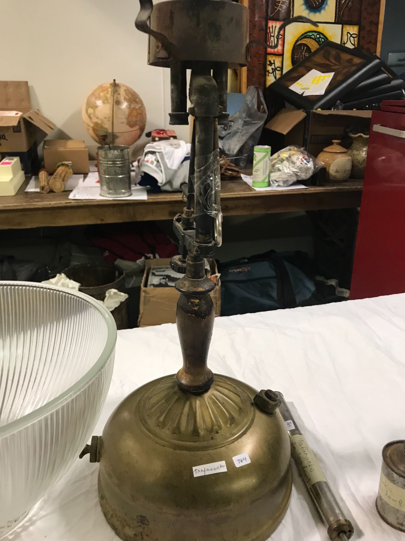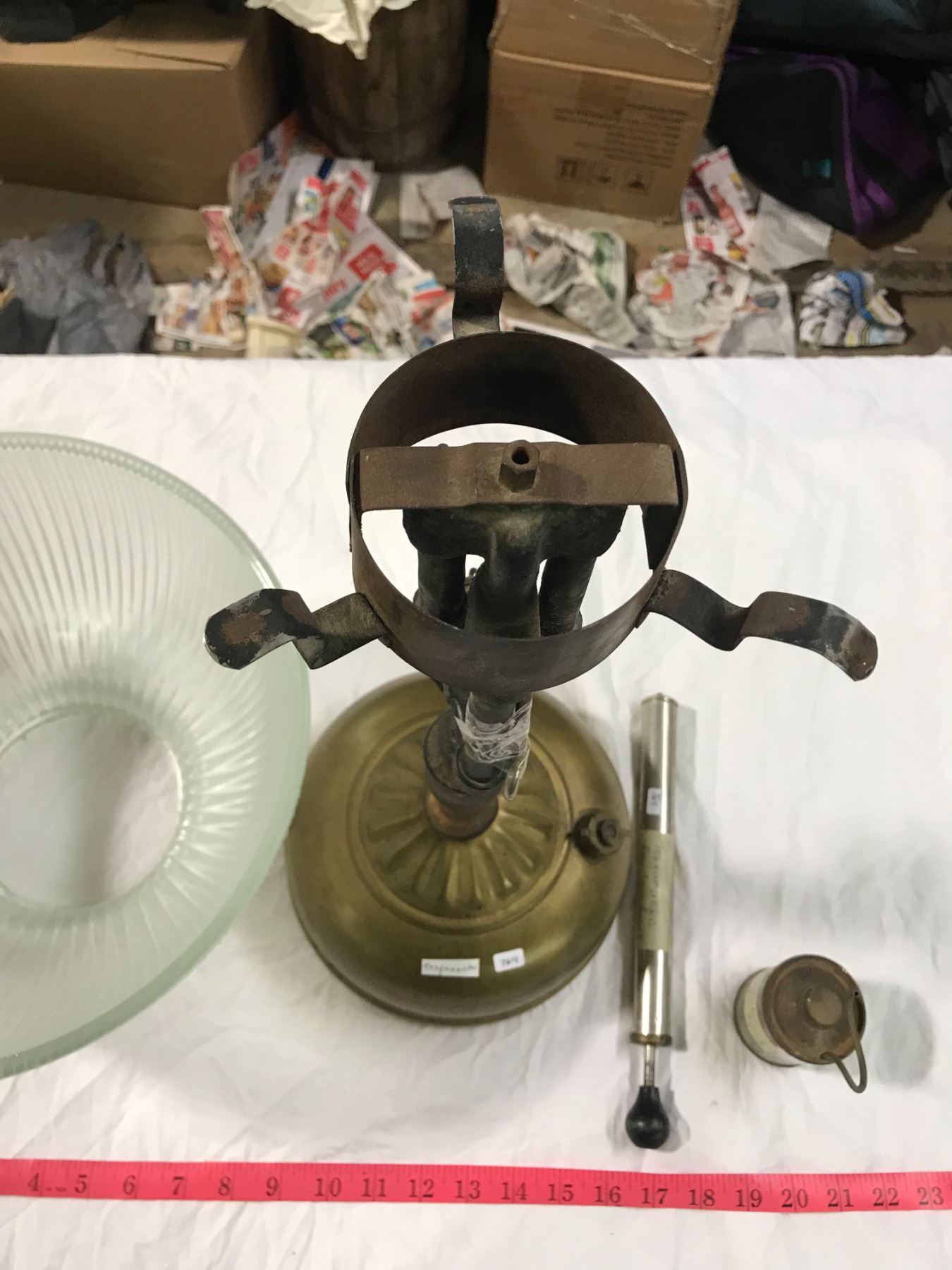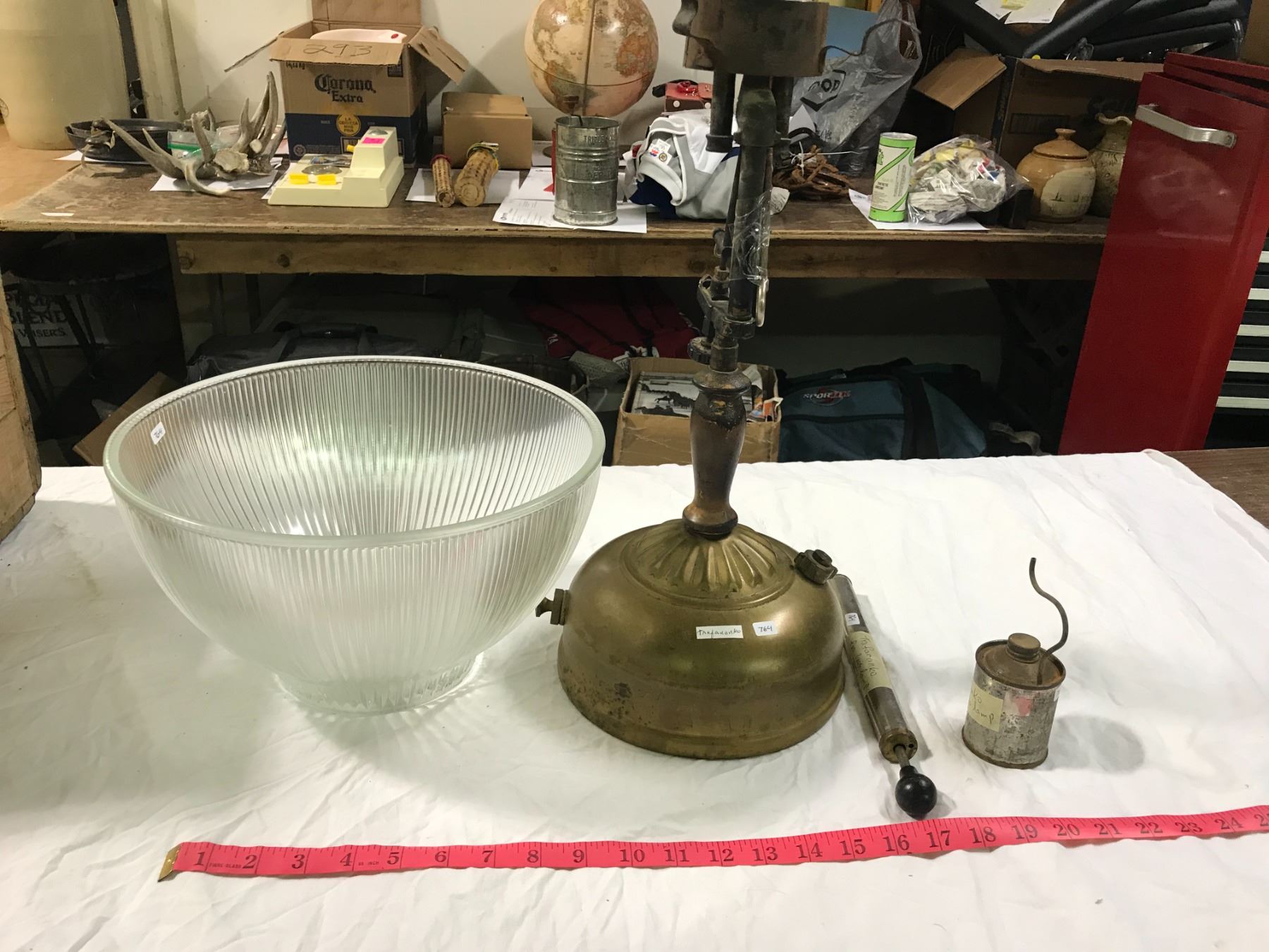 ceiling Gas Lamp With Hanger, Big Round Glass Shade, Pump, Small Gas Container