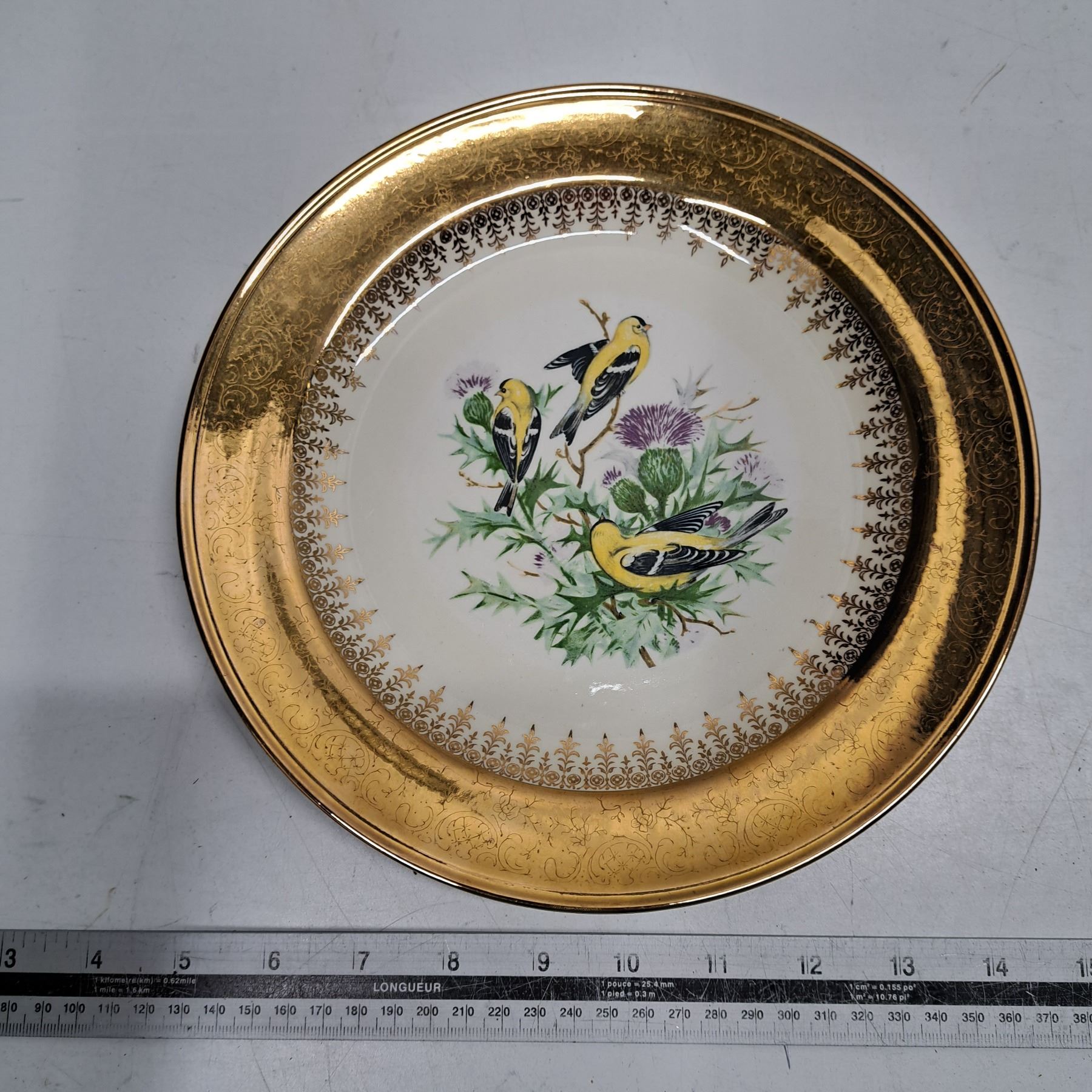 chinaware plate gold trim look with birds
