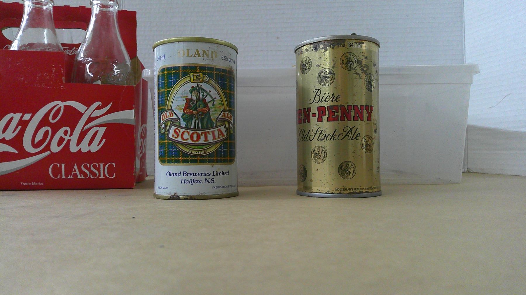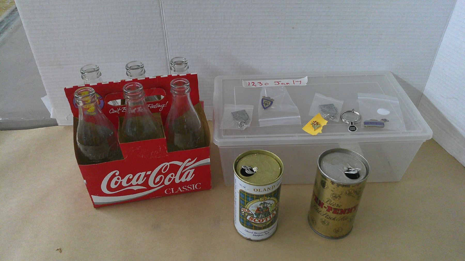 coca-cola bottles, tin cans, misc