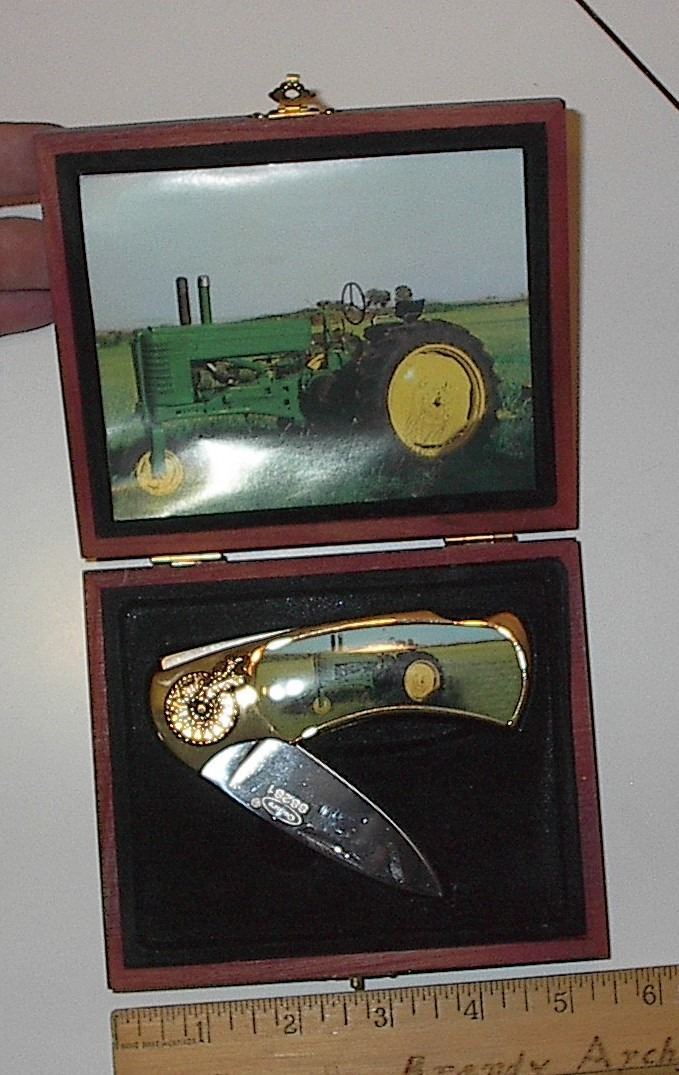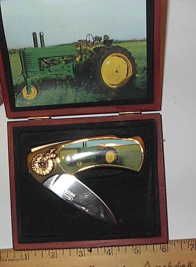 coin bank with John Deere knife
