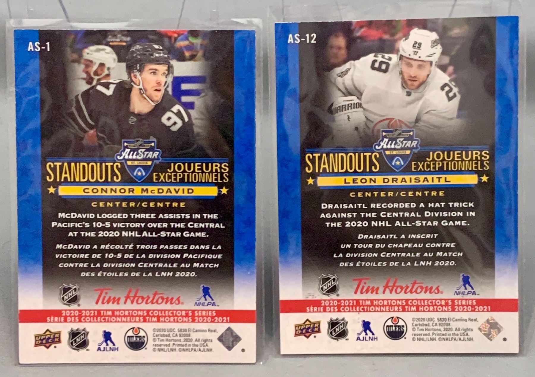 connor mcdavid and leon drisaitl standouts, 2020-21 rare tim hortons hockey cards