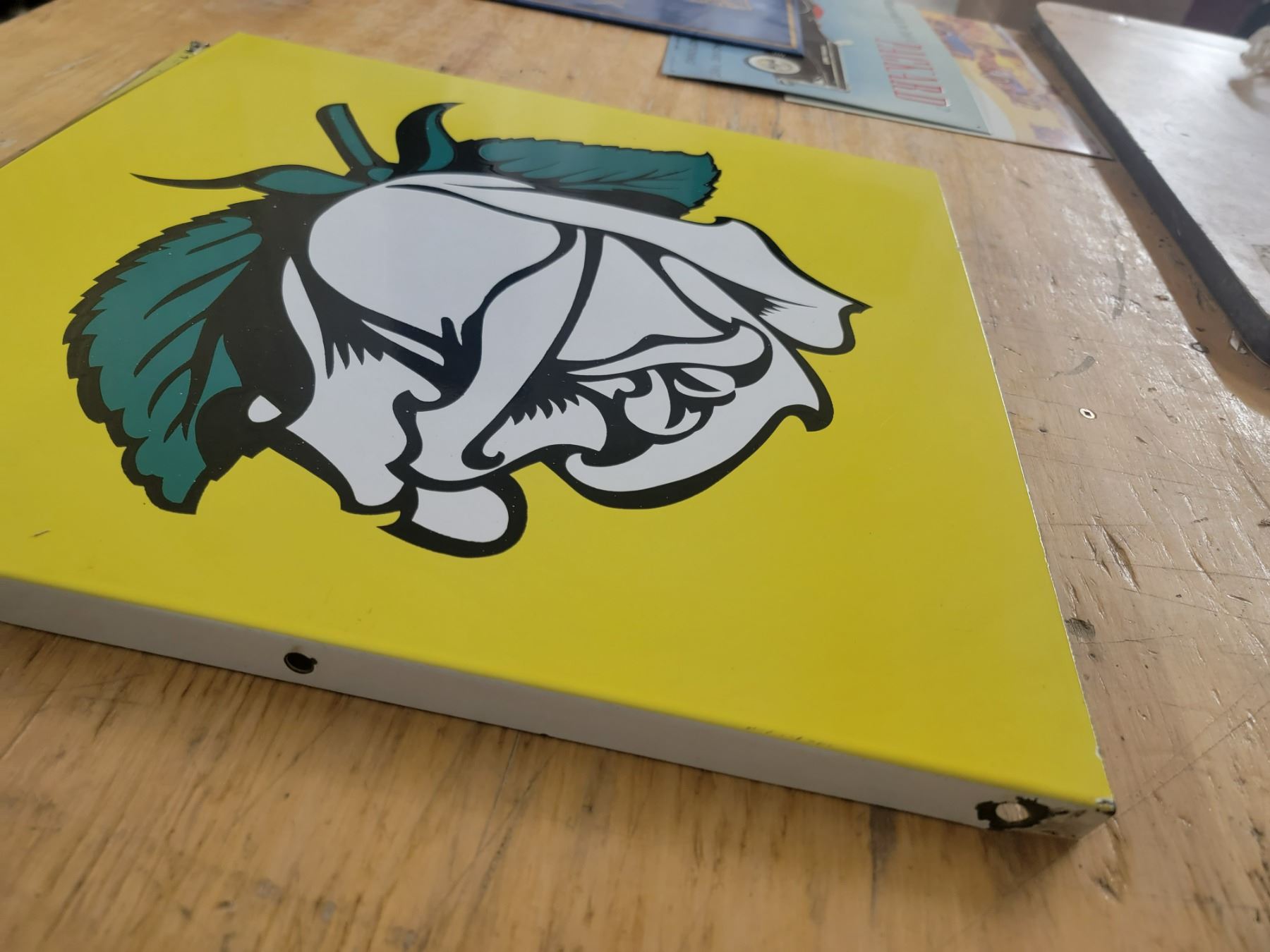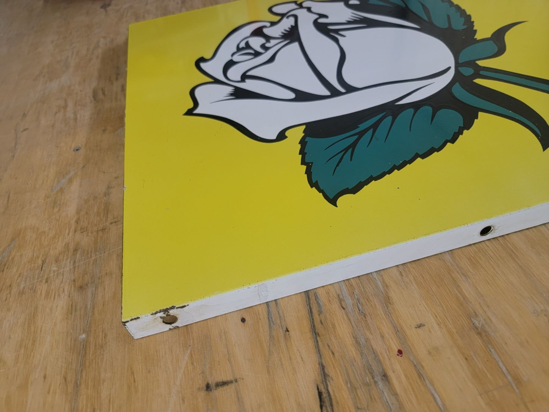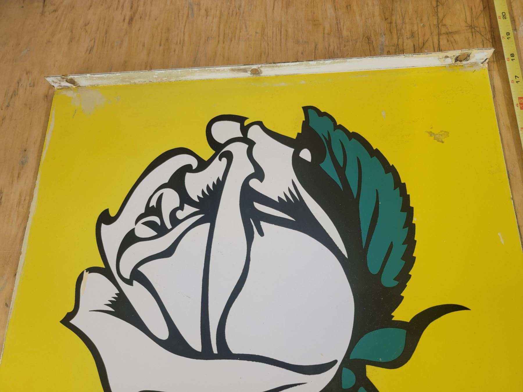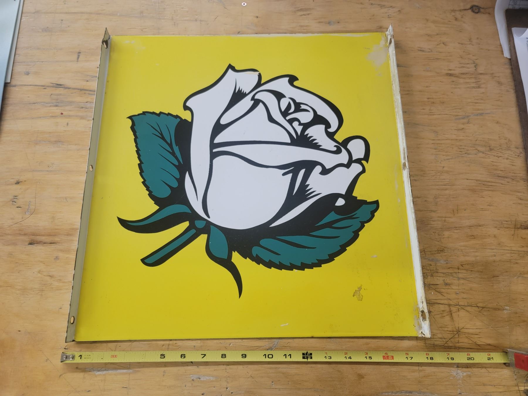 double sided White Rose Gasoline pump advertising sign 17.5" x 18"
