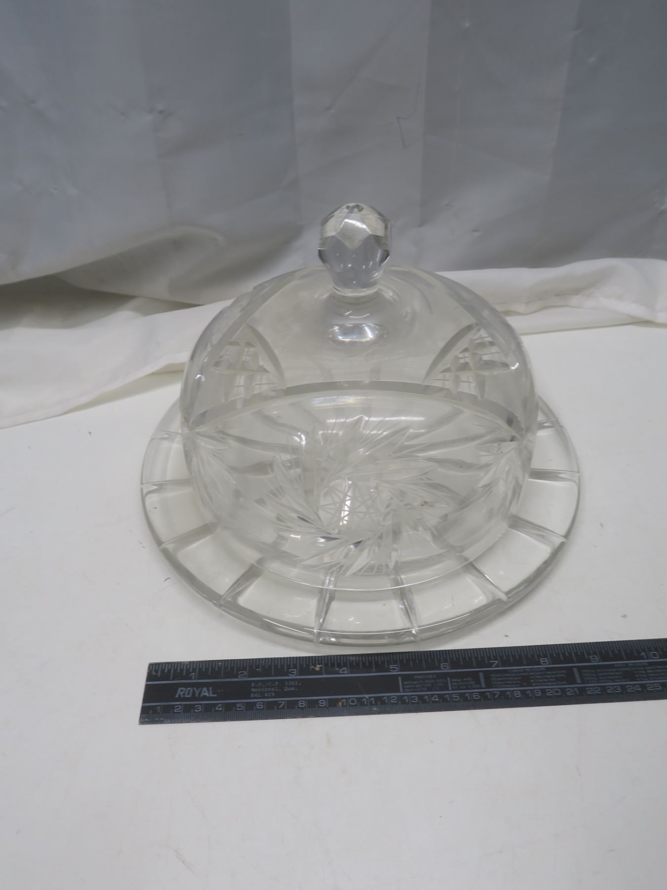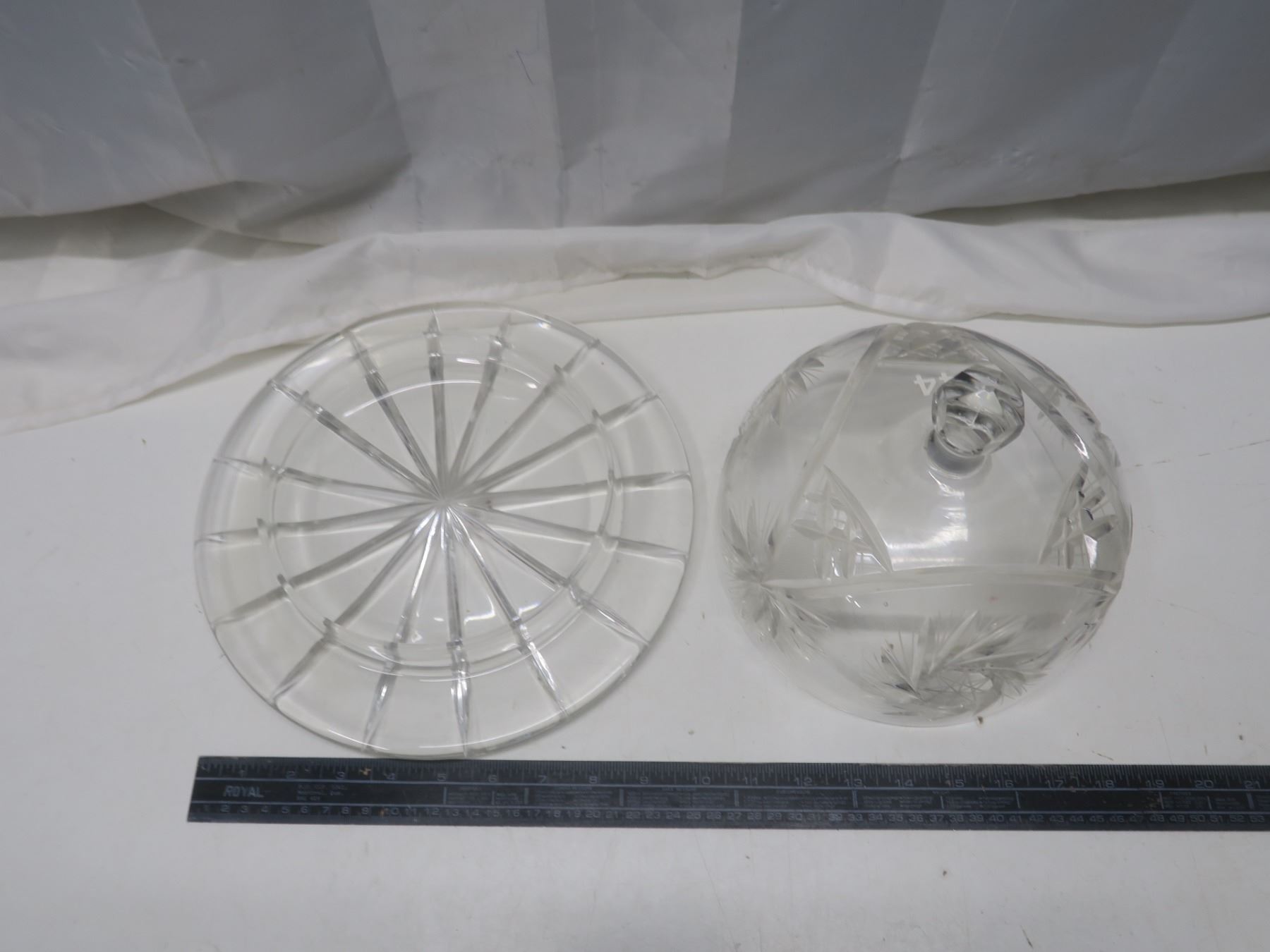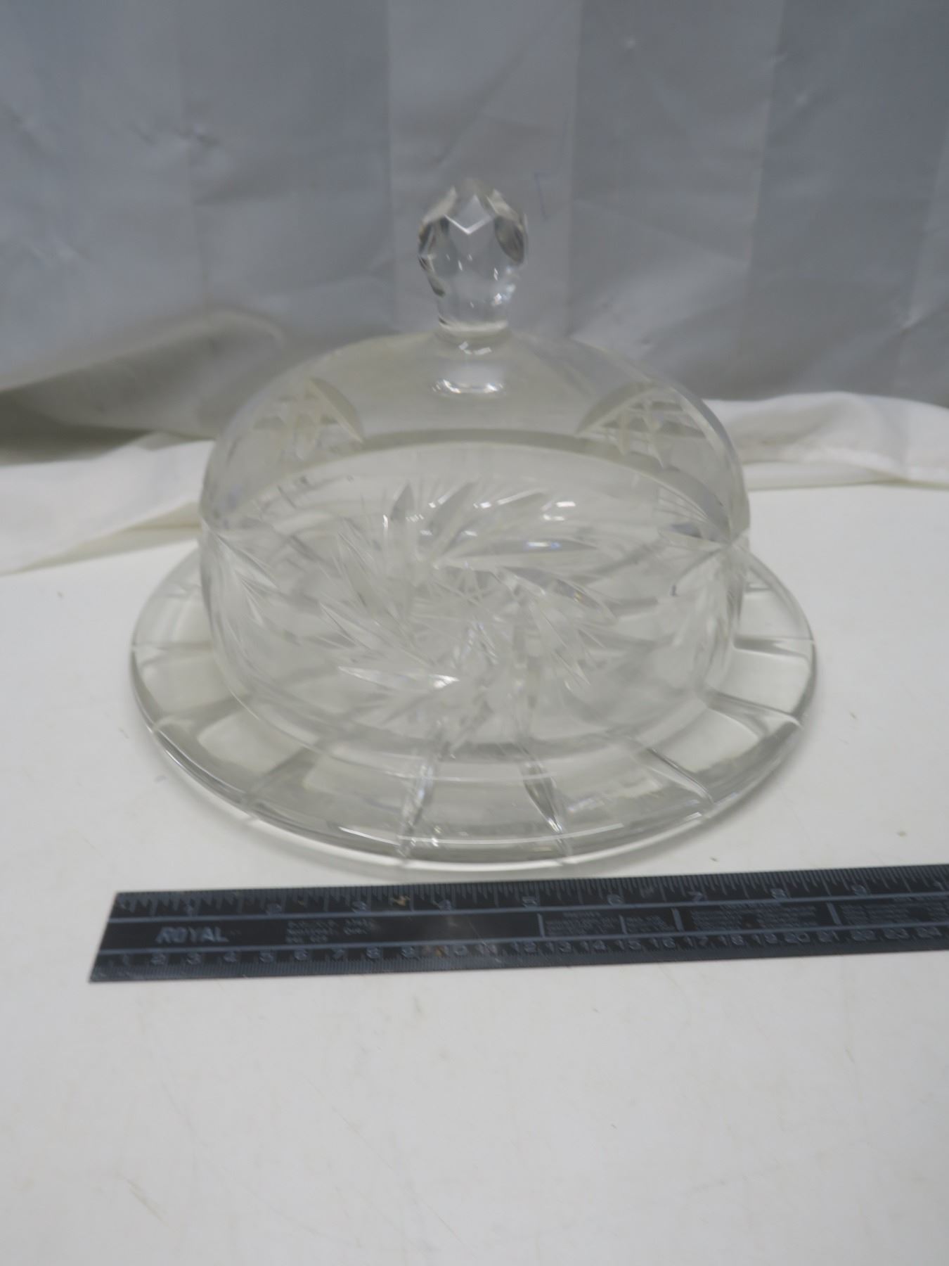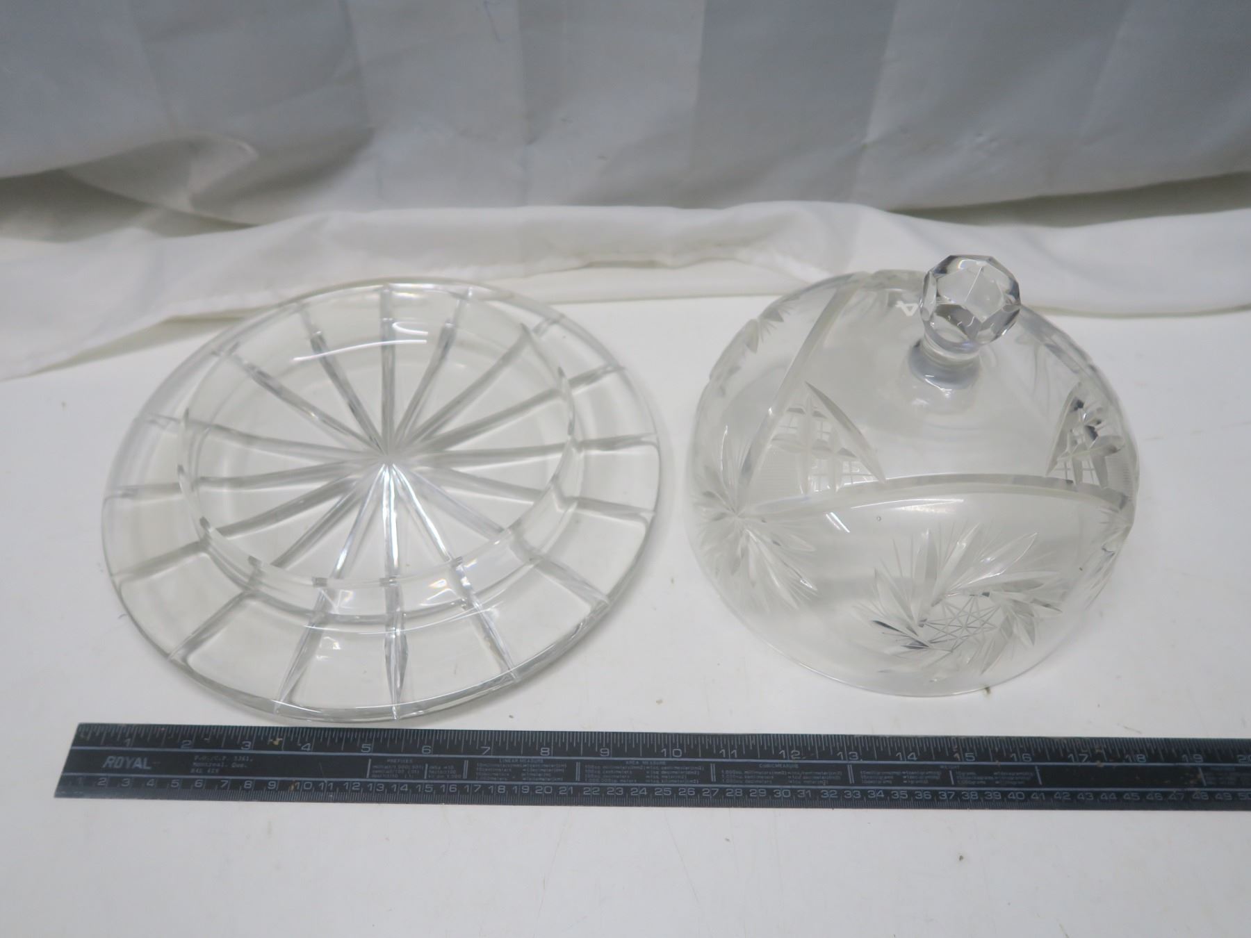 etched crystal covered cake stand 11"x8"