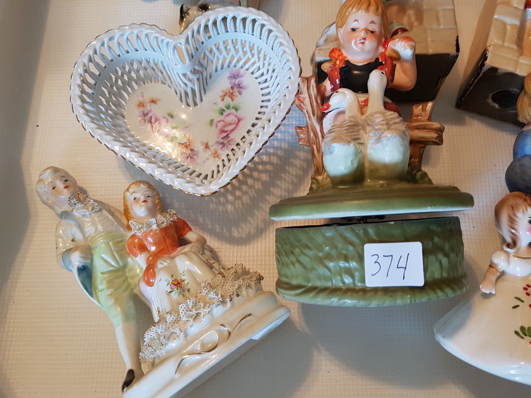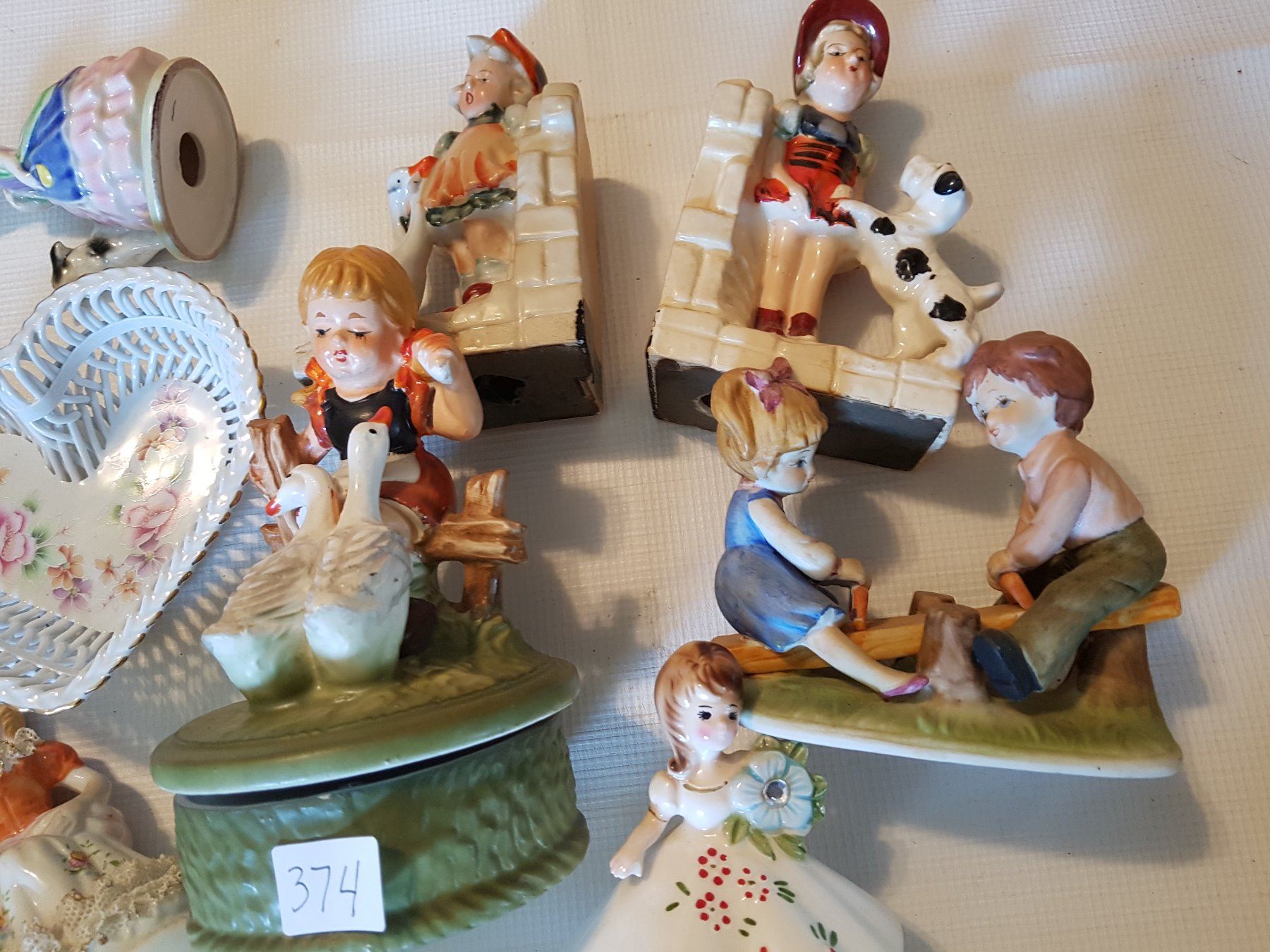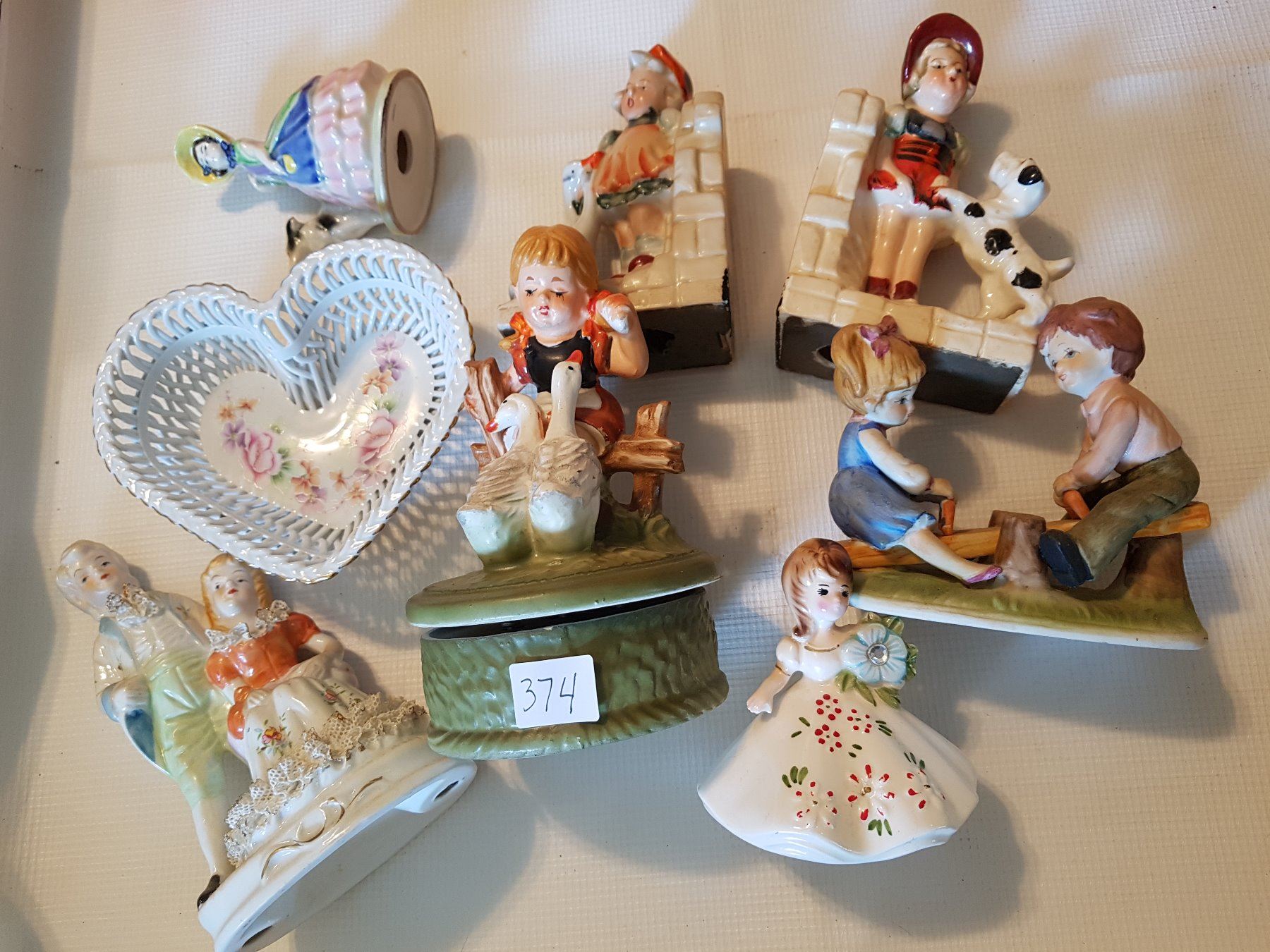 figurines, bookends, dish lot