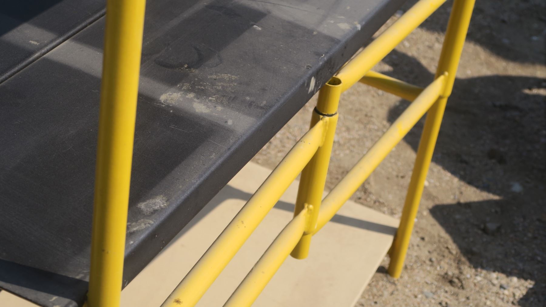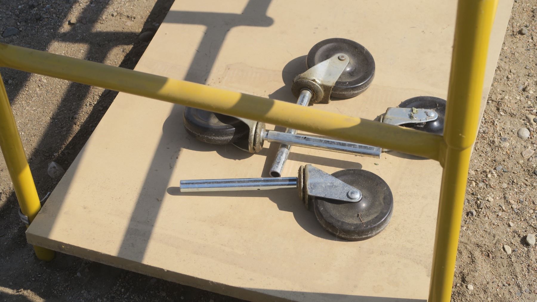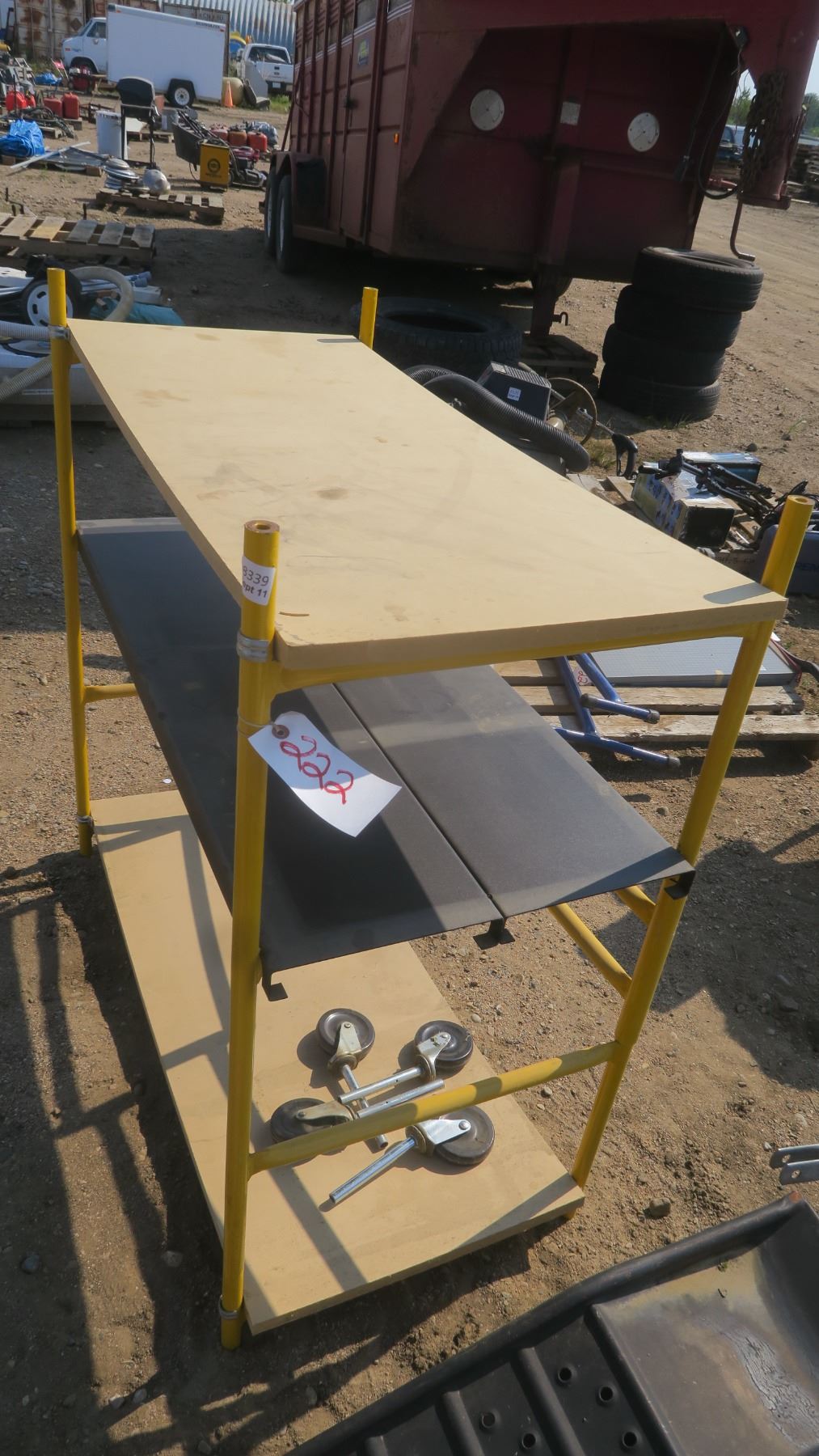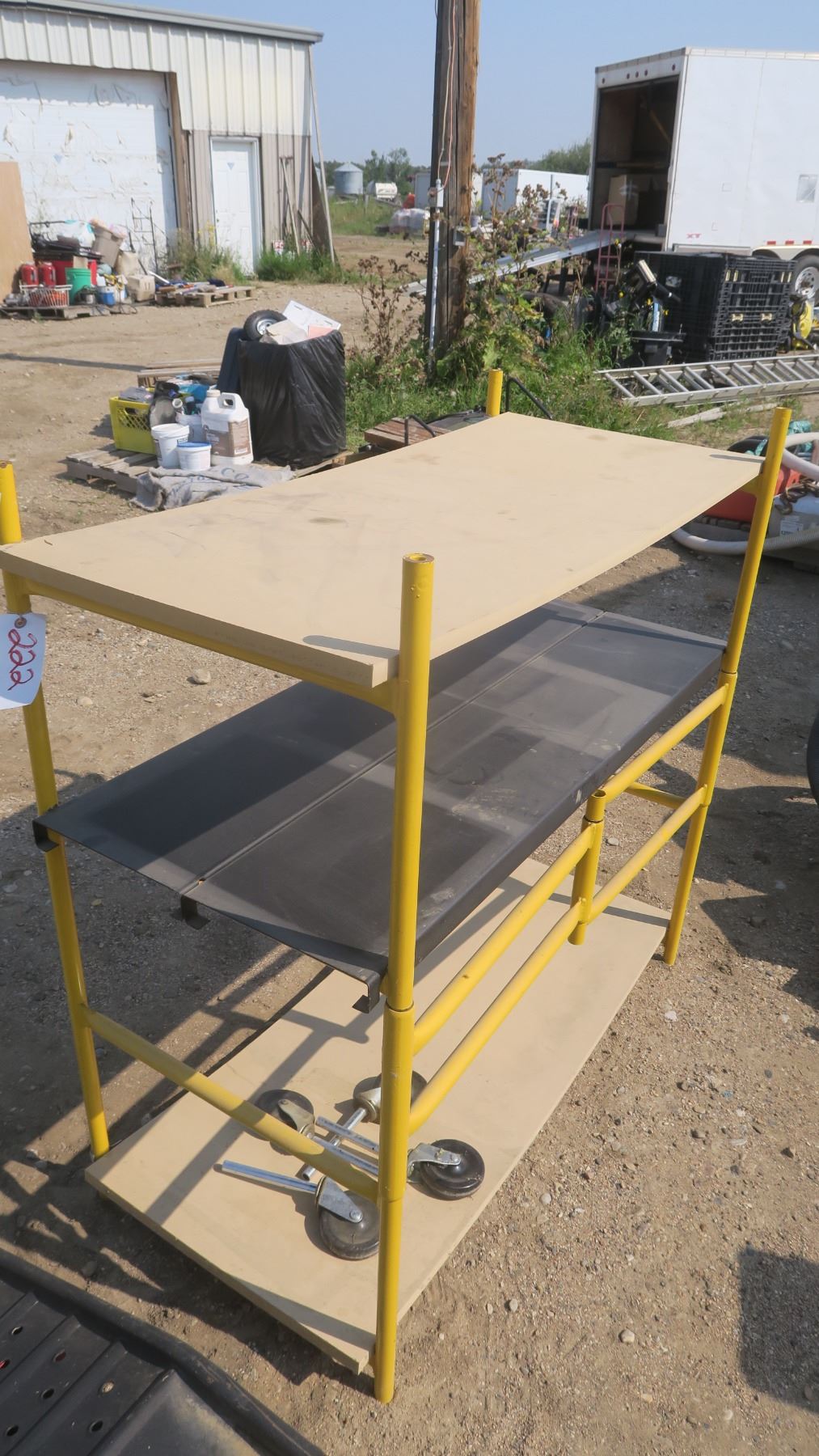 folding yellow scaffolding style shelf with wheels