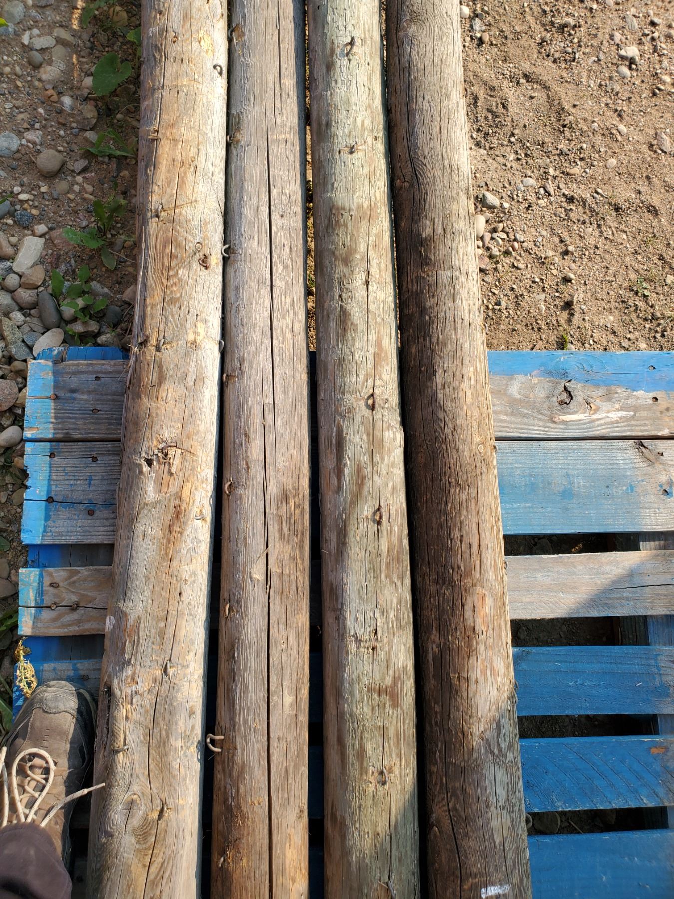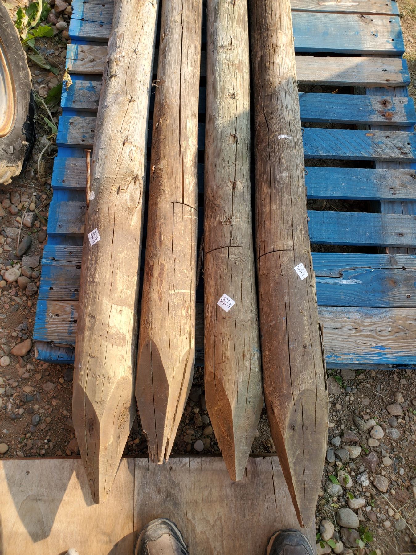 four 8 foot treated fence posts (used)