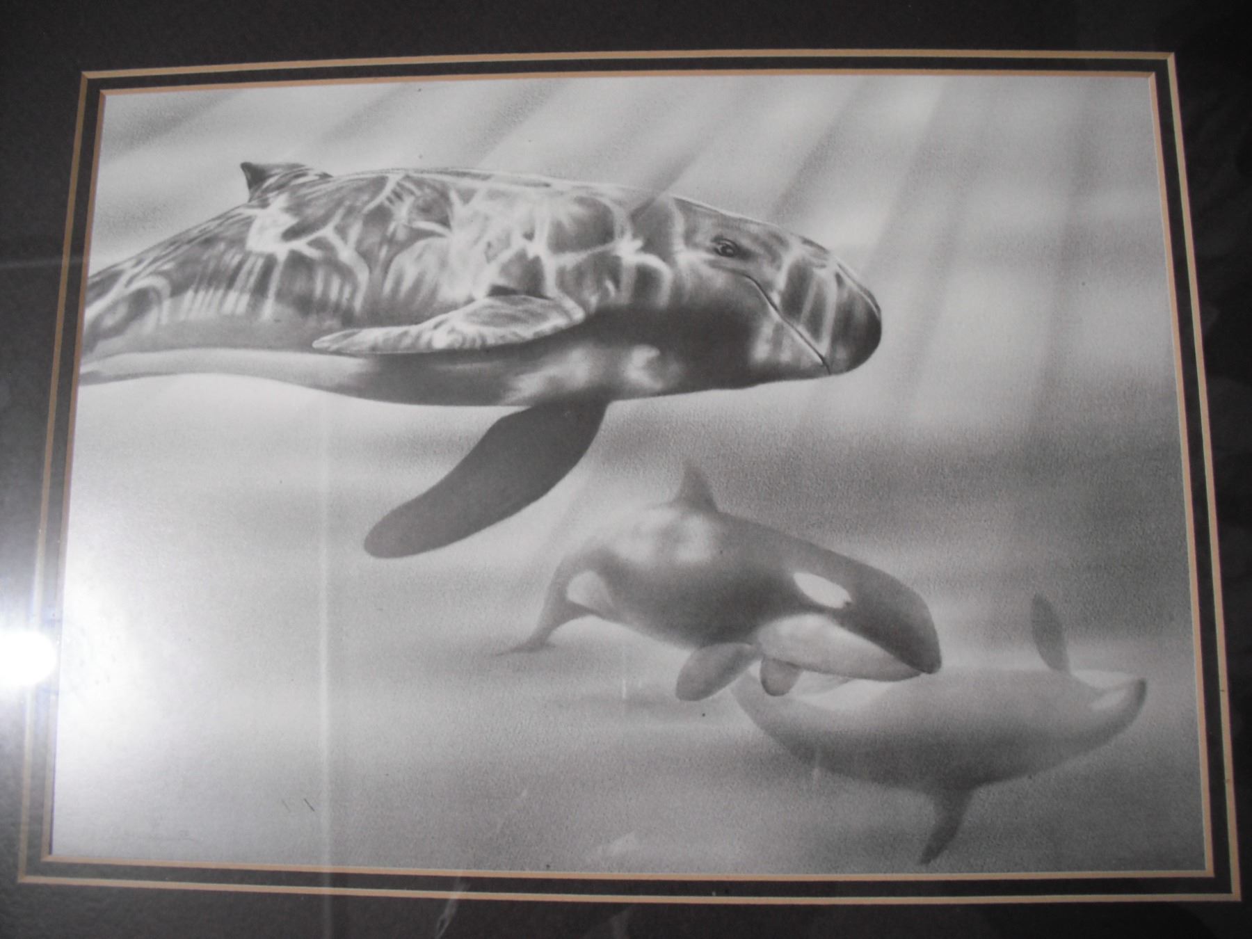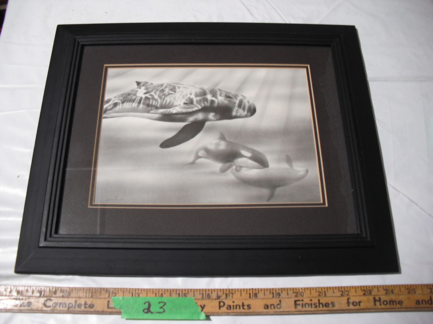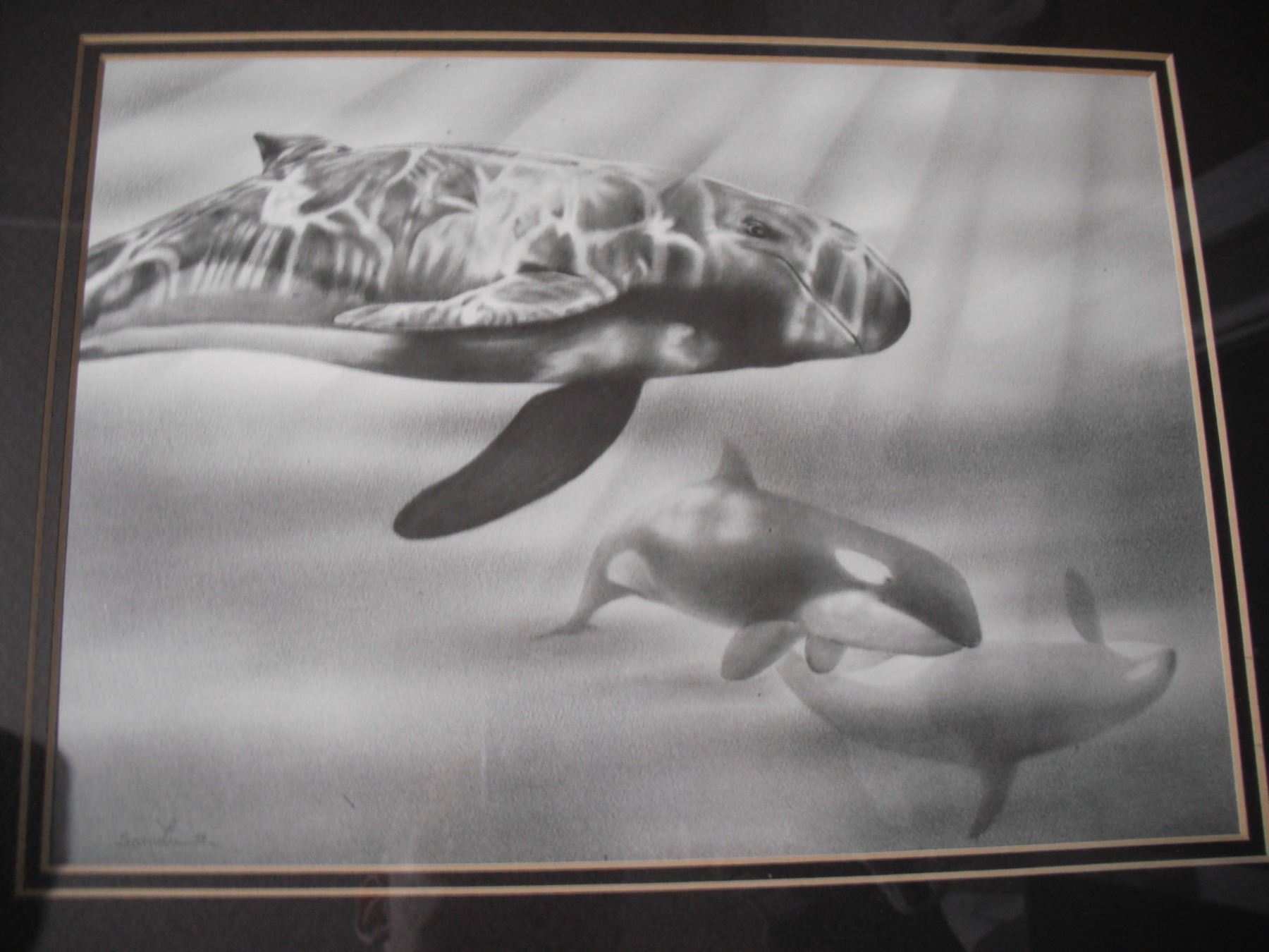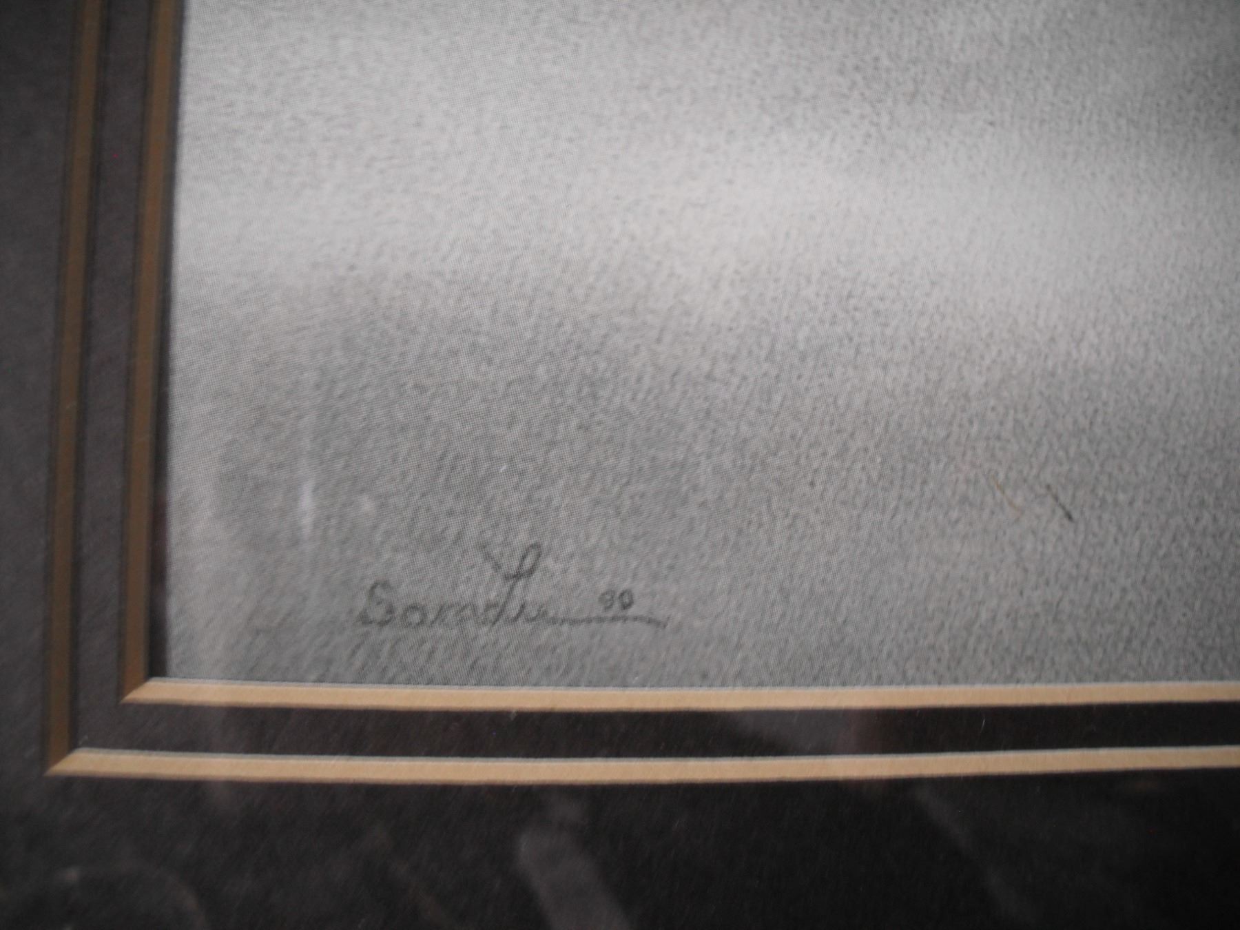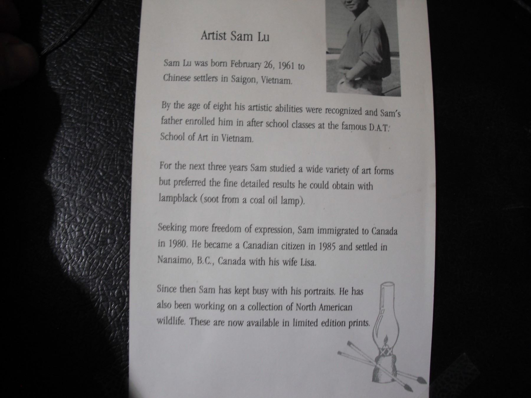framed Sam Lu (lamp black?) art (14x17)