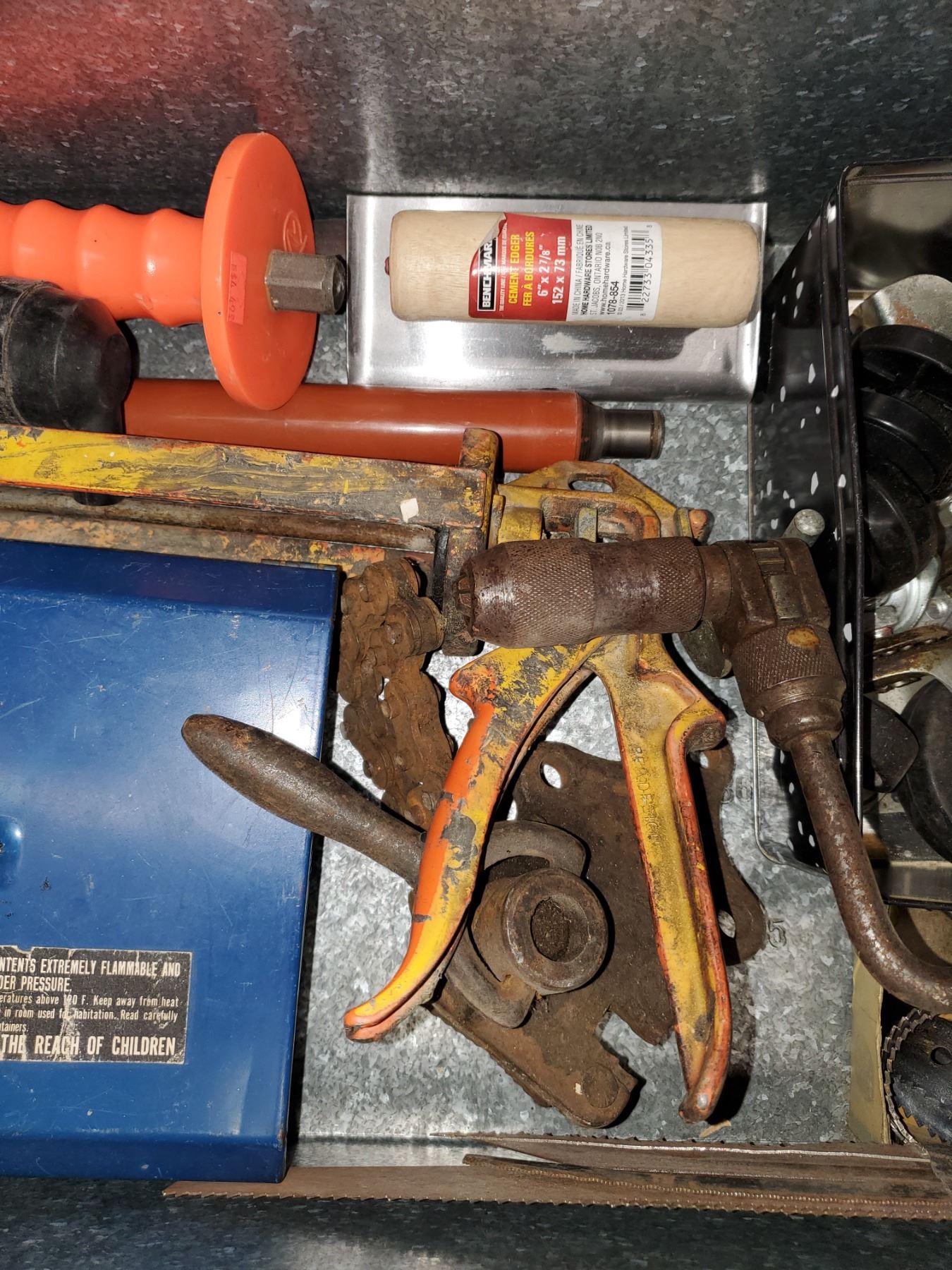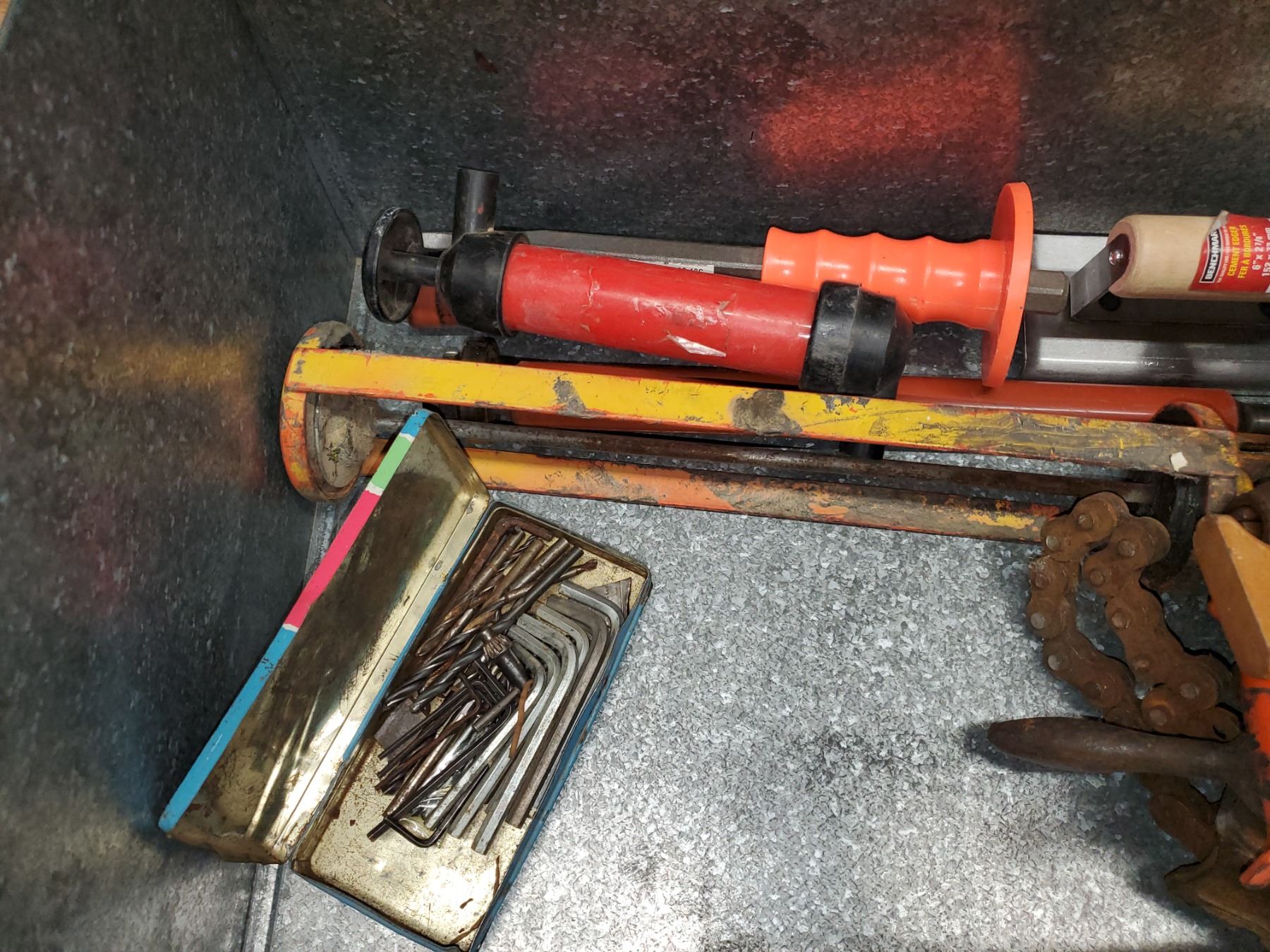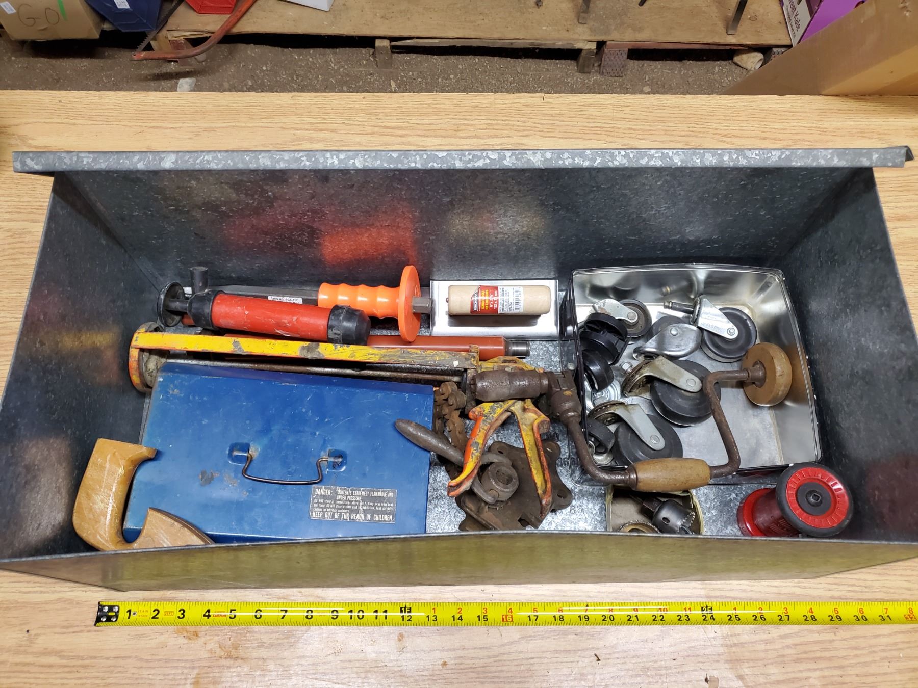 galvanized box filled w/ tools