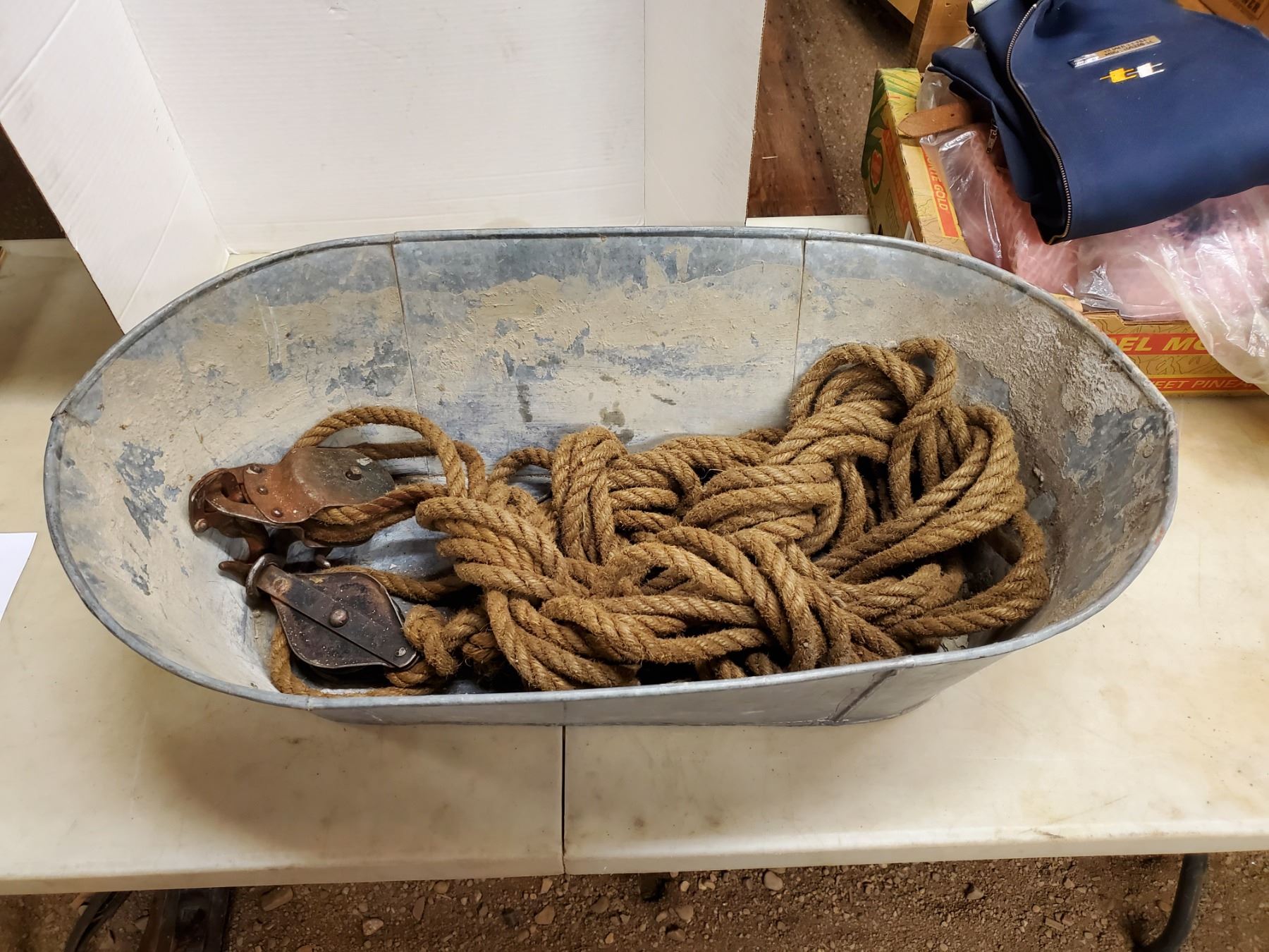 galvanized tube w/ rope & pulleys