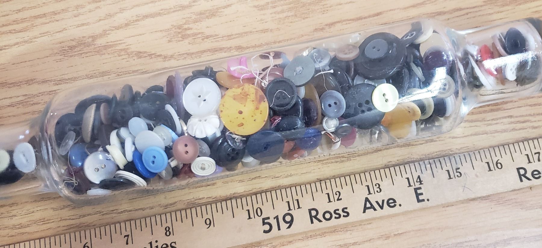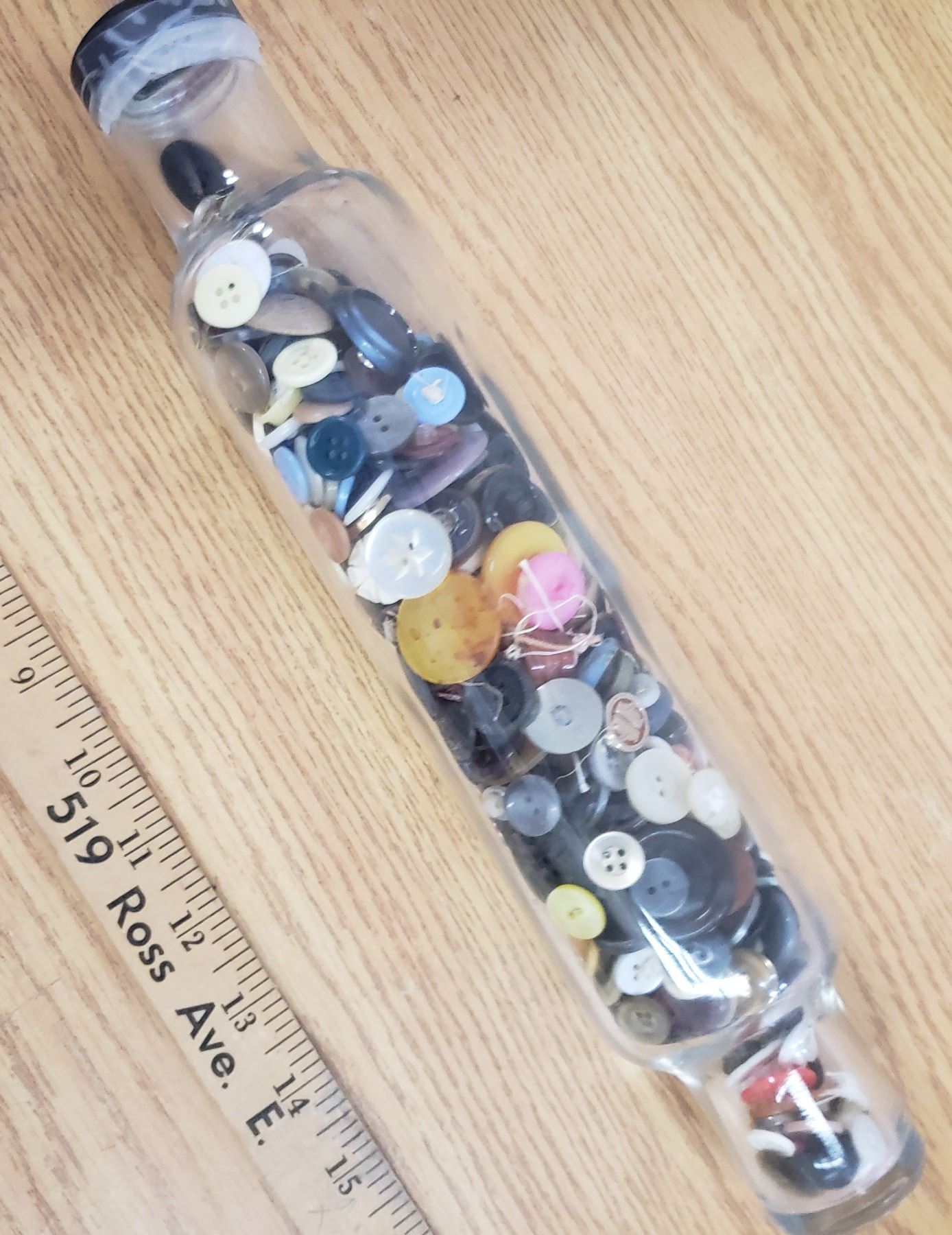 glass rolling pin with Vintage buttons