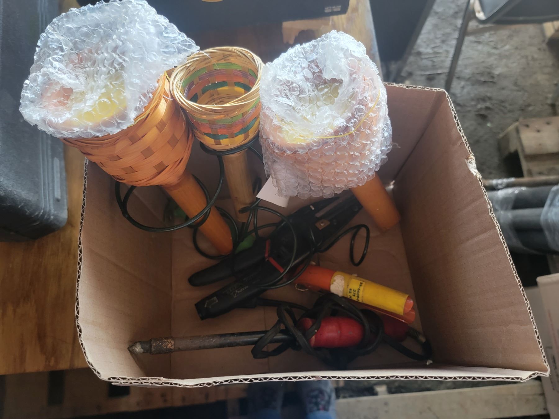 hedge clippers, citronella torches, sodlering gun