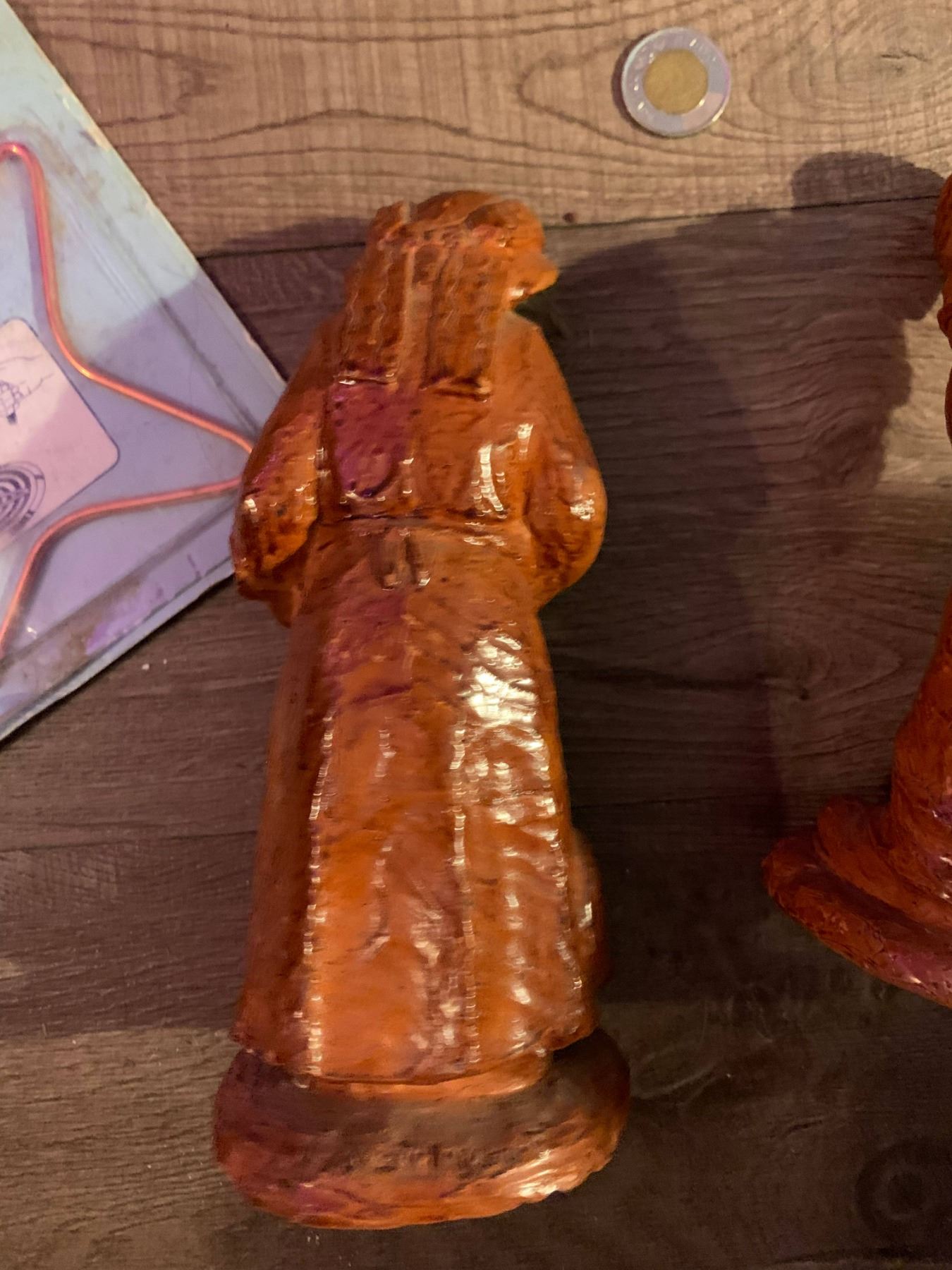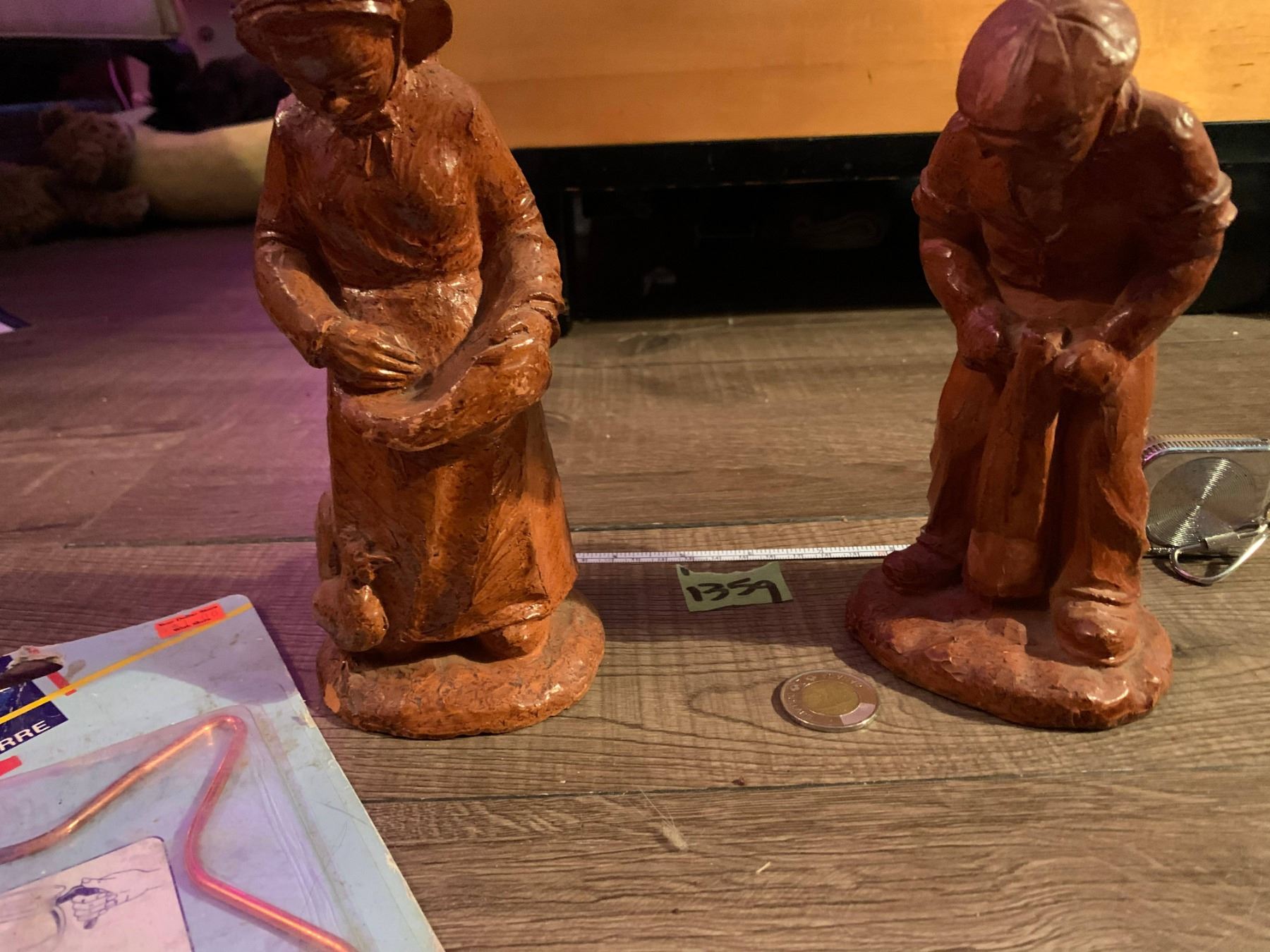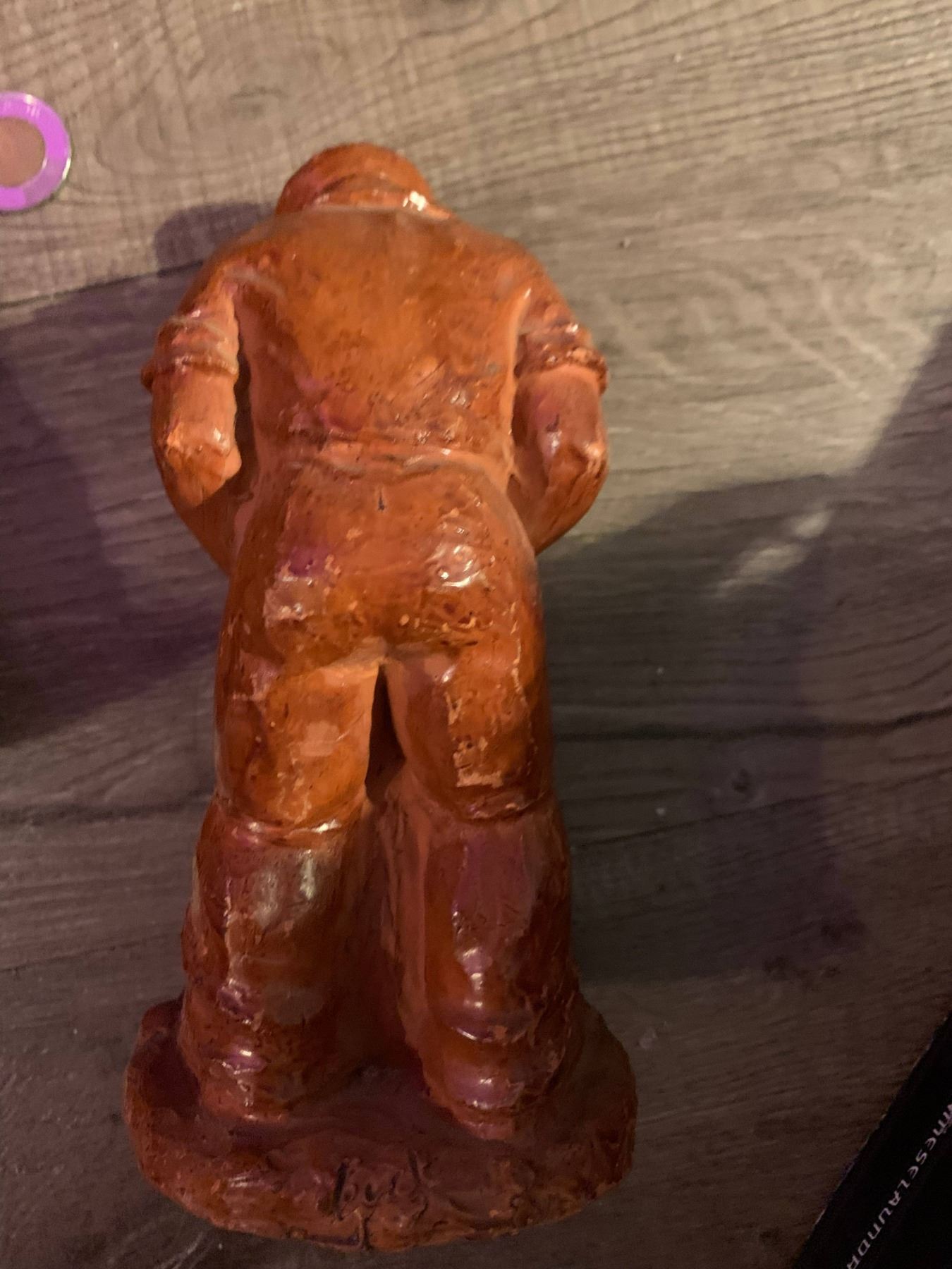 high end old man and old woman clay sculptures artisan signed.