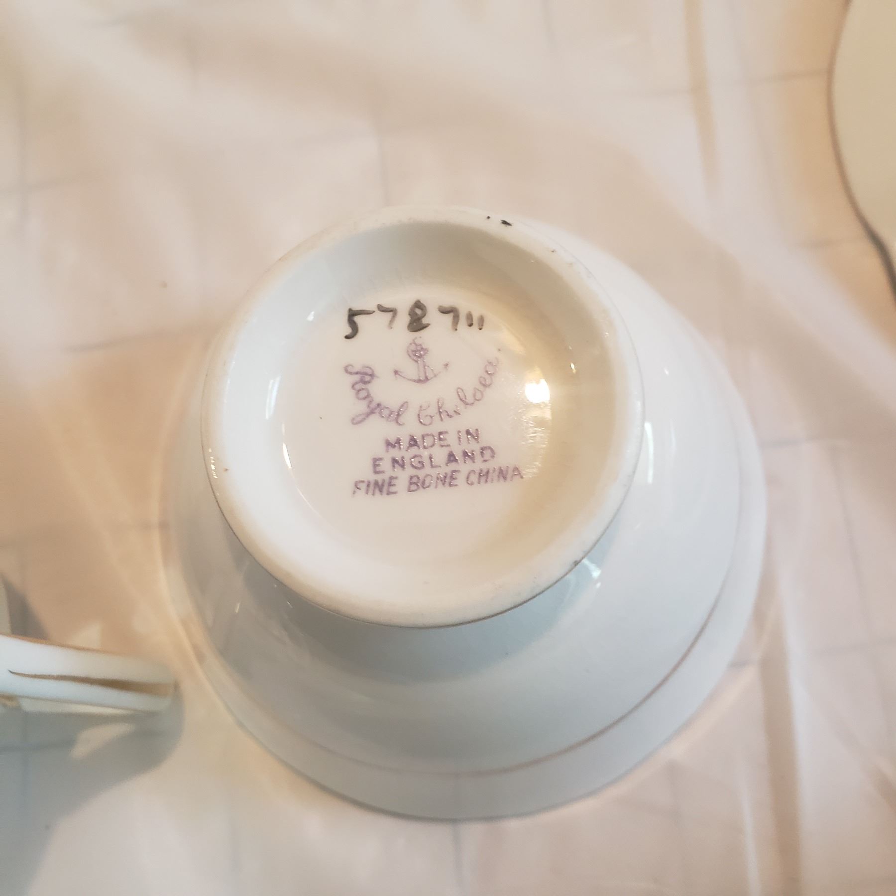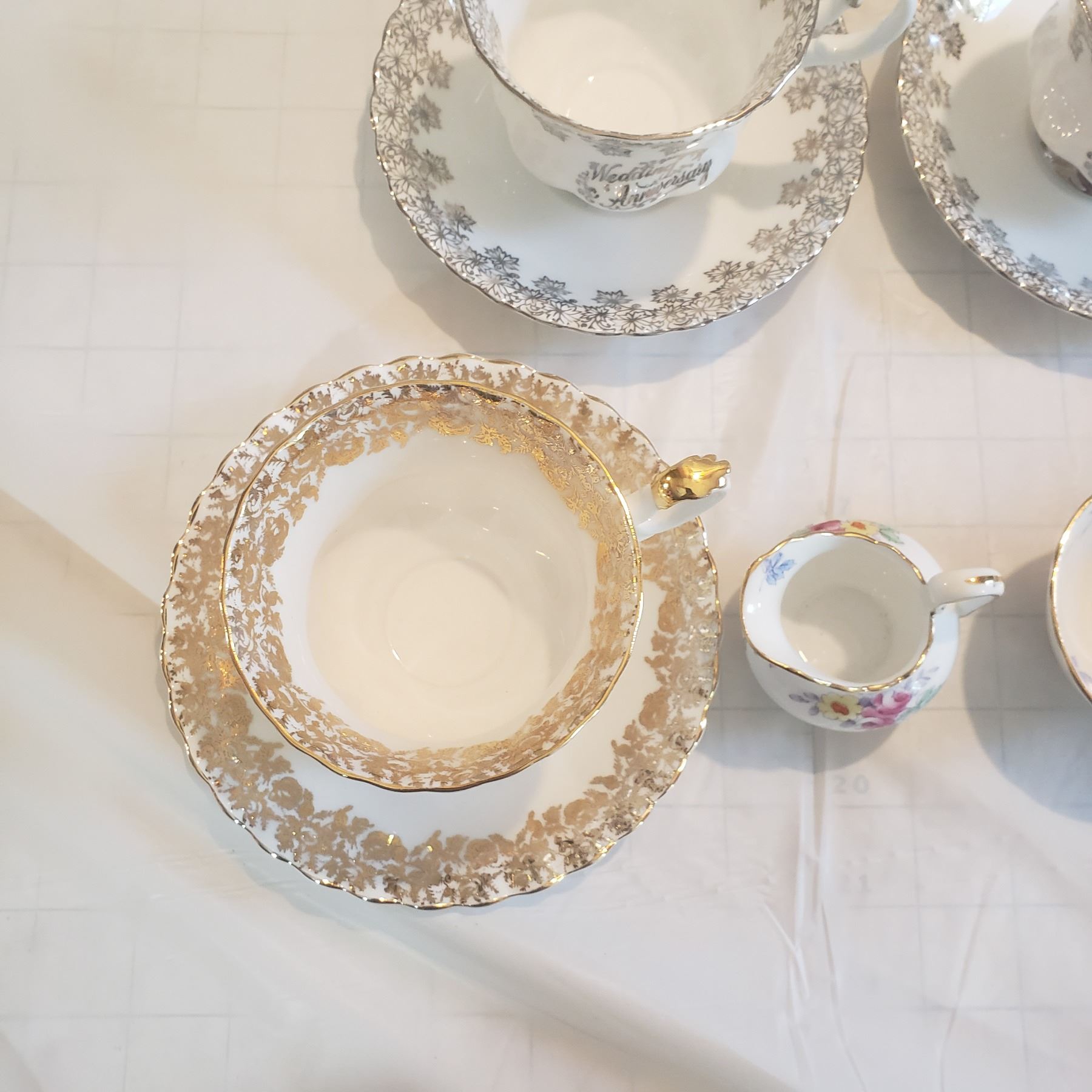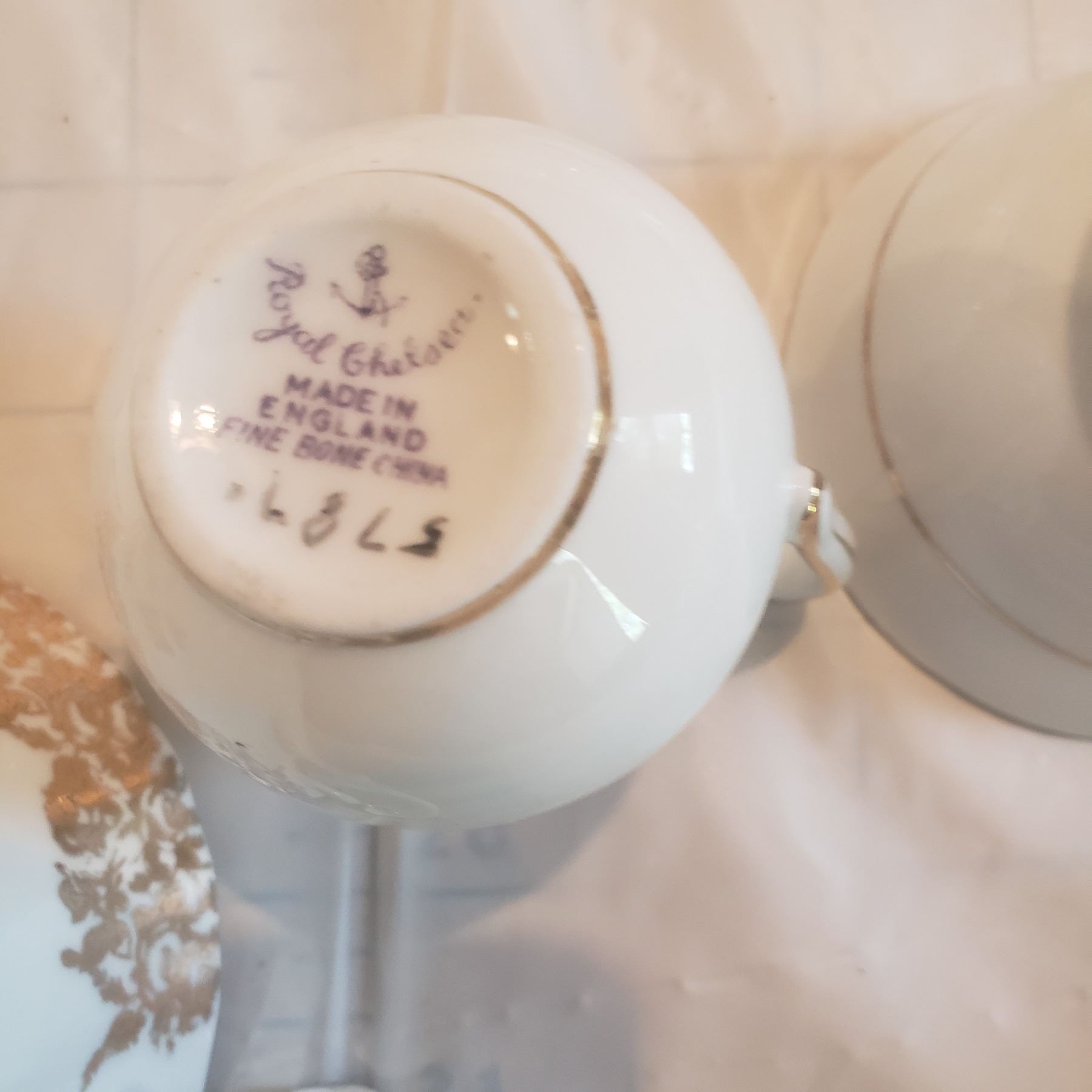 higher value porcelain lot gold silver leaf, 25th Anniversary set, Royal Chelsea, Petit Point