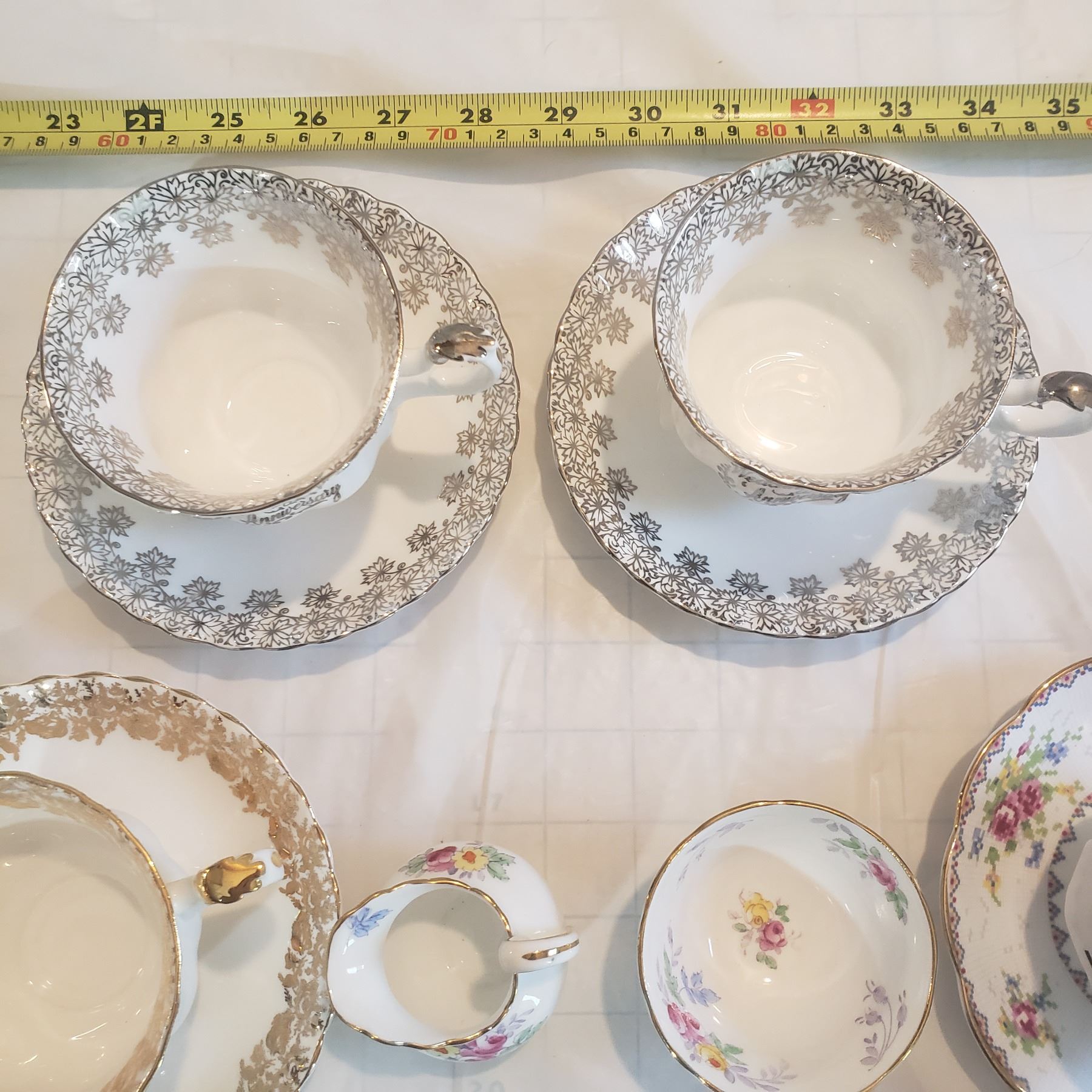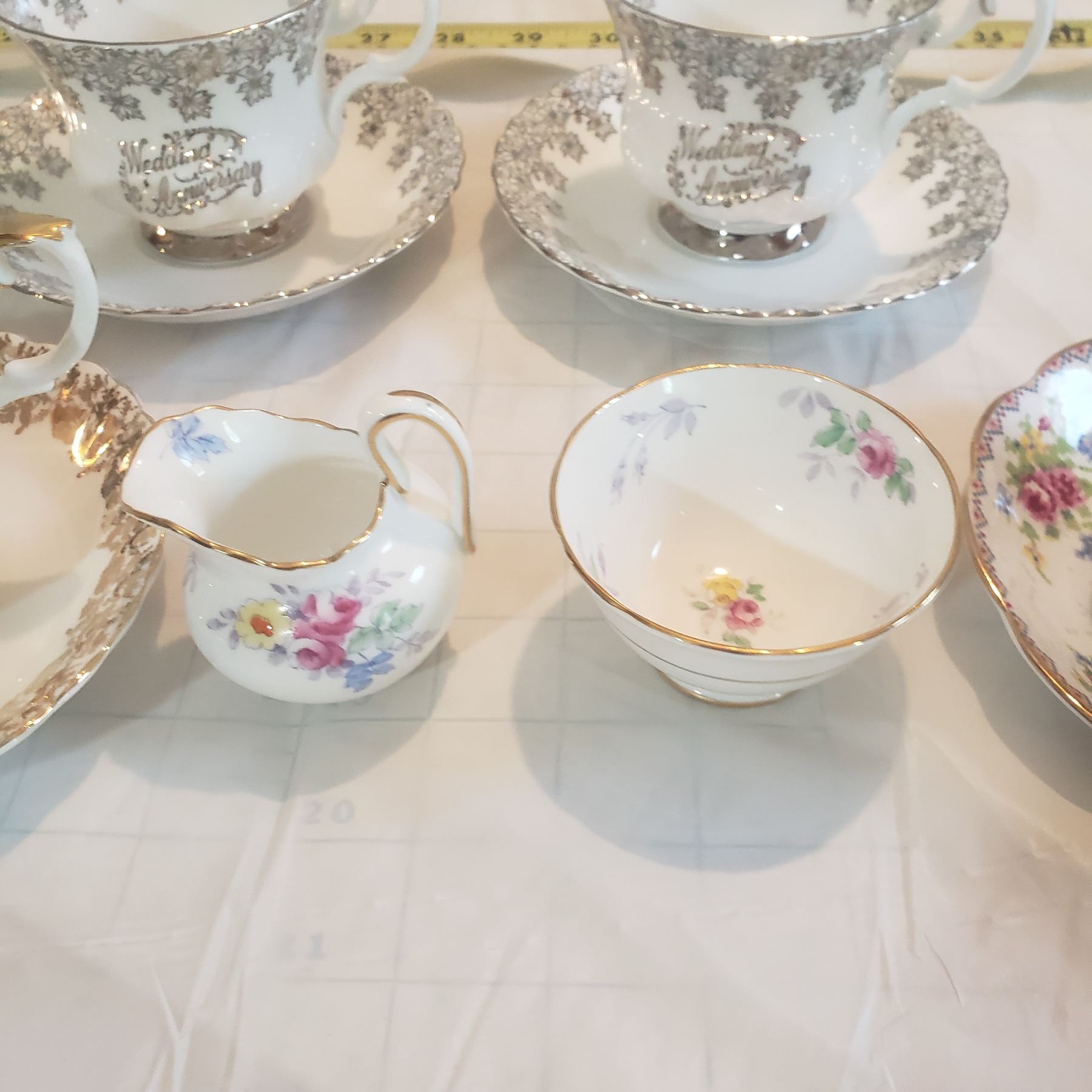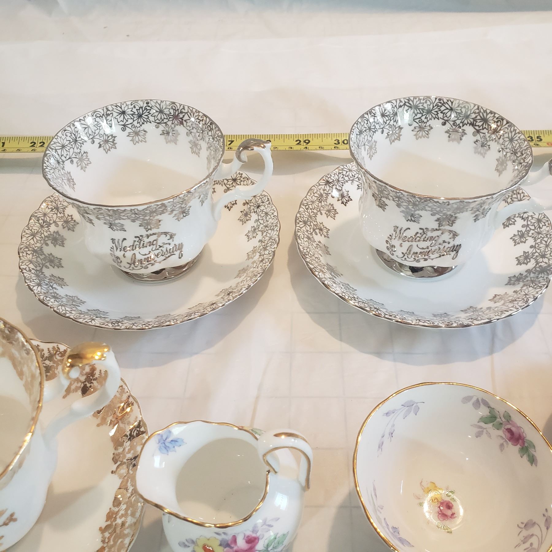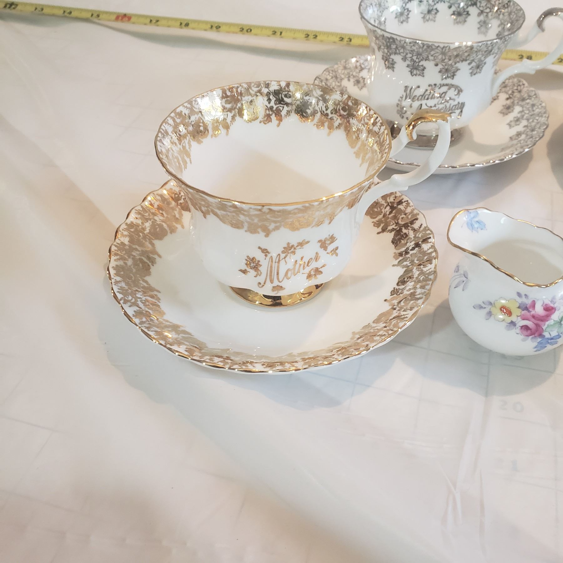 higher value porcelain lot gold silver leaf, 25th Anniversary set, Royal Chelsea, Petit Point