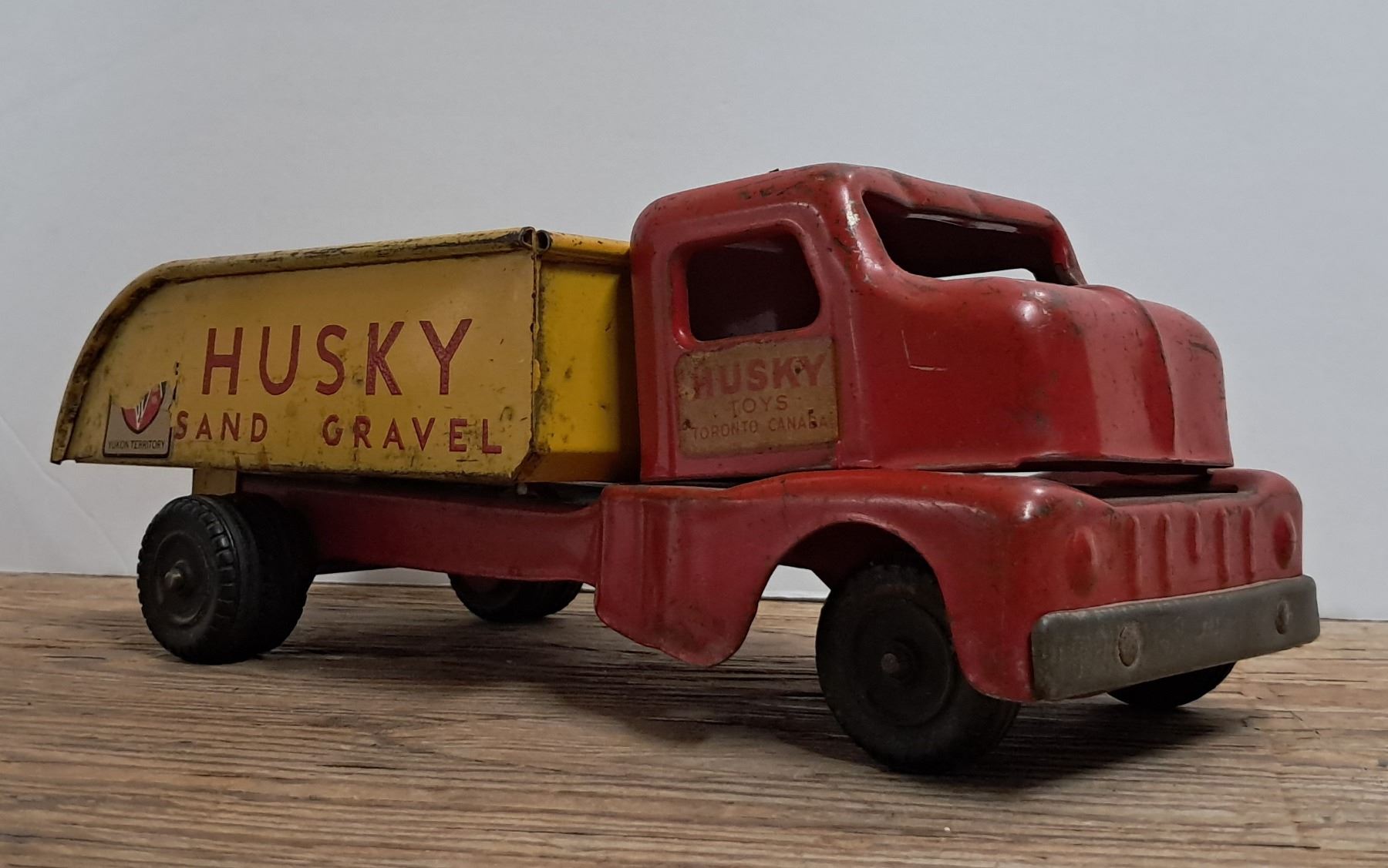husky sand + gravel pressed steel truck 11" long
