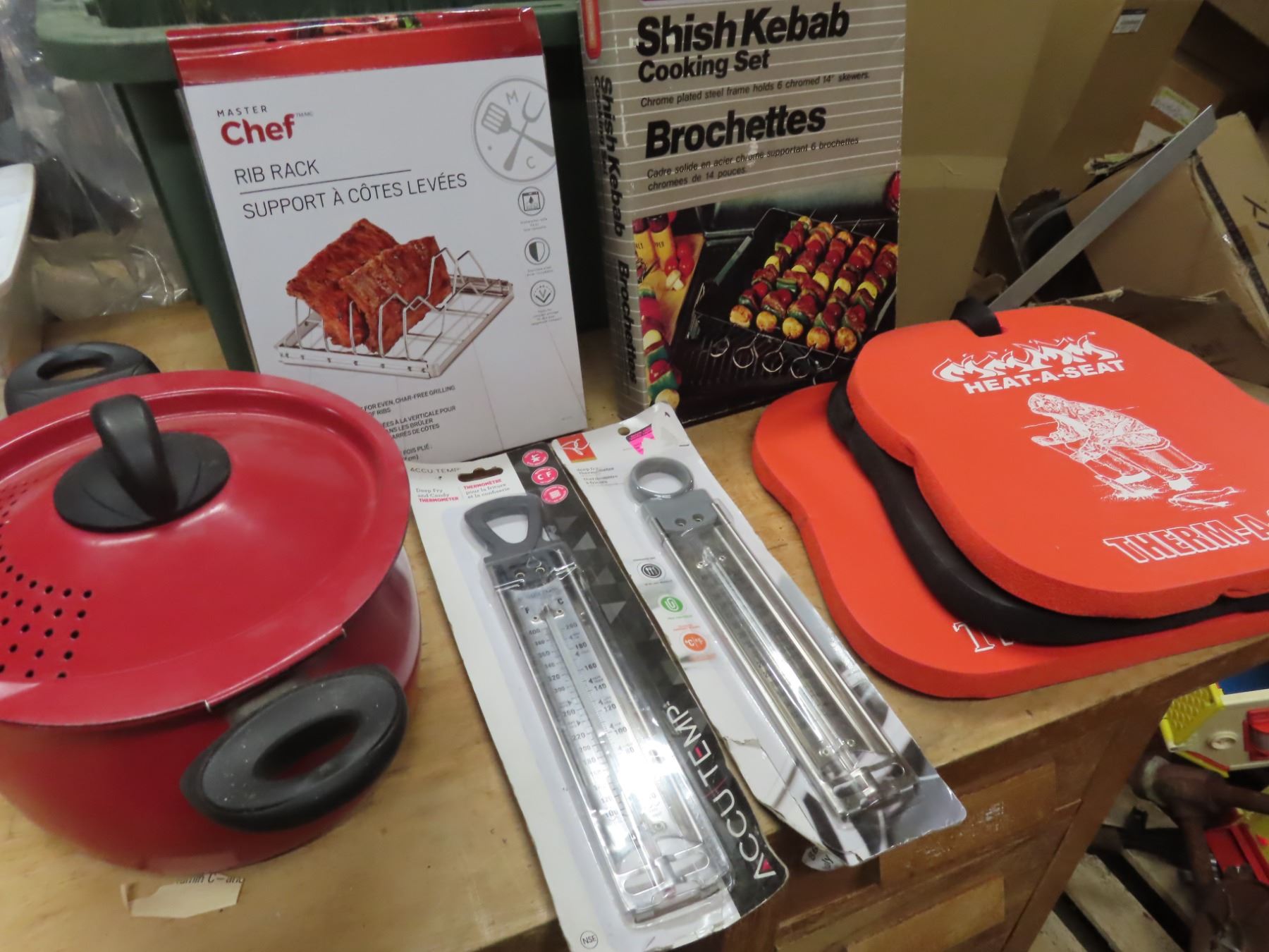 ice fishing seats , kebab set , rib cooking set , pot that locks