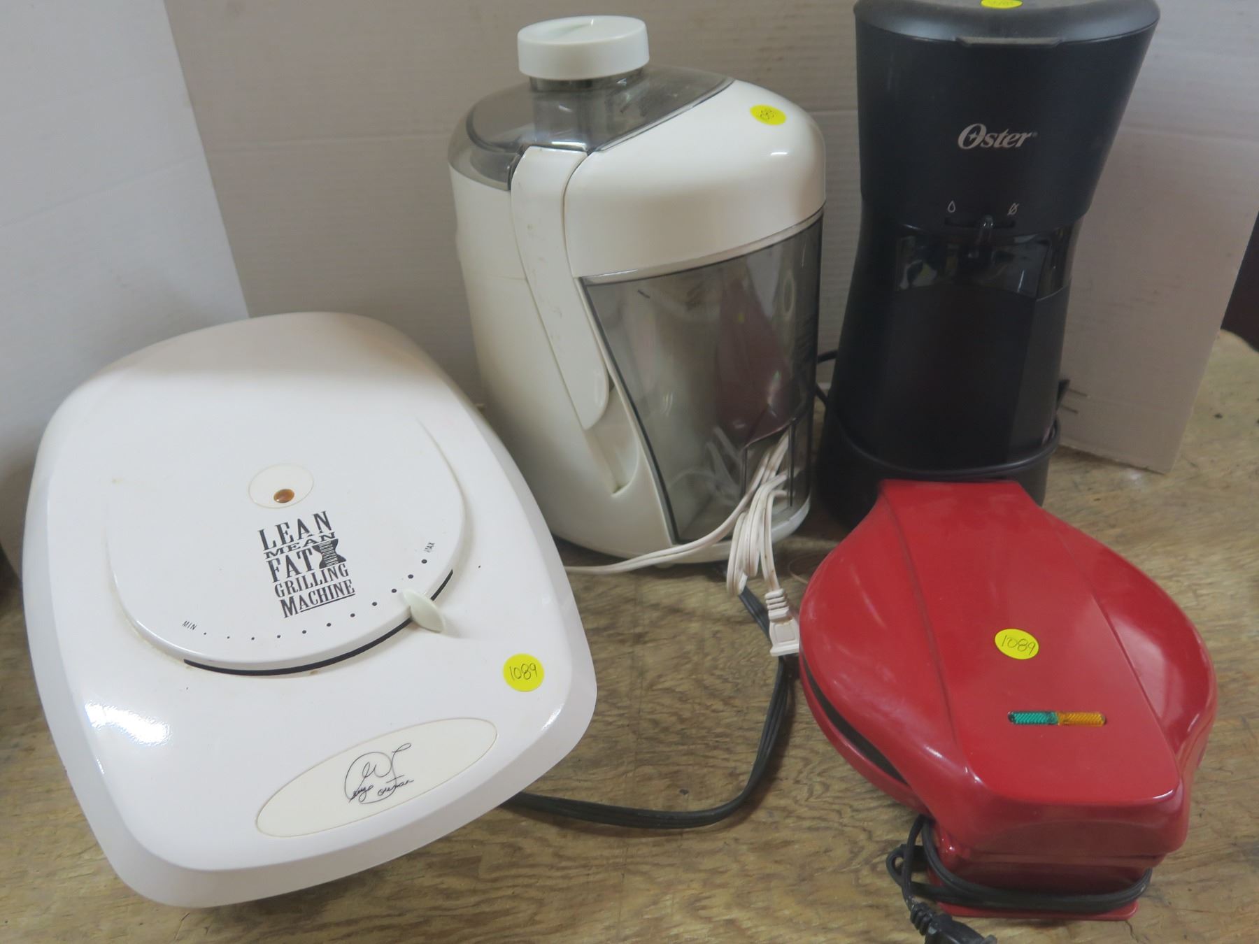 juicer, ice coffee maker, mini cupcake maker, george foreman grill