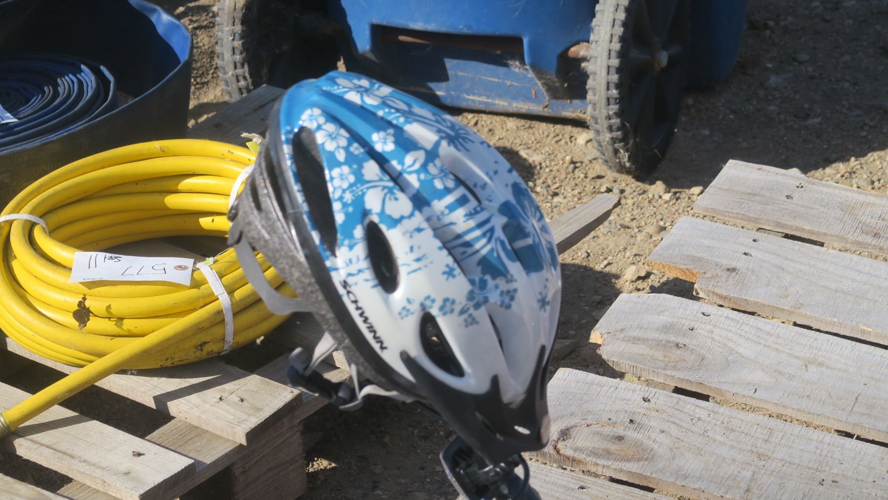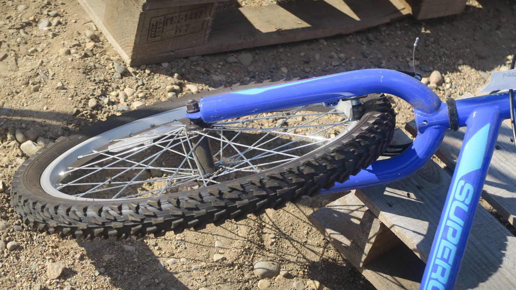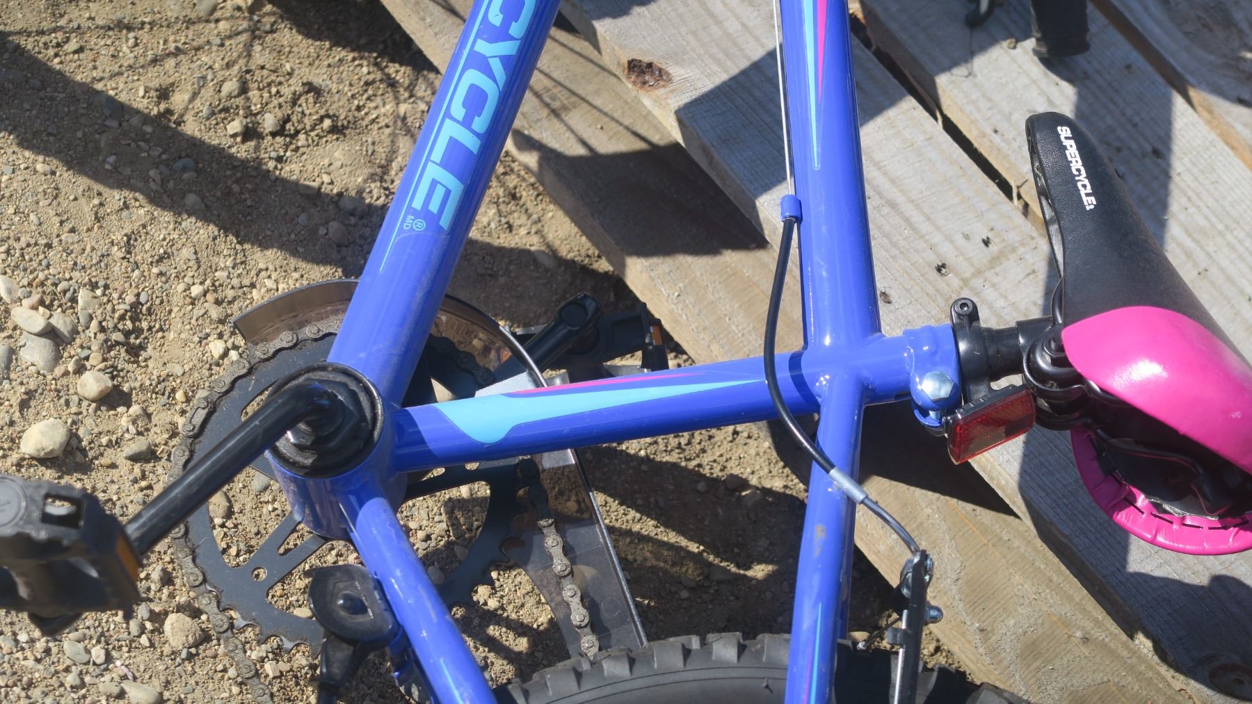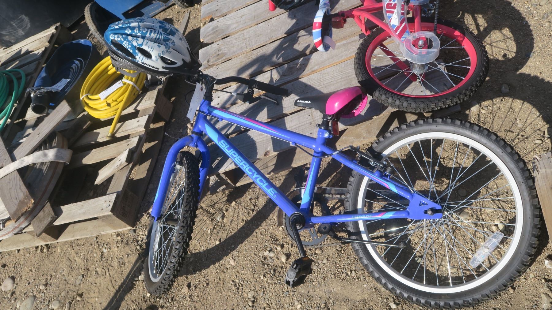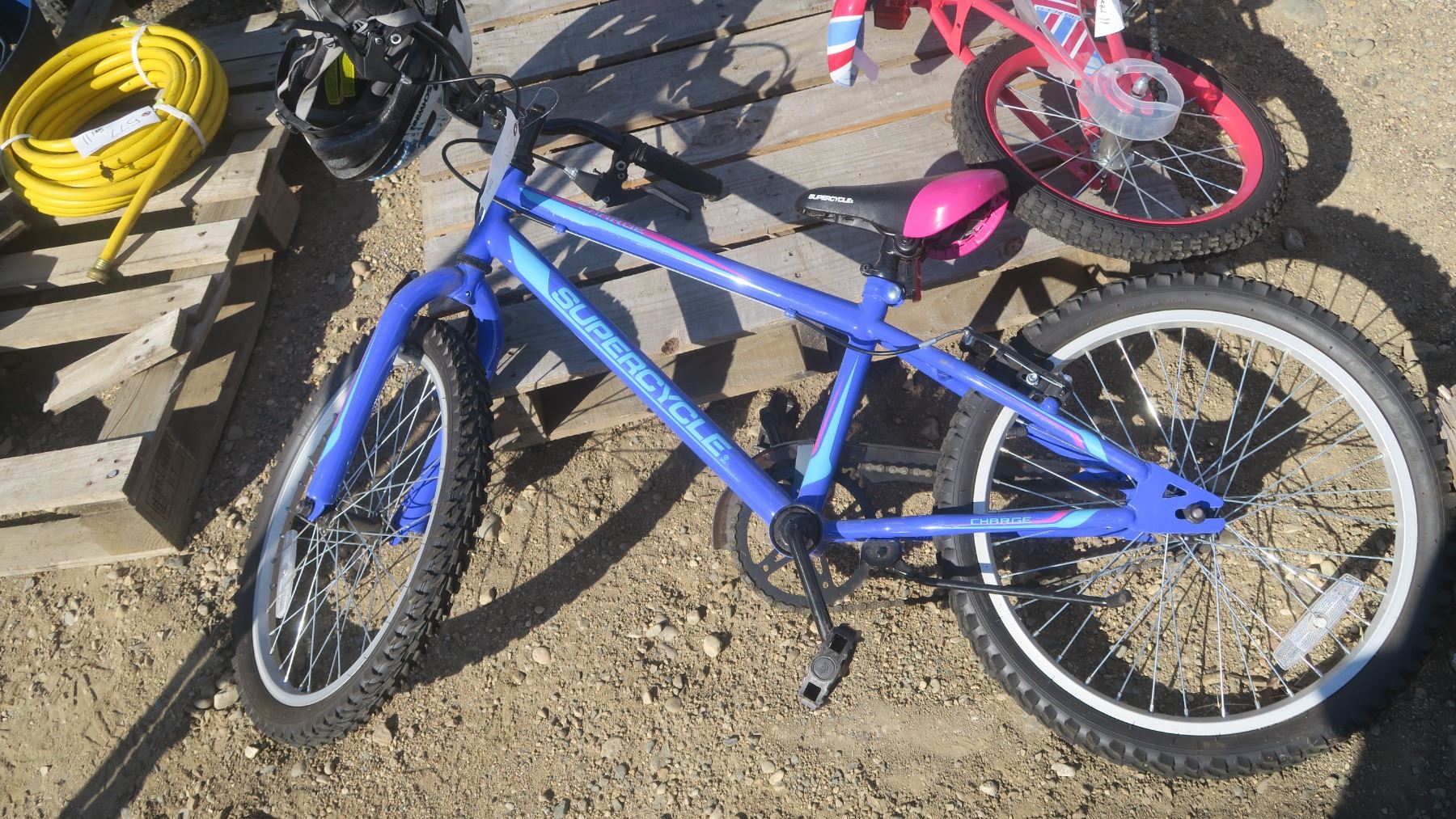 kids blue Supercycle bike with helmet