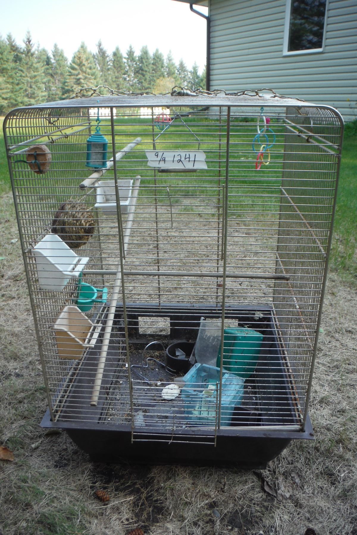 large birdcage c/w accessories 28 X 19 X 18"