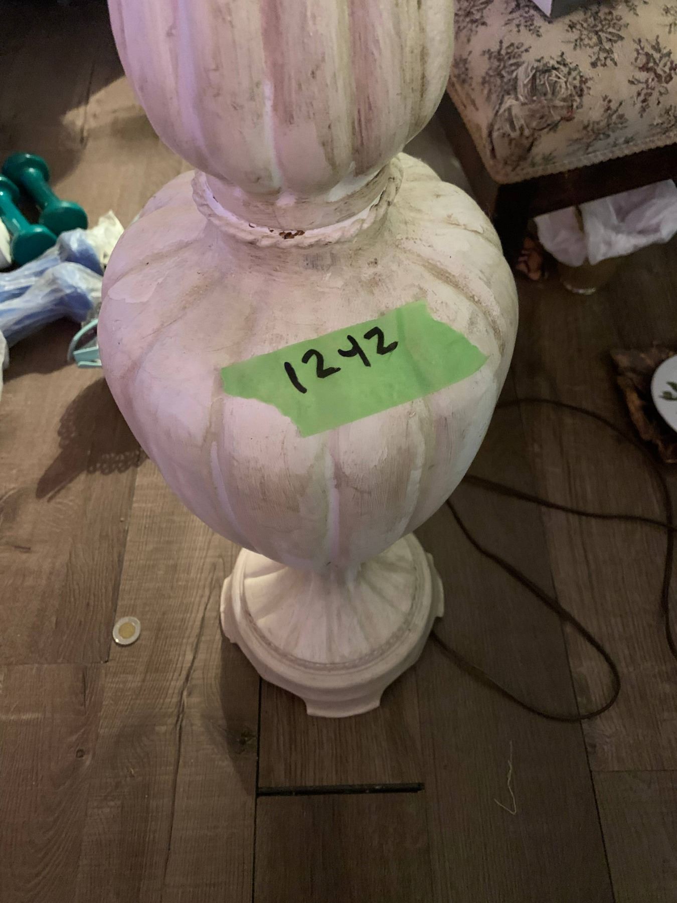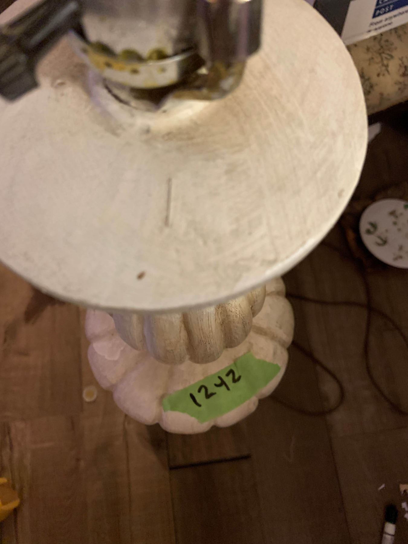 large ceramic lamp 2 feet tall soft white with brown wax- excellent lamp in excellent condition