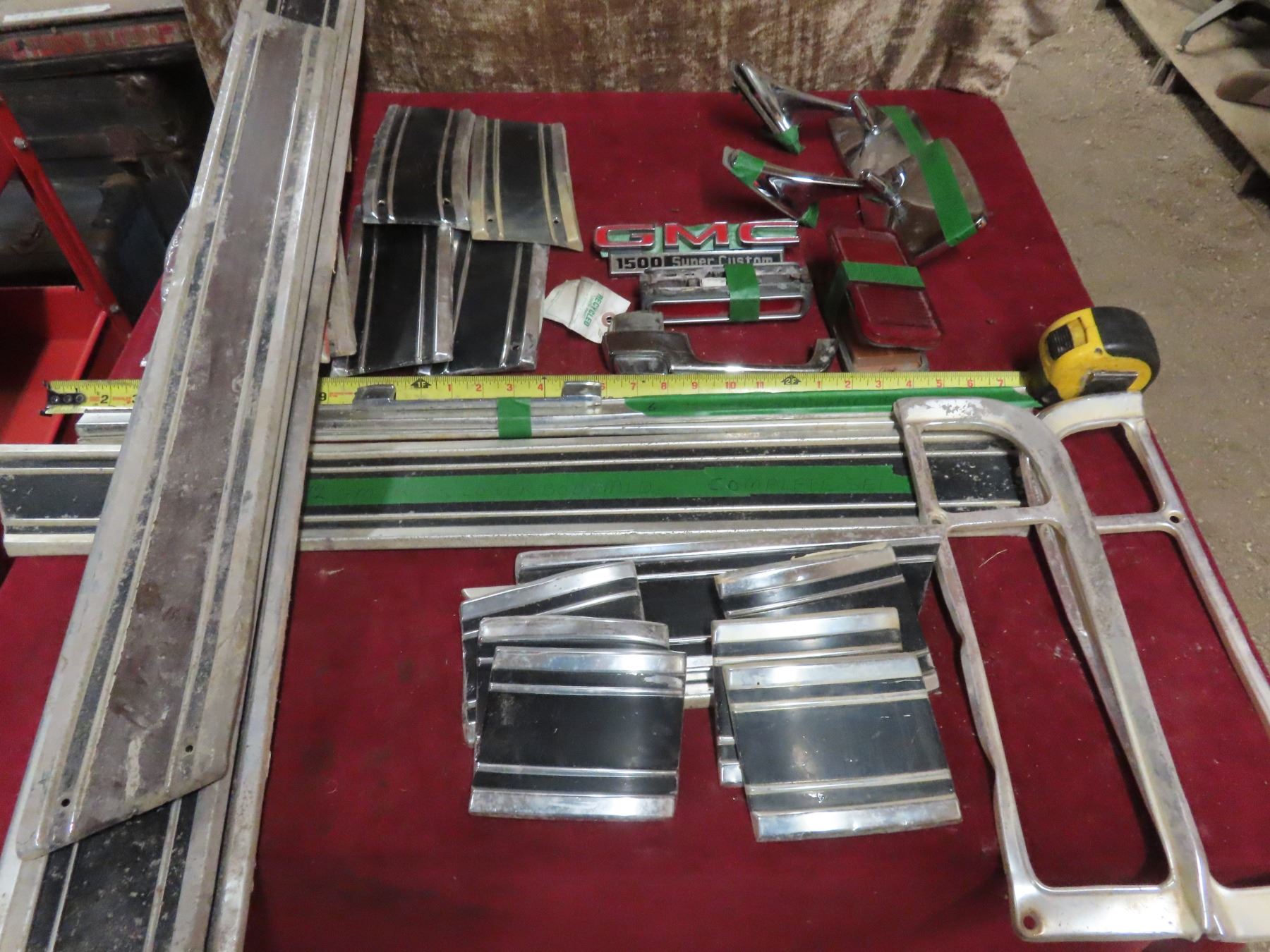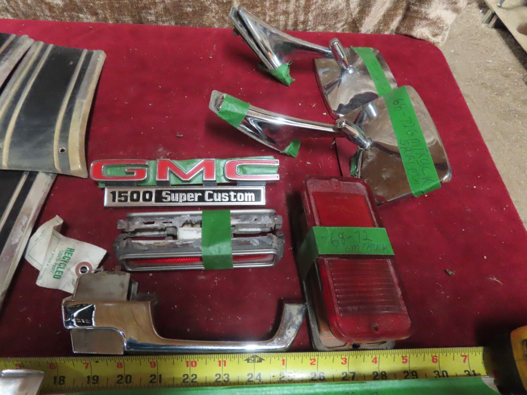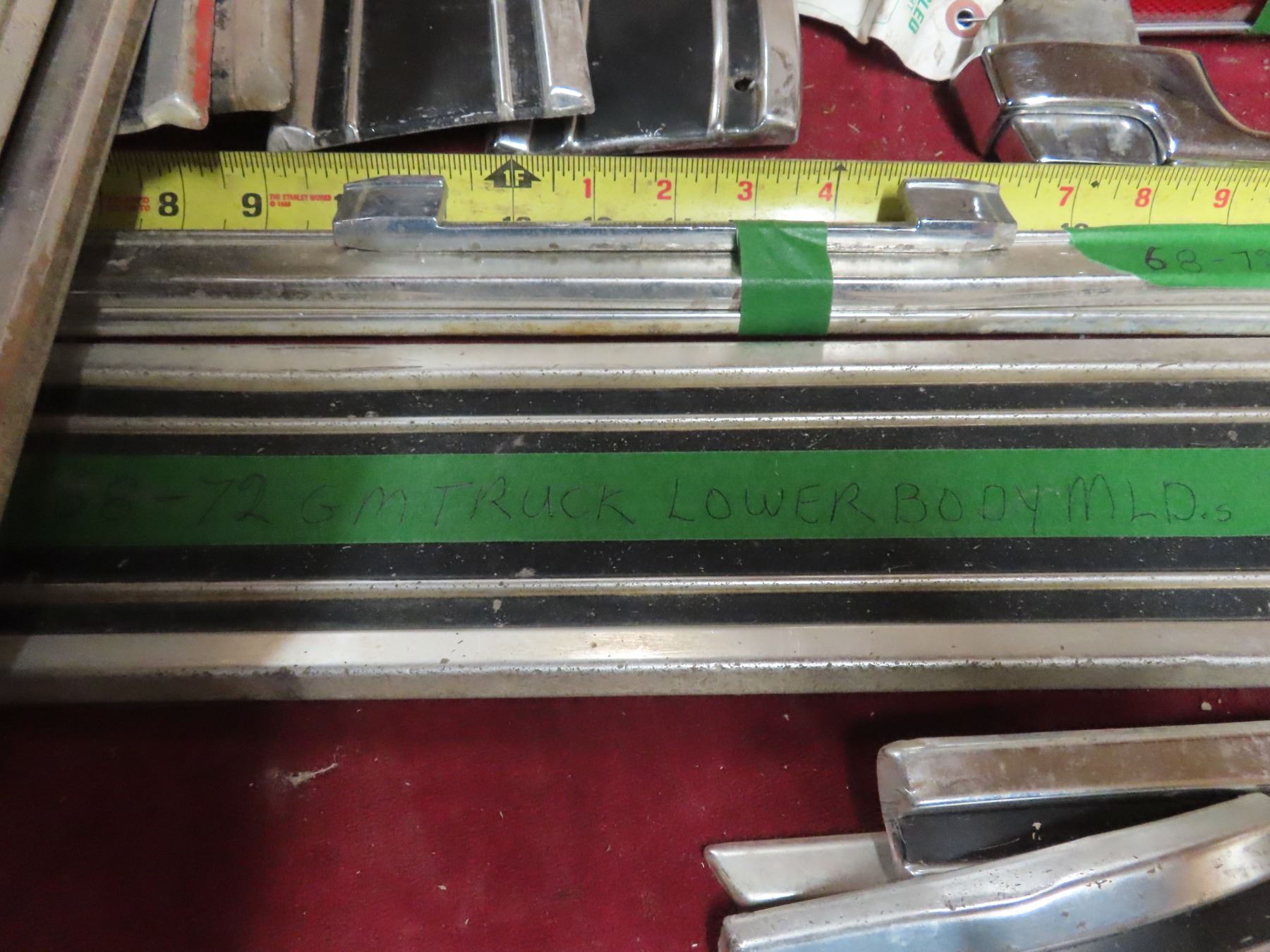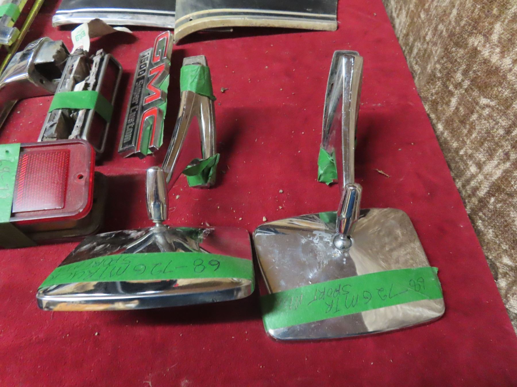 large lot of 1968-1972 GM body parts , mirrors , handle , badges and complete set of body molding
