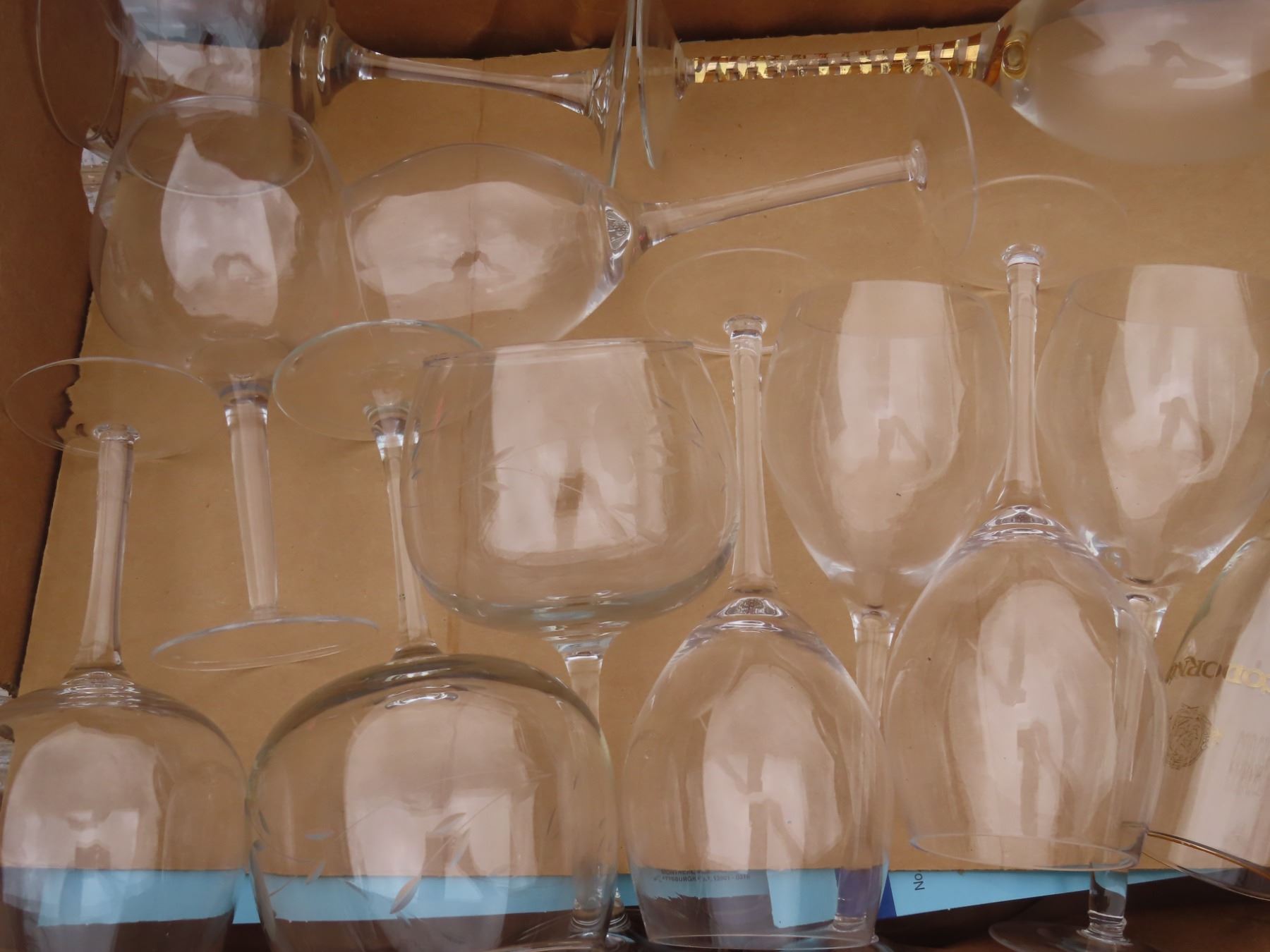 large lot of wine glasses
