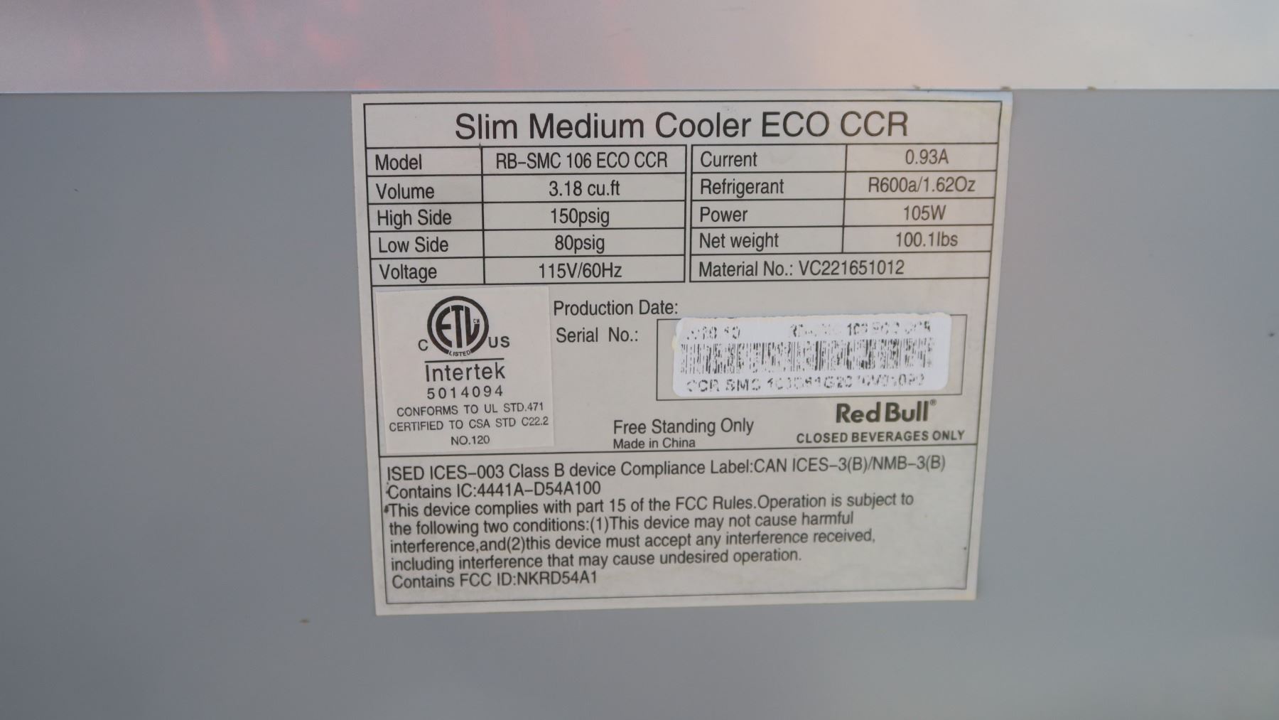 large slim REDBULL cooler display