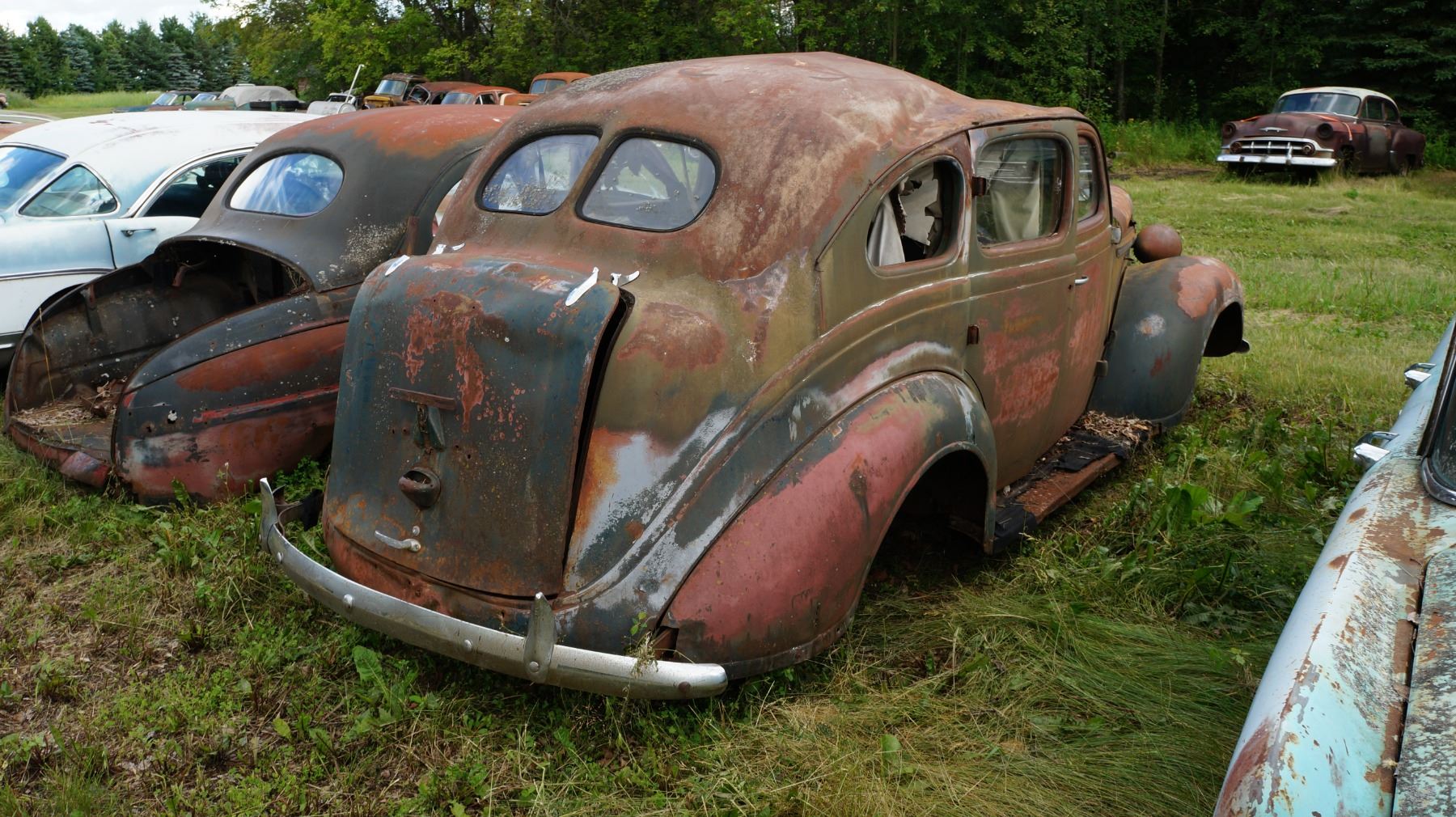 late 1930's dodge 4dr sedan - roof damage *Item located off-site* Forklift available for fee