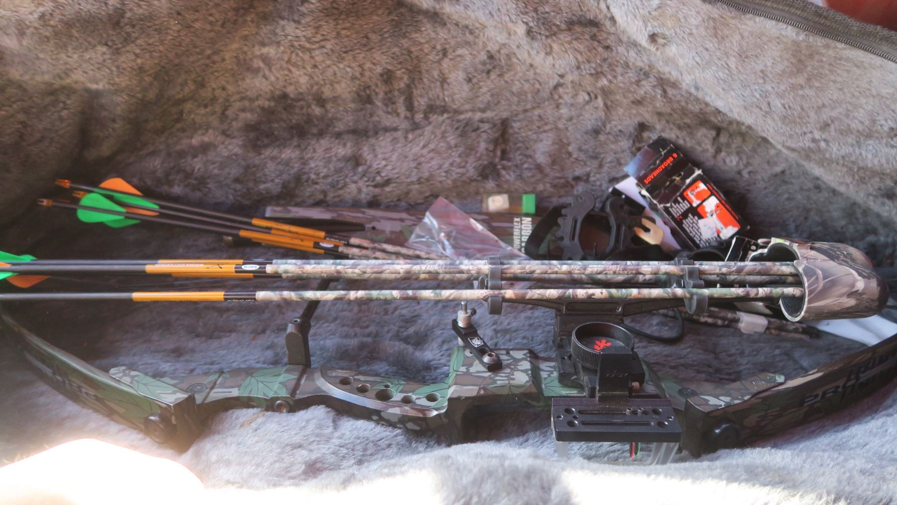 left handed archery bow and accessorys, 28" draw, 45-60 lbs draw weight from pro sport